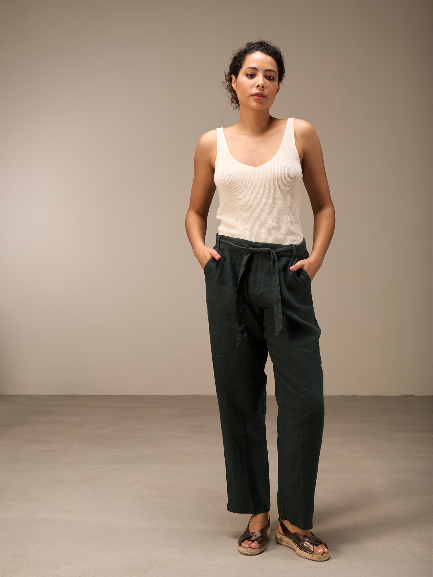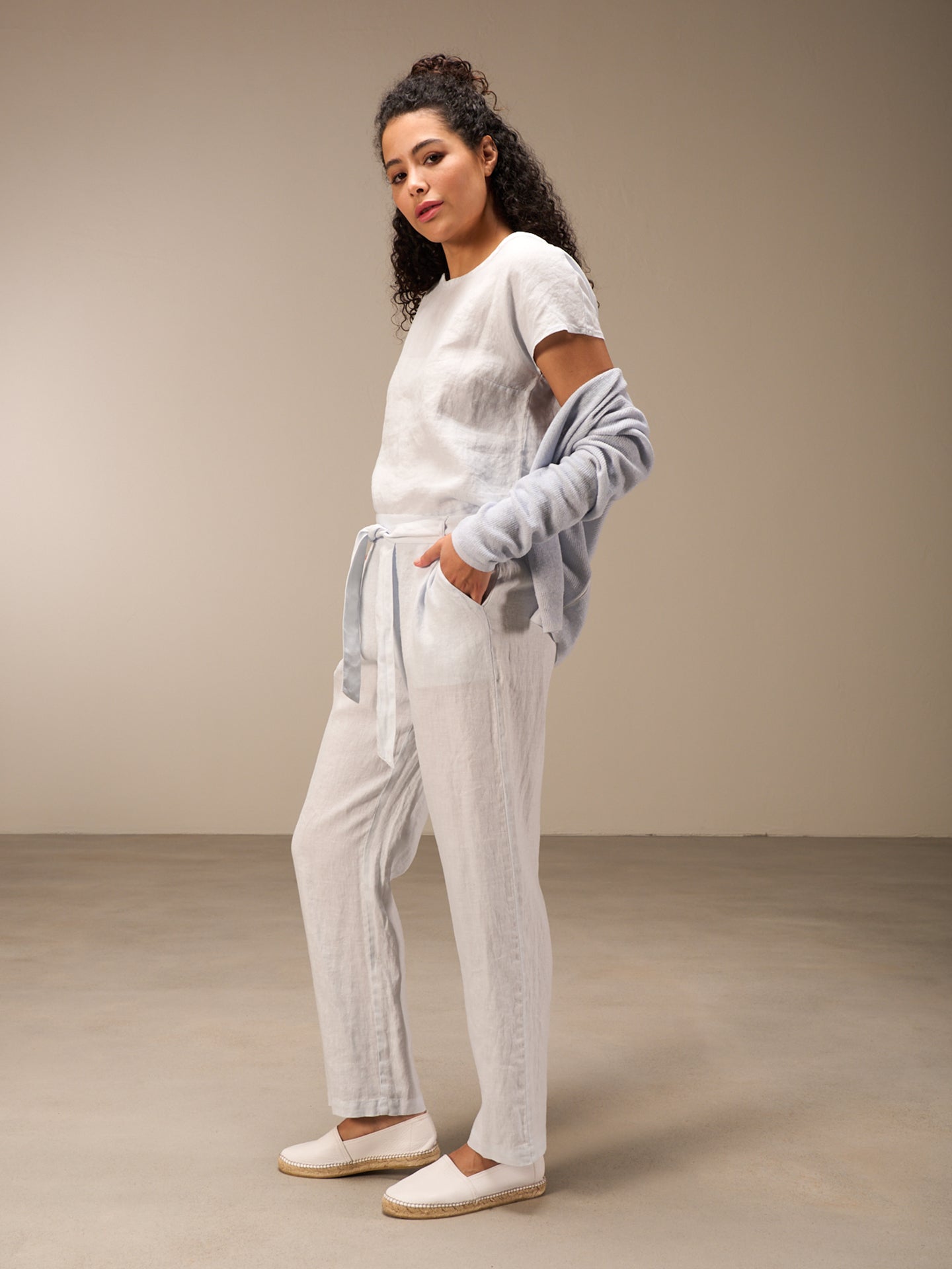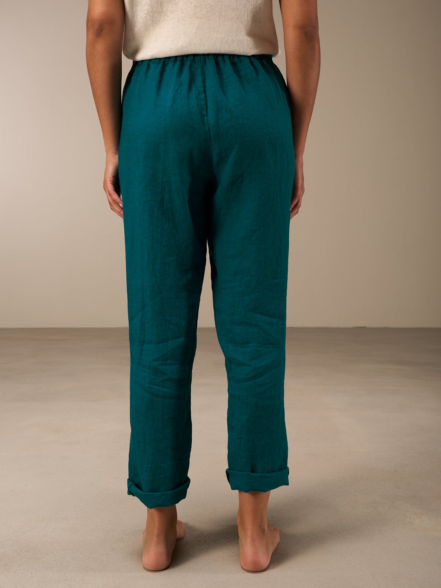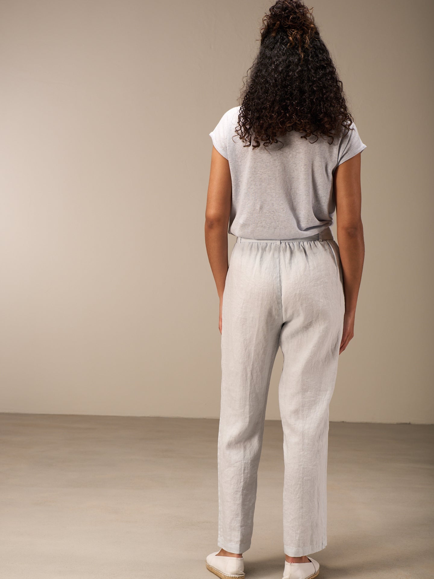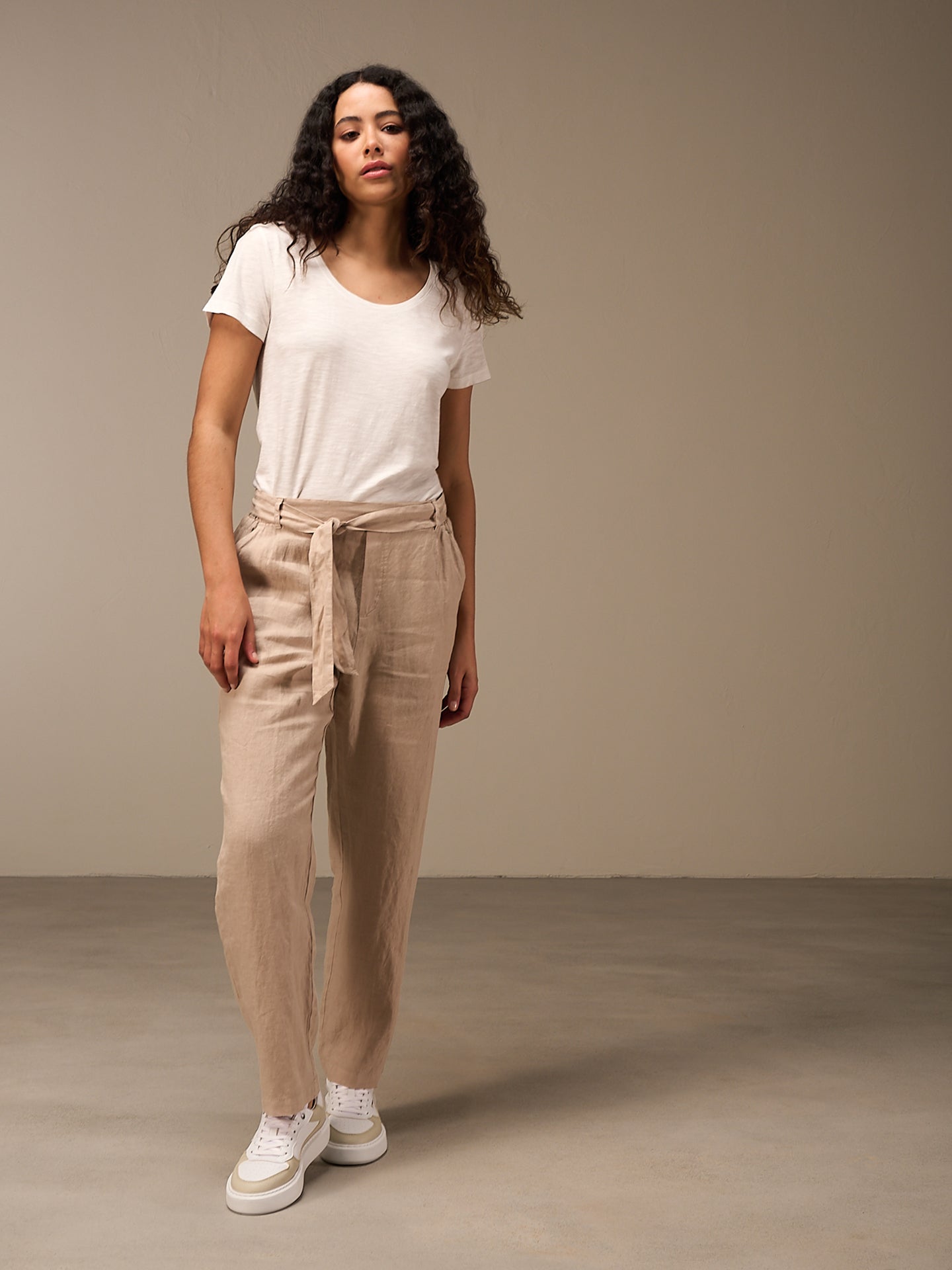 Lässige Hose mit Elastikbund hinten für eine bequeme Passform. Der Stoffgürtel rundet den Look ab. Die 100% Leinen Qualität sorgt auch bei sommerlichen Temperaturen für einen idealen Tragekomfort.
