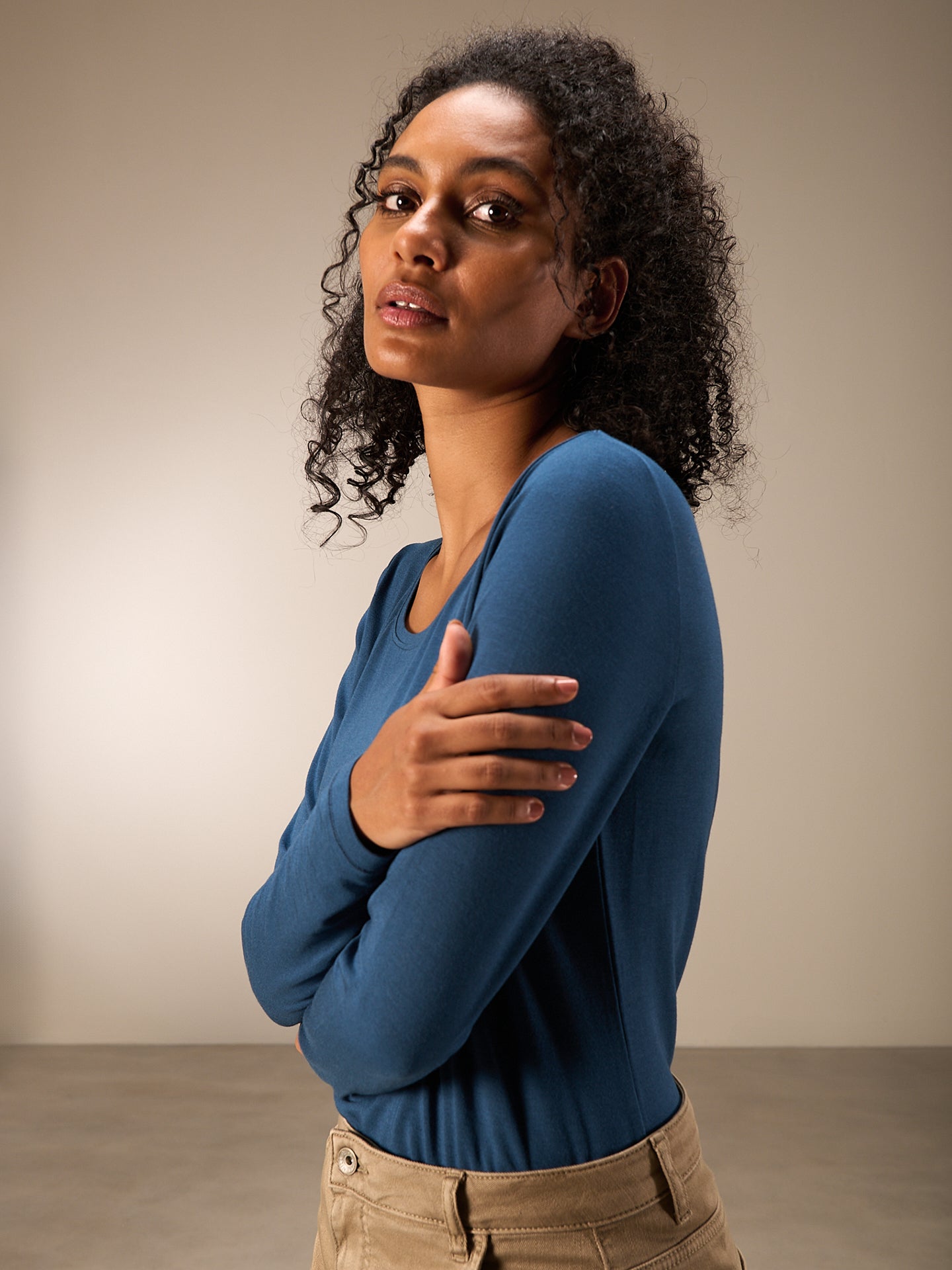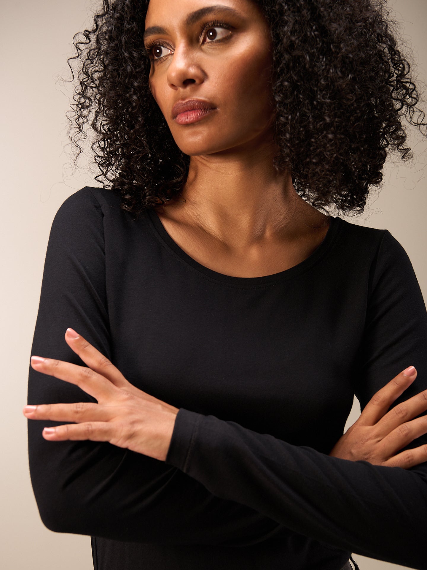 Locker geschnittenes Langarmshirt mit Rundhalsausschnitt und dekorativen Seitenschlitzen. 69% Modal ( TENCELTM-zertifiziert ), 26% Lyocell und 5% Elasthan.