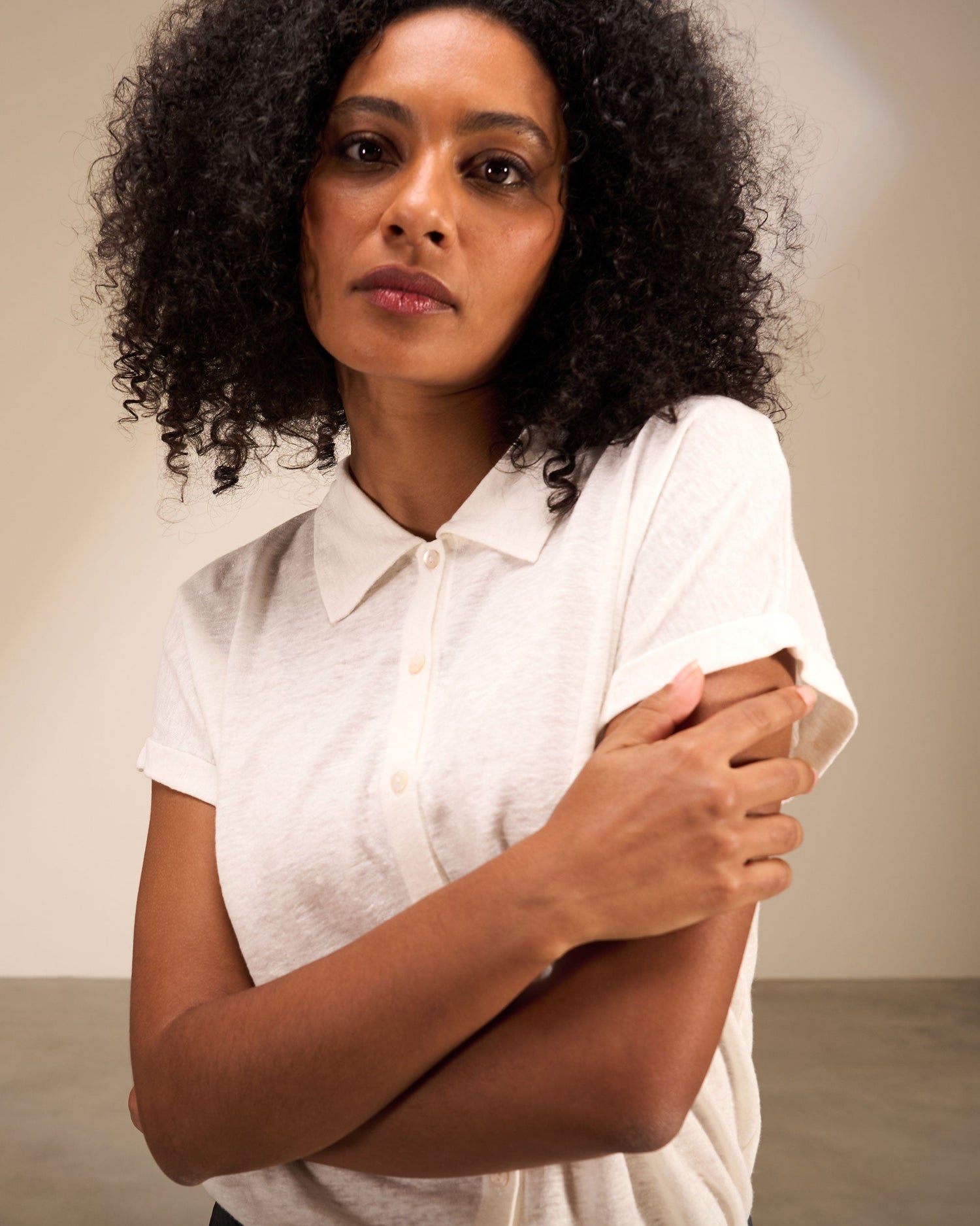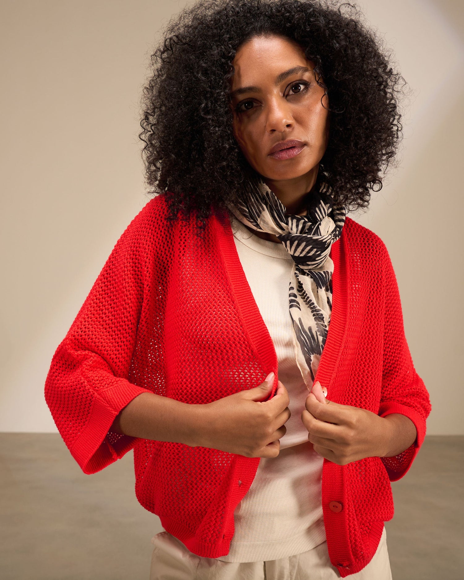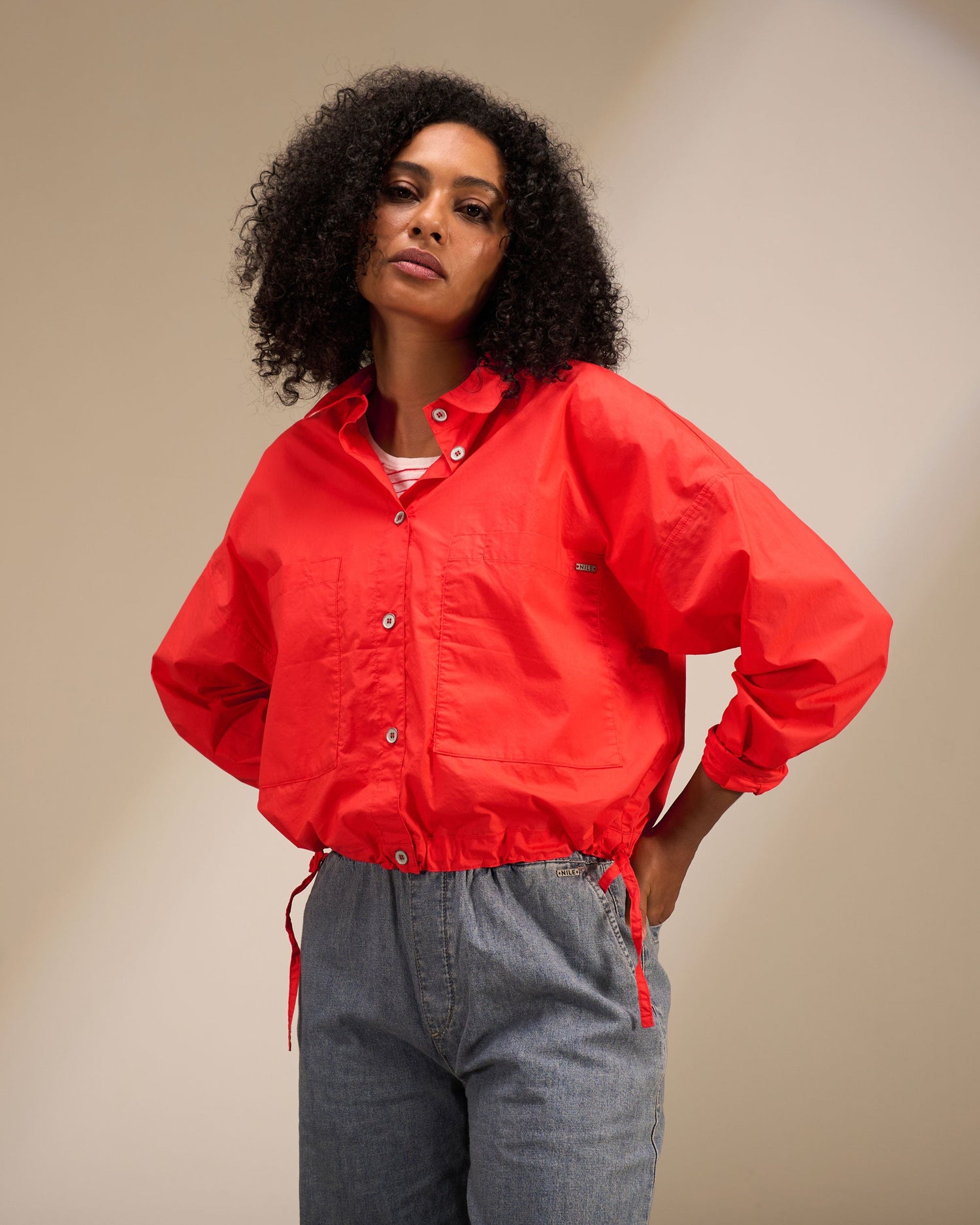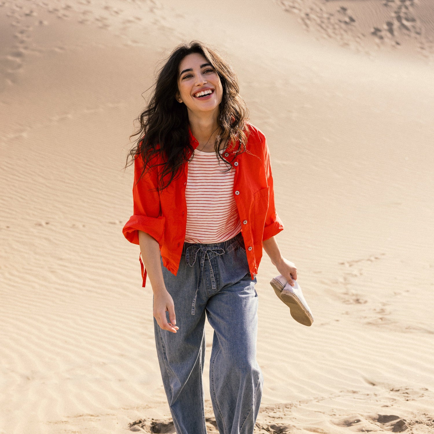 Fresh, vibrant, and full of energy: the Look of the Week combines a bright blouse with a striped shirt and relaxed denim for an easy, sunny style.