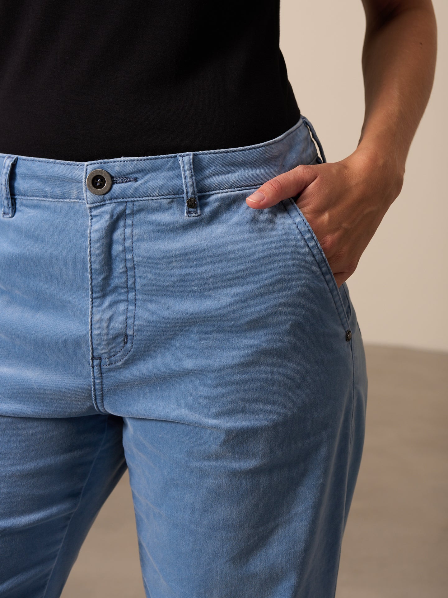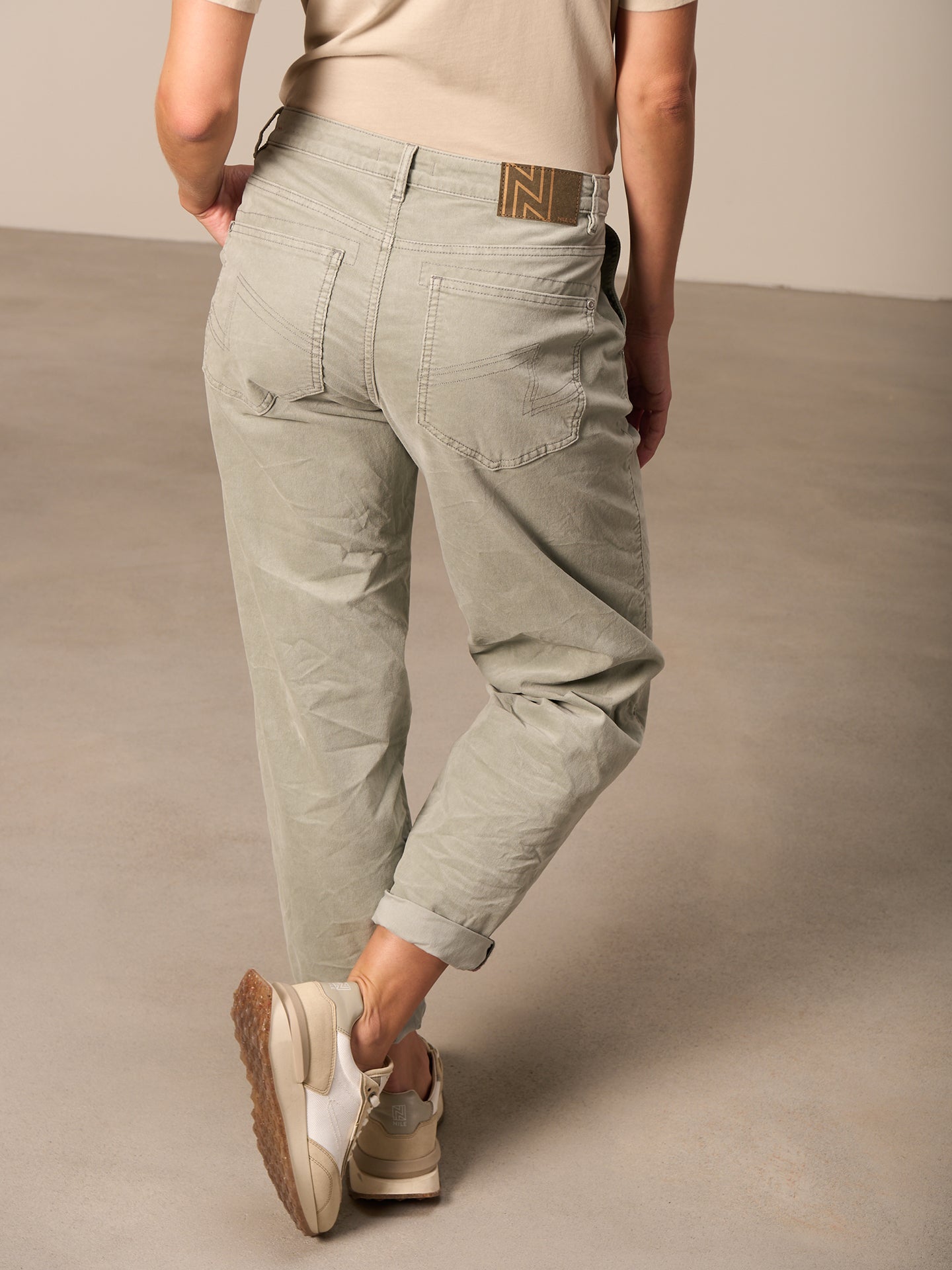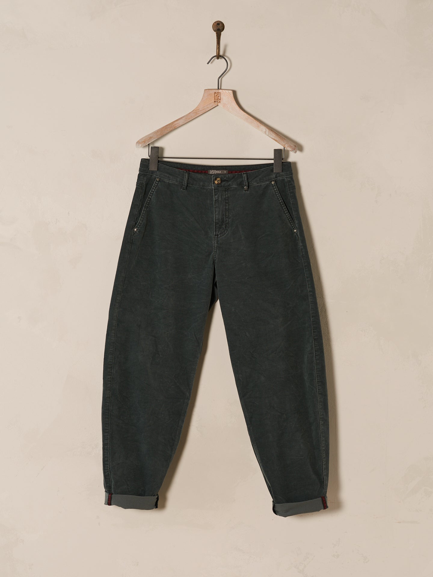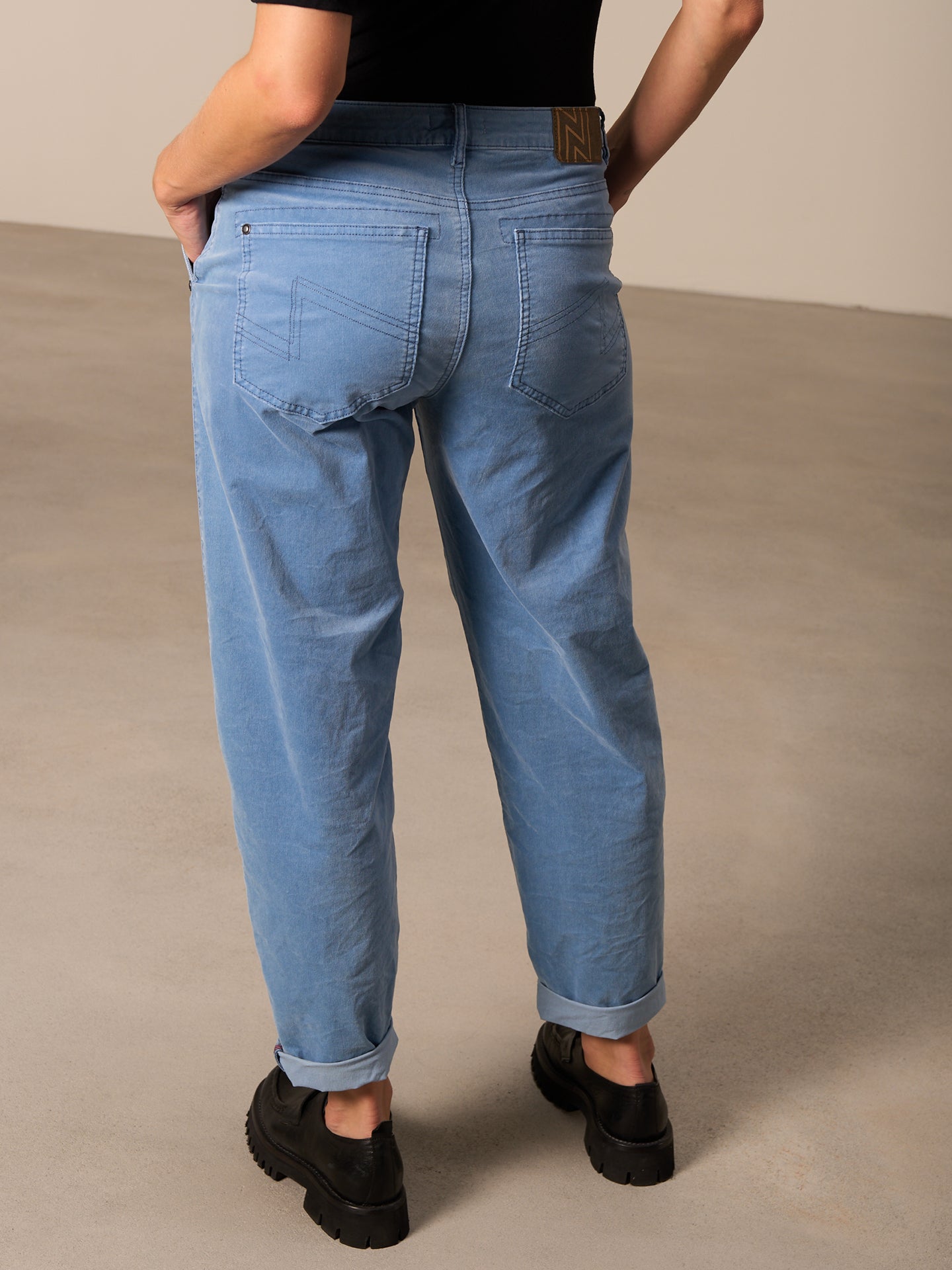 Loose-fitting trousers in fine-ribbed cord with trouser legs in a trendy O-shape. Material blend with certified organic cotton and recycled polyester in a very comfortable stretchy babycord fabric.