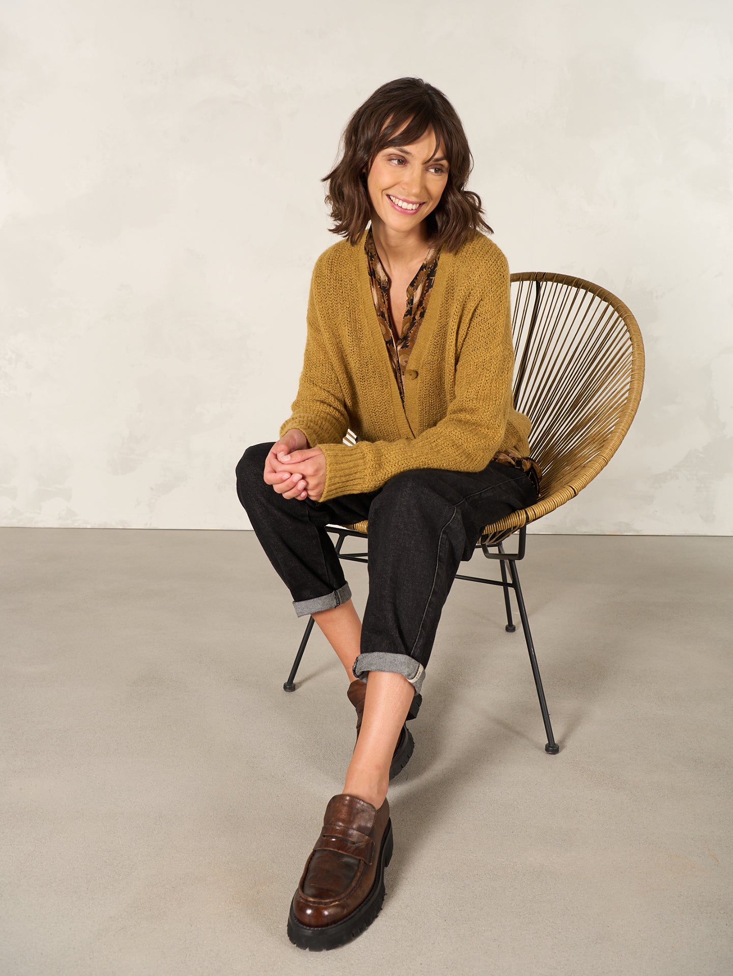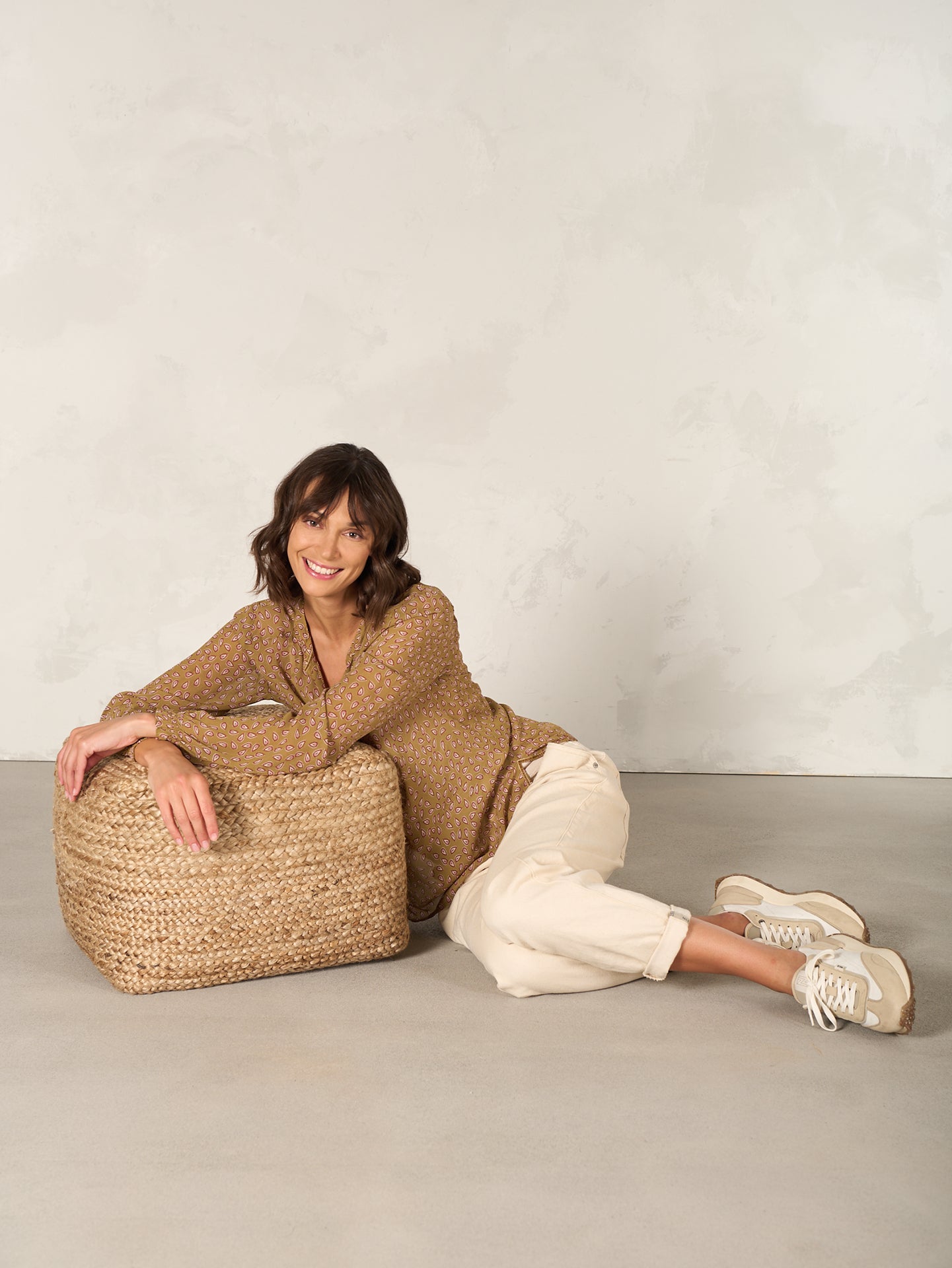 Straight-cut blouse with long sleeves that offers many style options thanks to the light elasticated waistband. The V-neckline and an attractive narrow Stand-up collar button placket complete the look of the blouse.