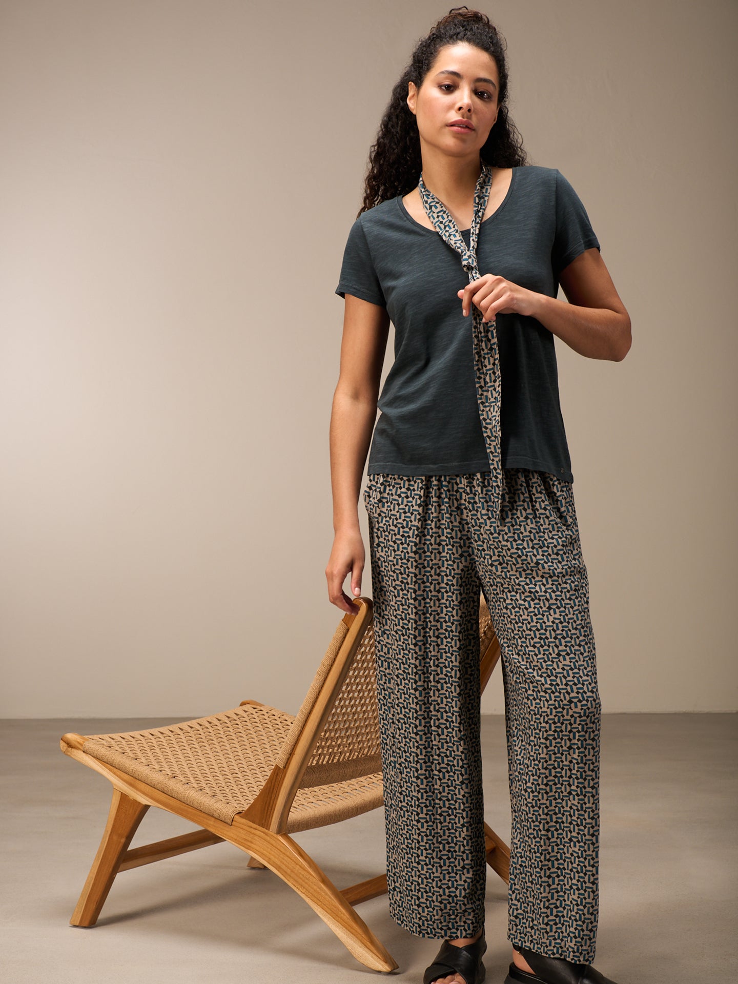 Light and airy trousers with a wide, straight leg and elasticated waistband, with fabric belt.
