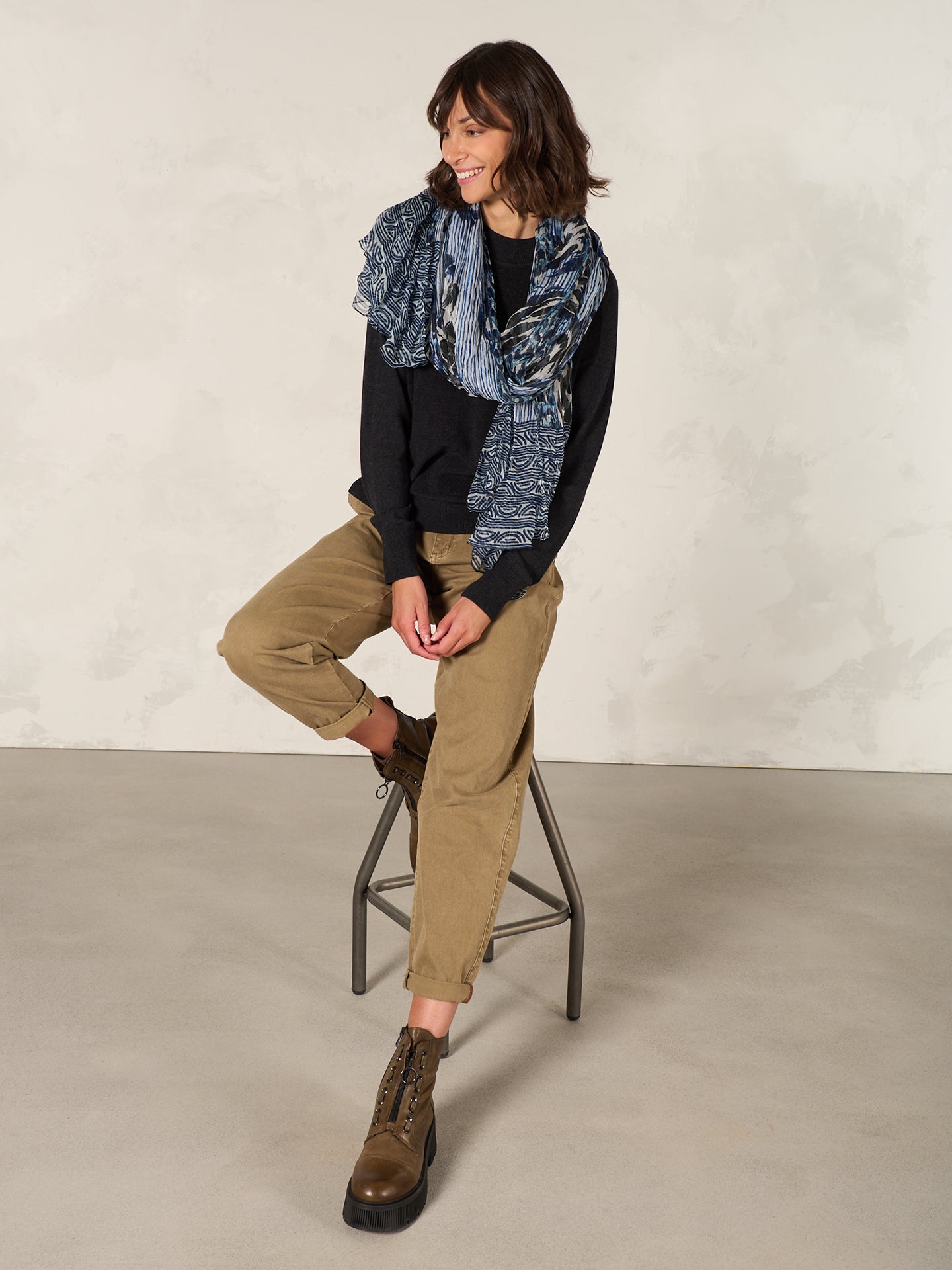 Slightly transparent pareo with all-over print in the size 130x200cm. 100% silk.