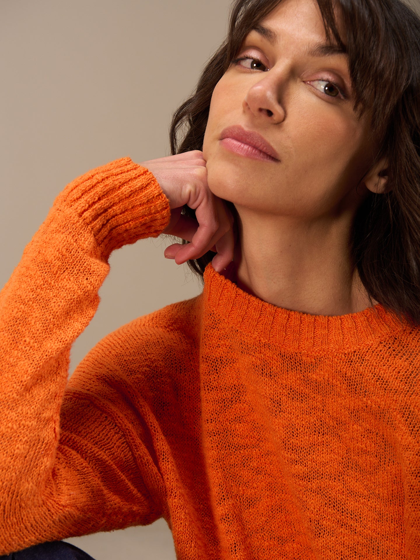 Long-sleeved pullover with a loose fit and dropped shoulder. Round neckline with ribbed edging, which can also be found on the sleeves and hem. The textured yarn creates an exciting look. The 92% GOTS-certified organic cotton ensures a high level of comfort.
