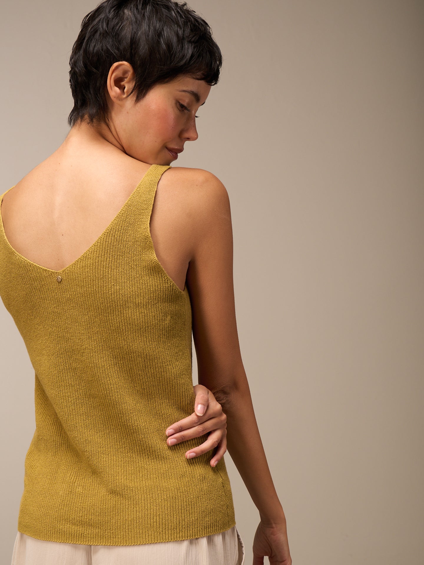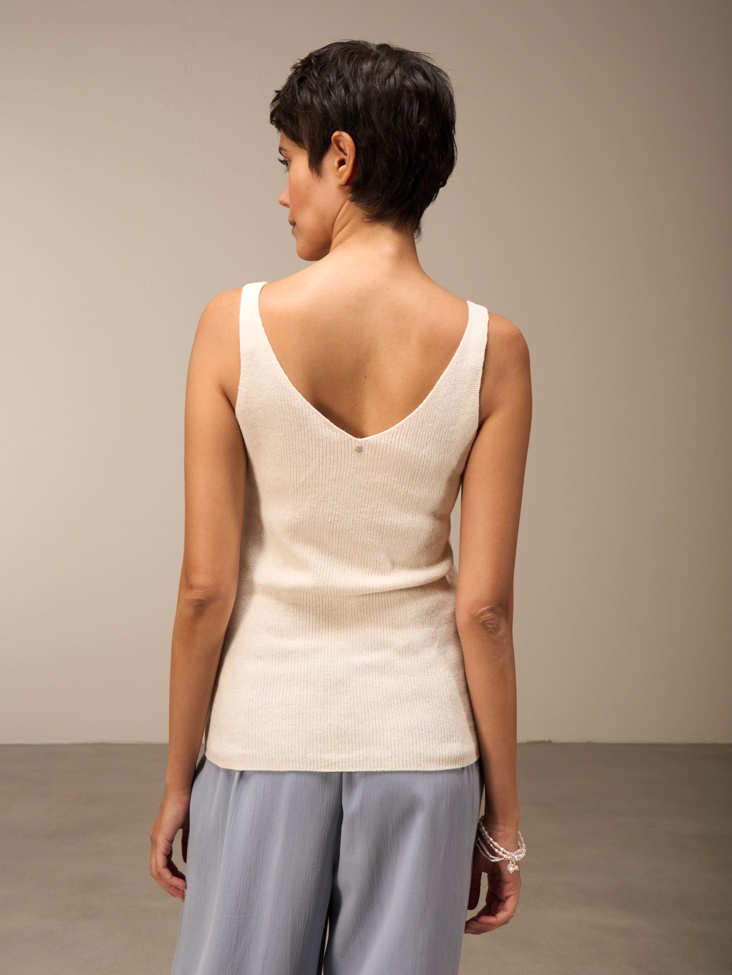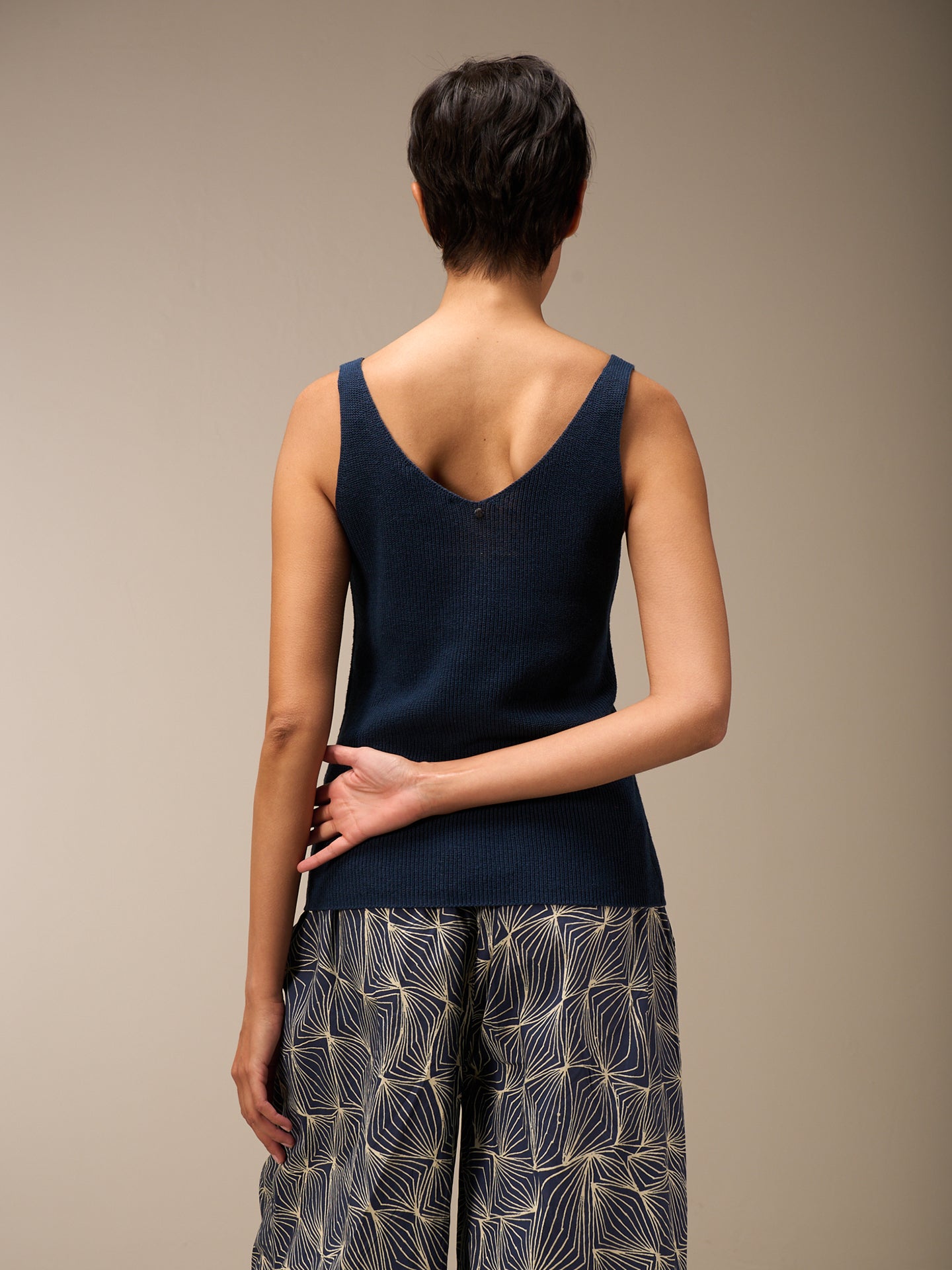 Body-hugging top in a patent pattern with a V-neckline at the front and back and narrow straps. The 55% linen and 45% cotton fabric ensures a high level of comfort.