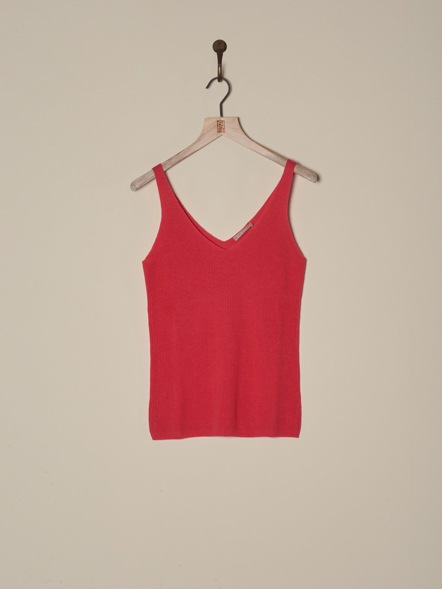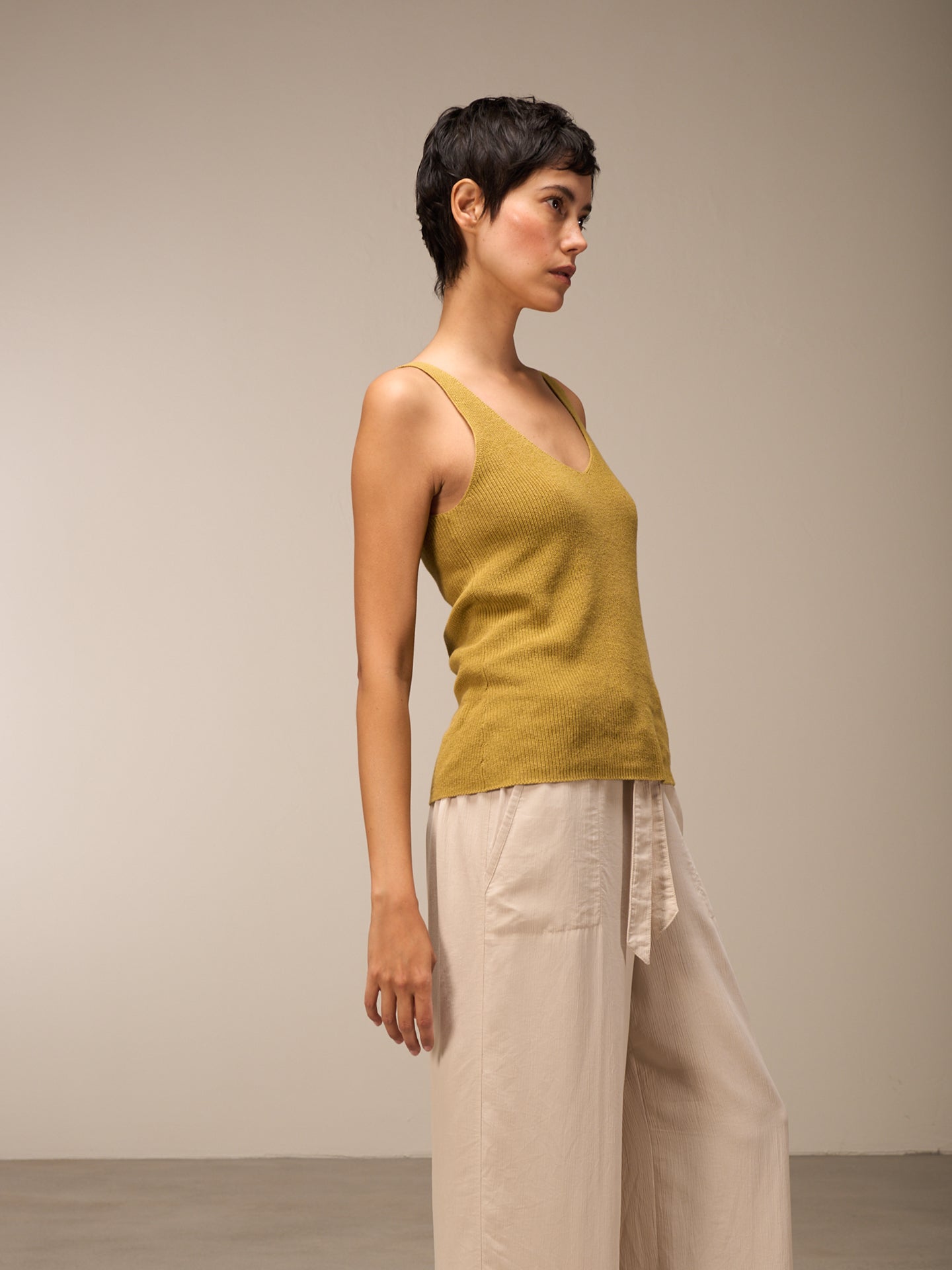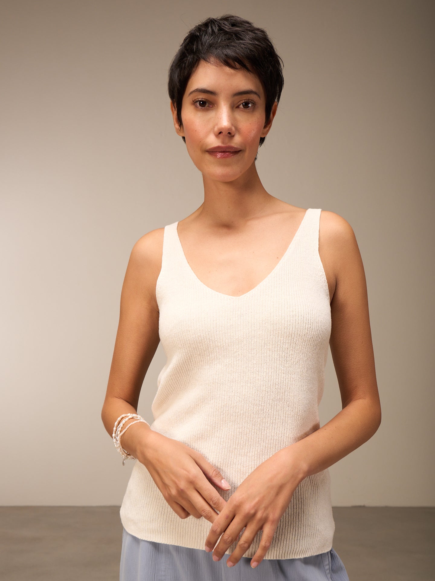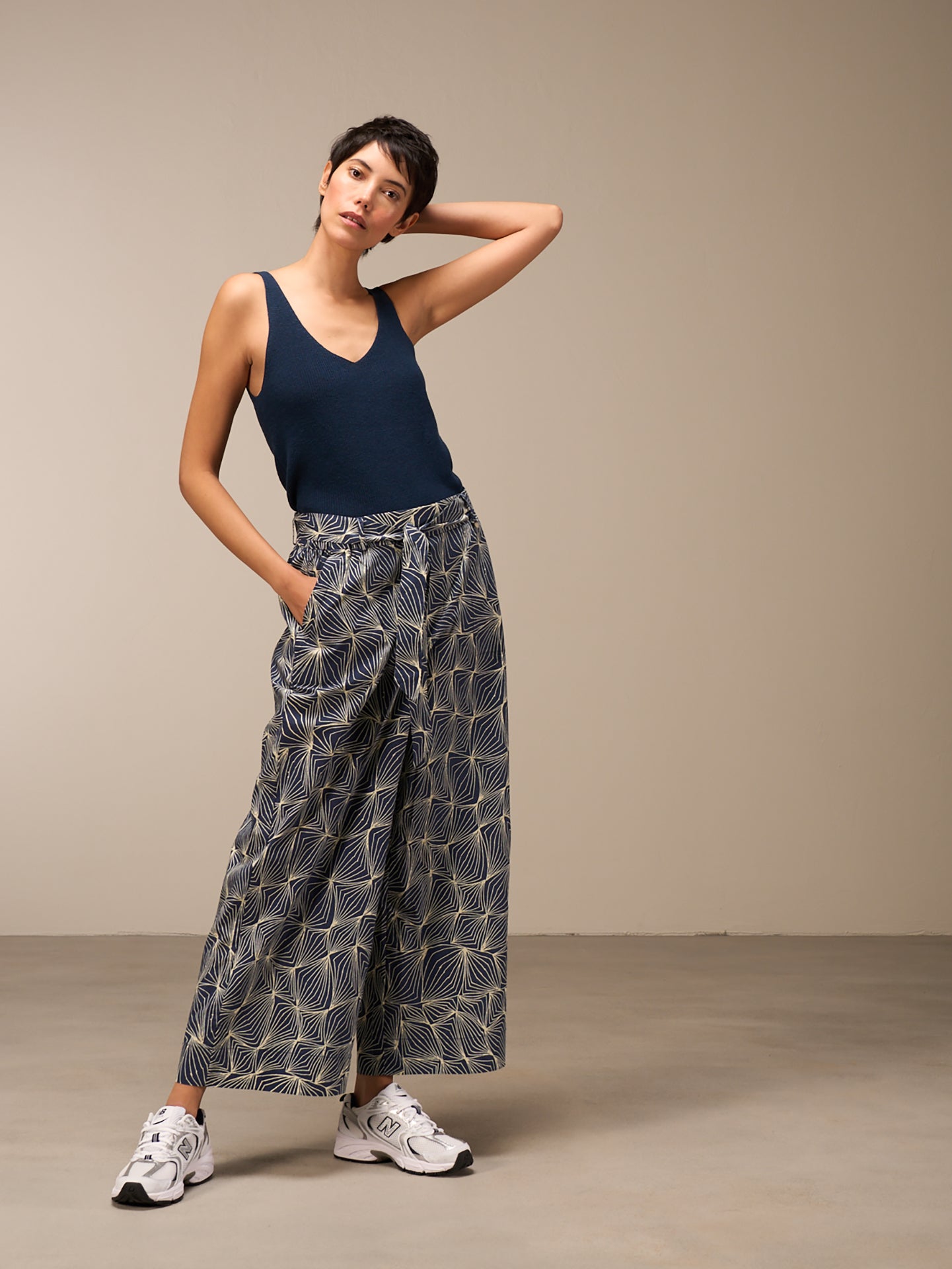 Body-hugging top in a patent pattern with a V-neckline at the front and back and narrow straps. The 55% linen and 45% cotton fabric ensures a high level of comfort.