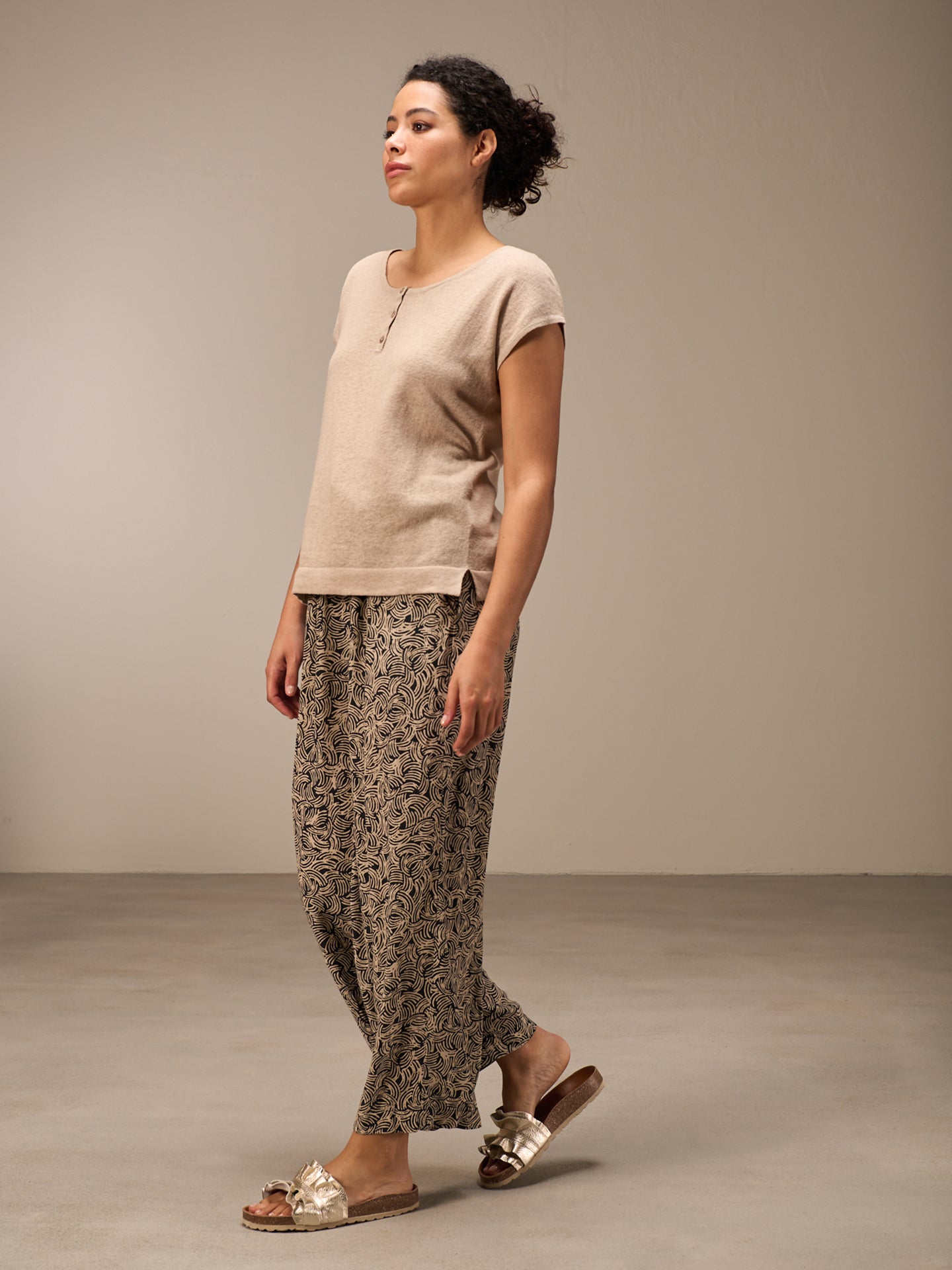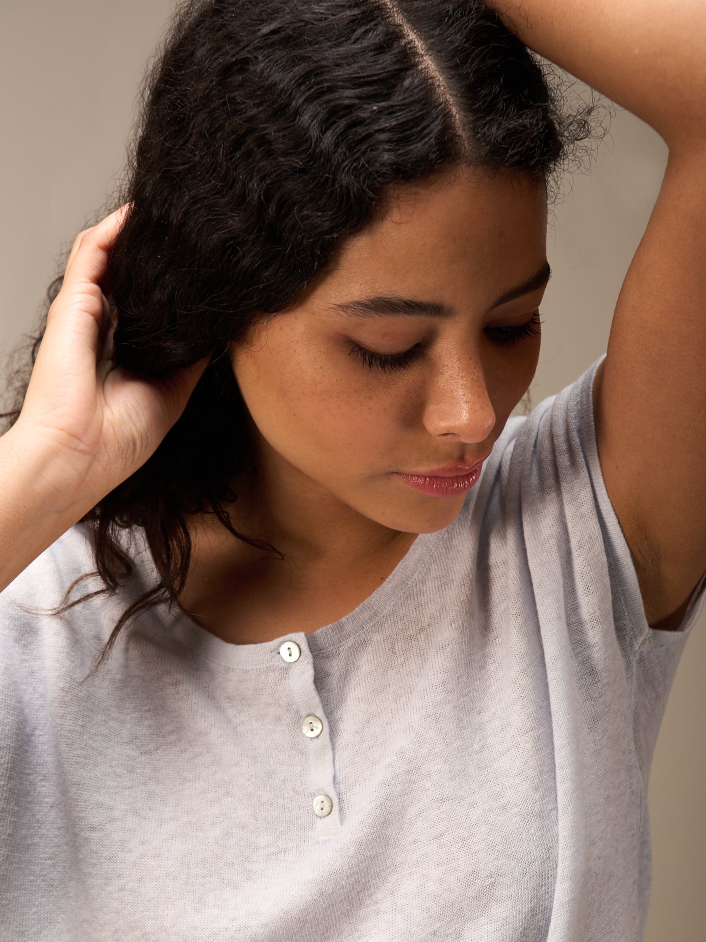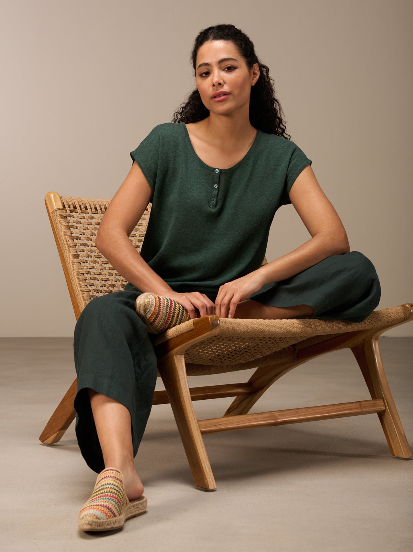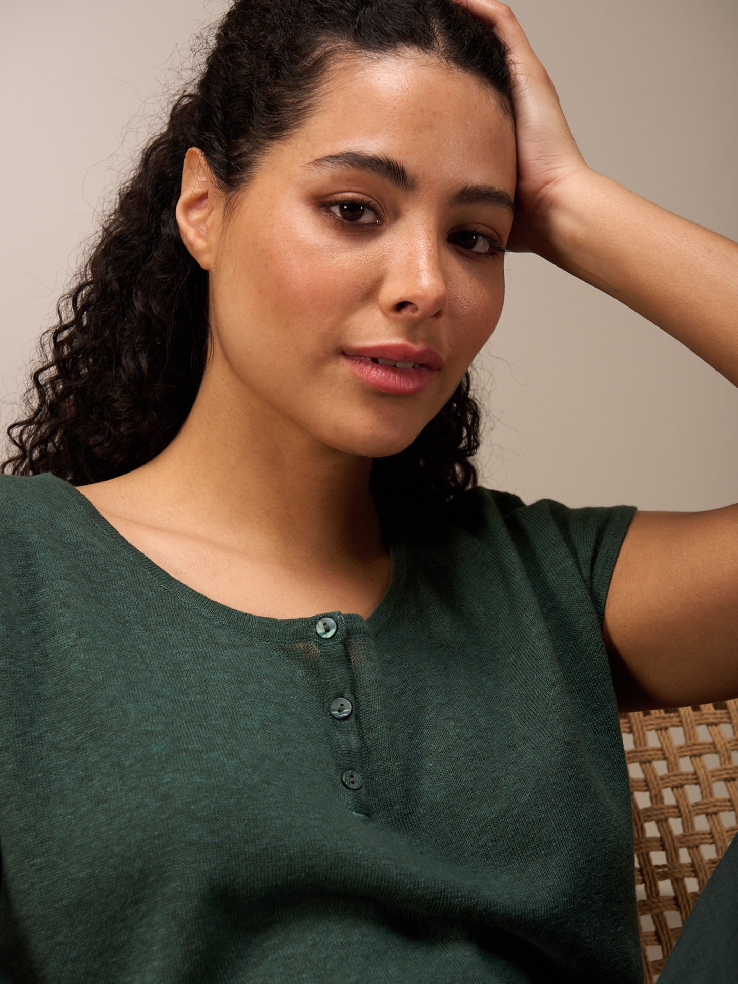 Fine sleeveless pullover with a round neck and high-quality tone-in-tone mother-of-pearl buttons made from a comfortable 100% linen knit. A special inside-out dyeing process lends the shirt a lovely look. Irregularities in the color mean that every piece is unique. The faded effect is enhanced.