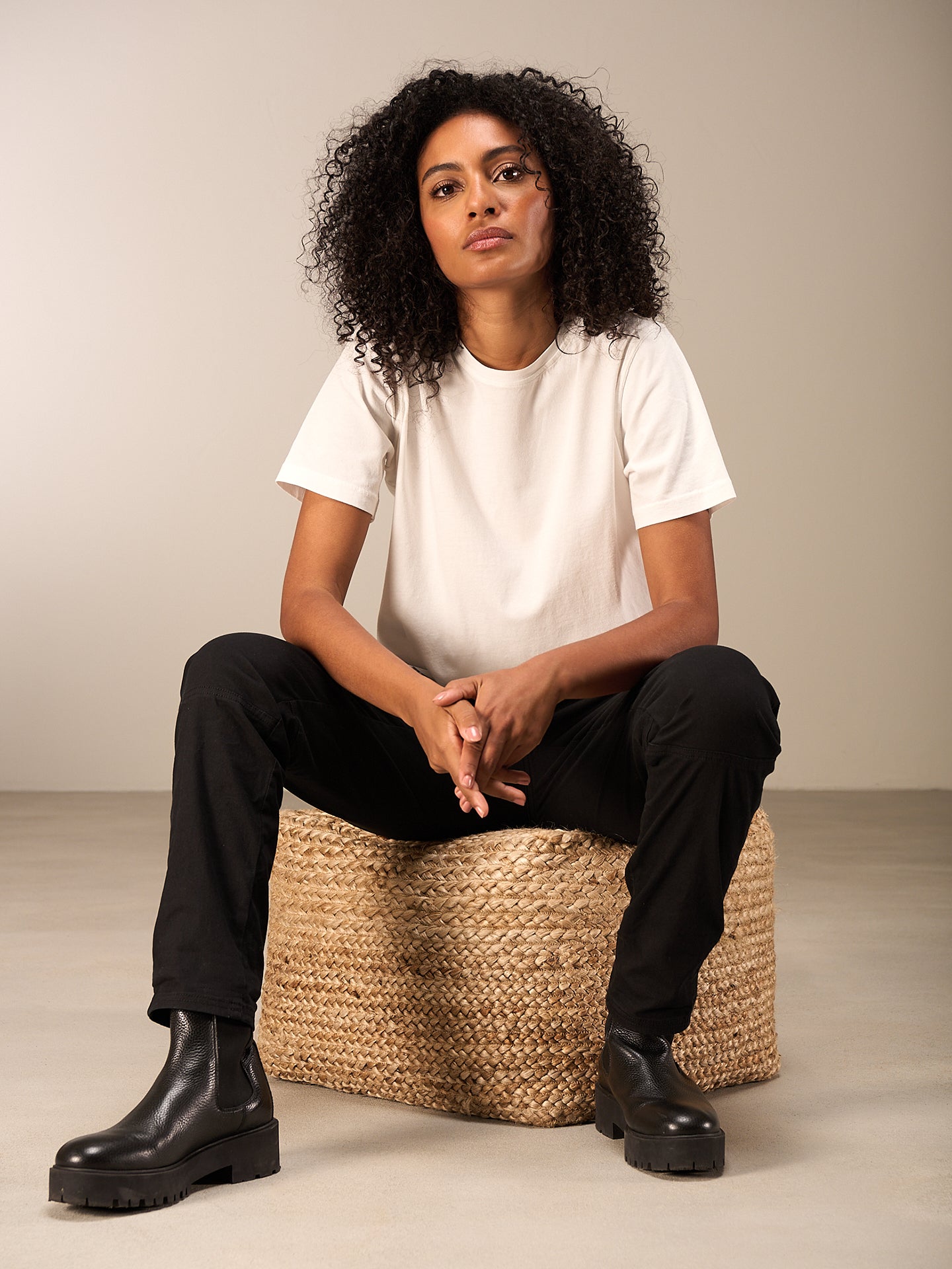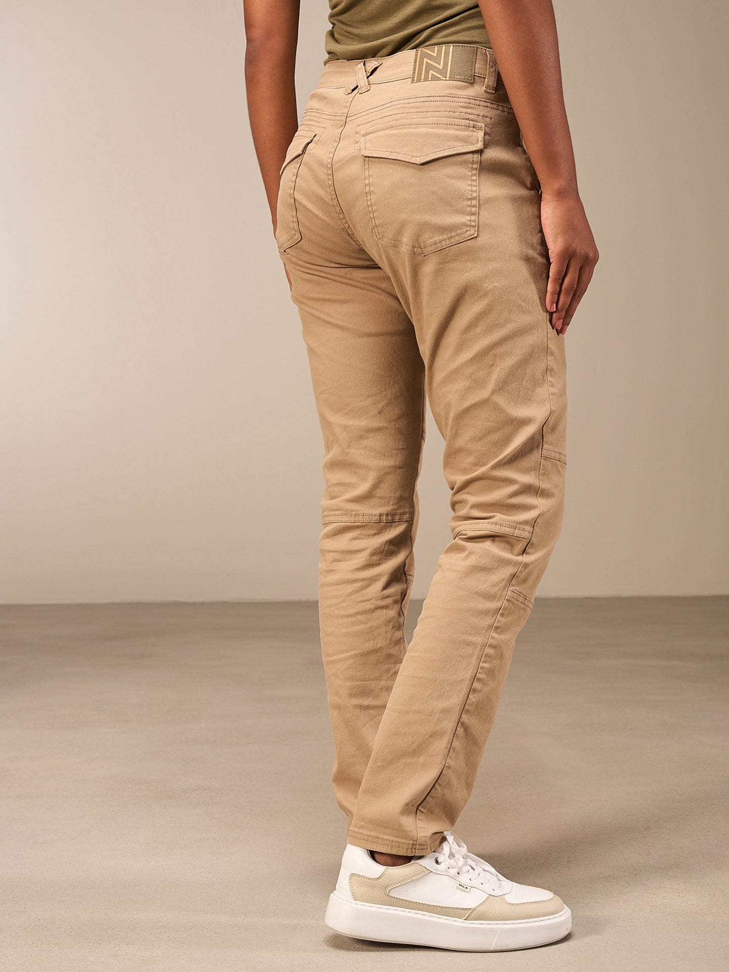Pantalon élastique moulant à la structure fine dans le style worker avec une taille basse et des passants de ceinture. Les lignes de coupe raffinées et les poches plaquées à rabat au niveau des fesses lui confèrent un look cool. Le revers roulé avec des bandes décoratives valorisent encore le pantalon. 98% coton bio issu de cultures certifiées et 2% élasthanne. Les irrégularités de la couleur rendent cette pièce unique. L'effet de décoloration s'accentue au lavage.