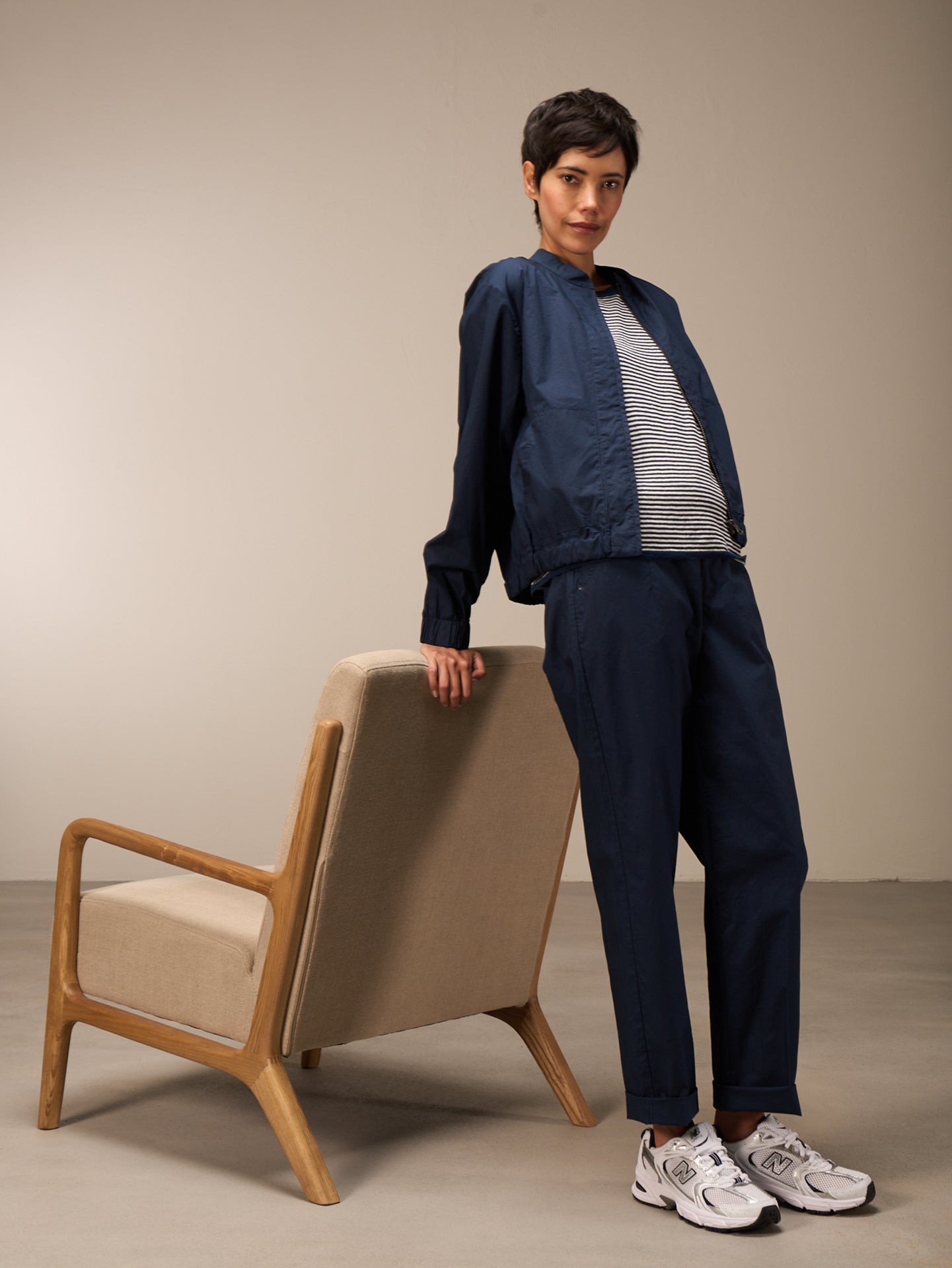 Pantalon décontracté avec une taille élastique à l'arrière pour une coupe confortable. La ceinture en tissu complète le look raffiné. En 100% coton bio issu de cultures certifiées, avec une touche de papier estivale.