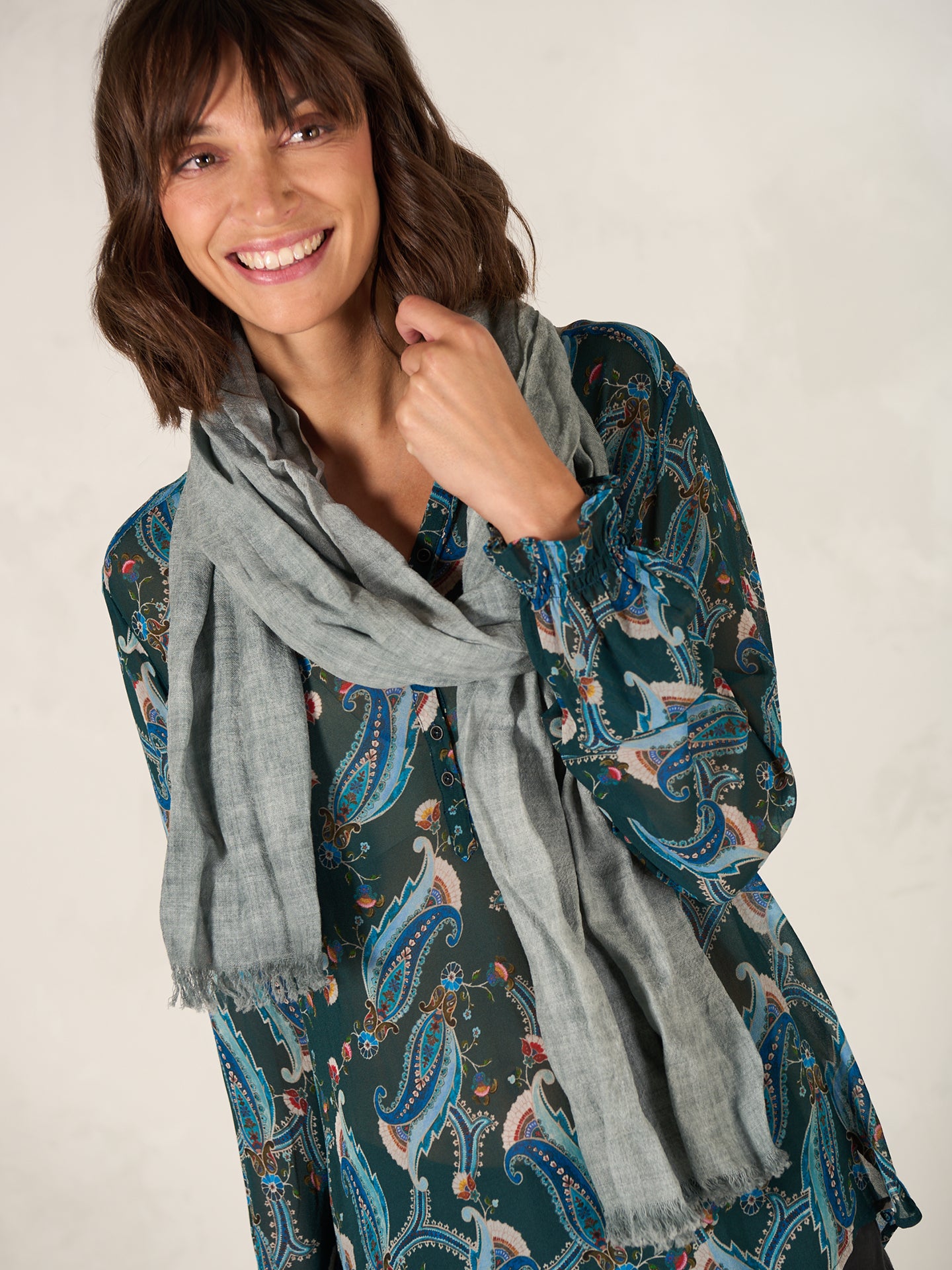 Écharpe unie; dimensions: 75 x 200 cm. 100% laine. Grâce à un procédé de teinture intérieure spécial, l’écharpe a un beau look délavé. Les irrégularités de couleur rendent chaque pièce unique. L'effet de décoloration est renforcé lors du lavage.