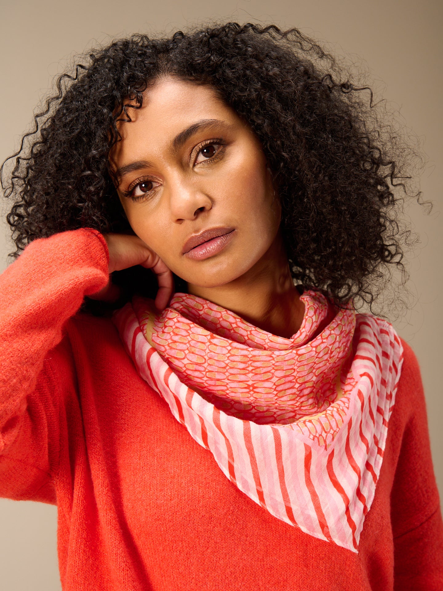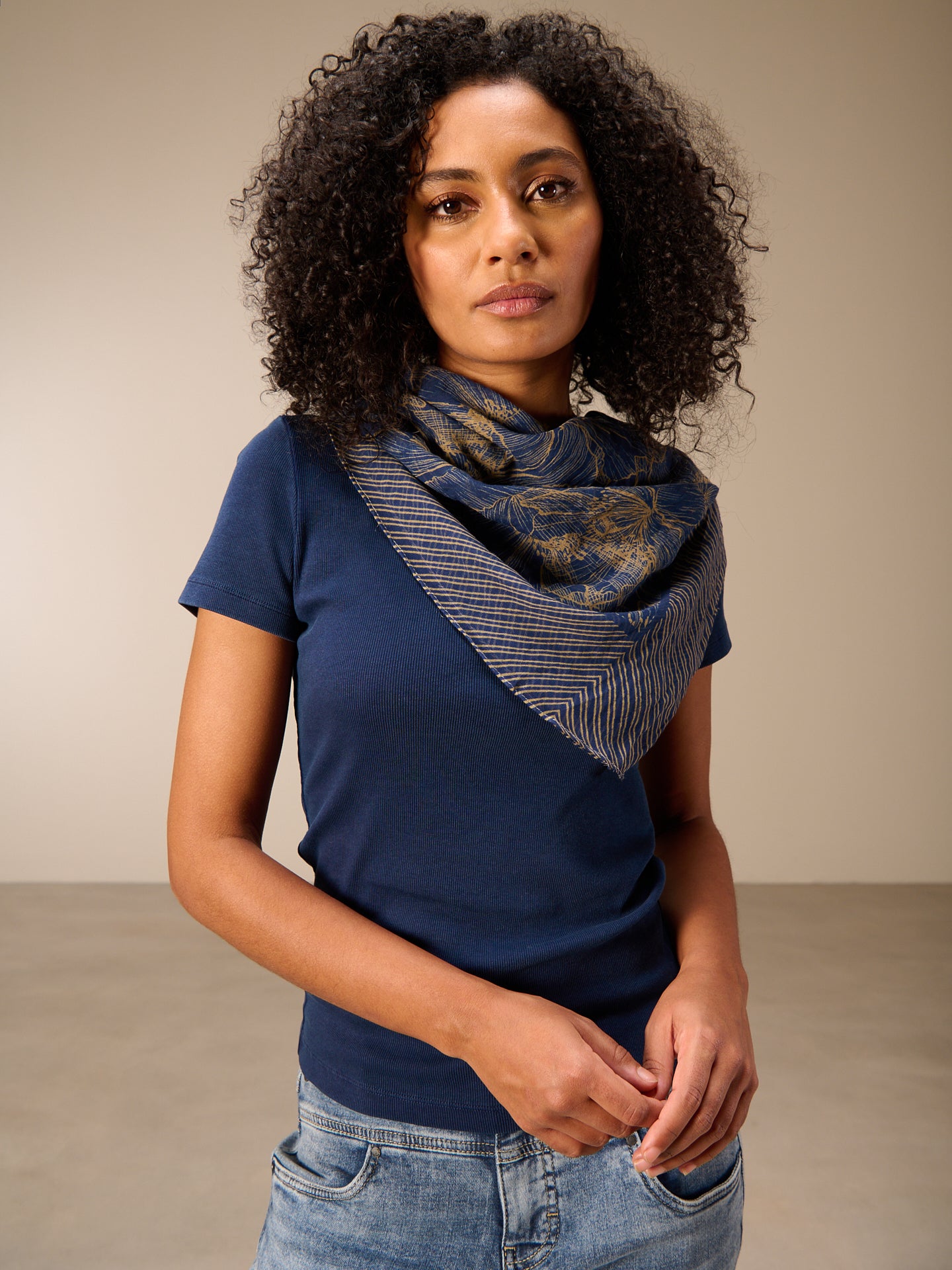 L'écharpe décontractée de 90 x 90 cm rehausse chaque tenue en un clin d'œil et devient ainsi un accessoire favori. L'écharpe est imprimée sur toute sa surface et les bords sont piqués.