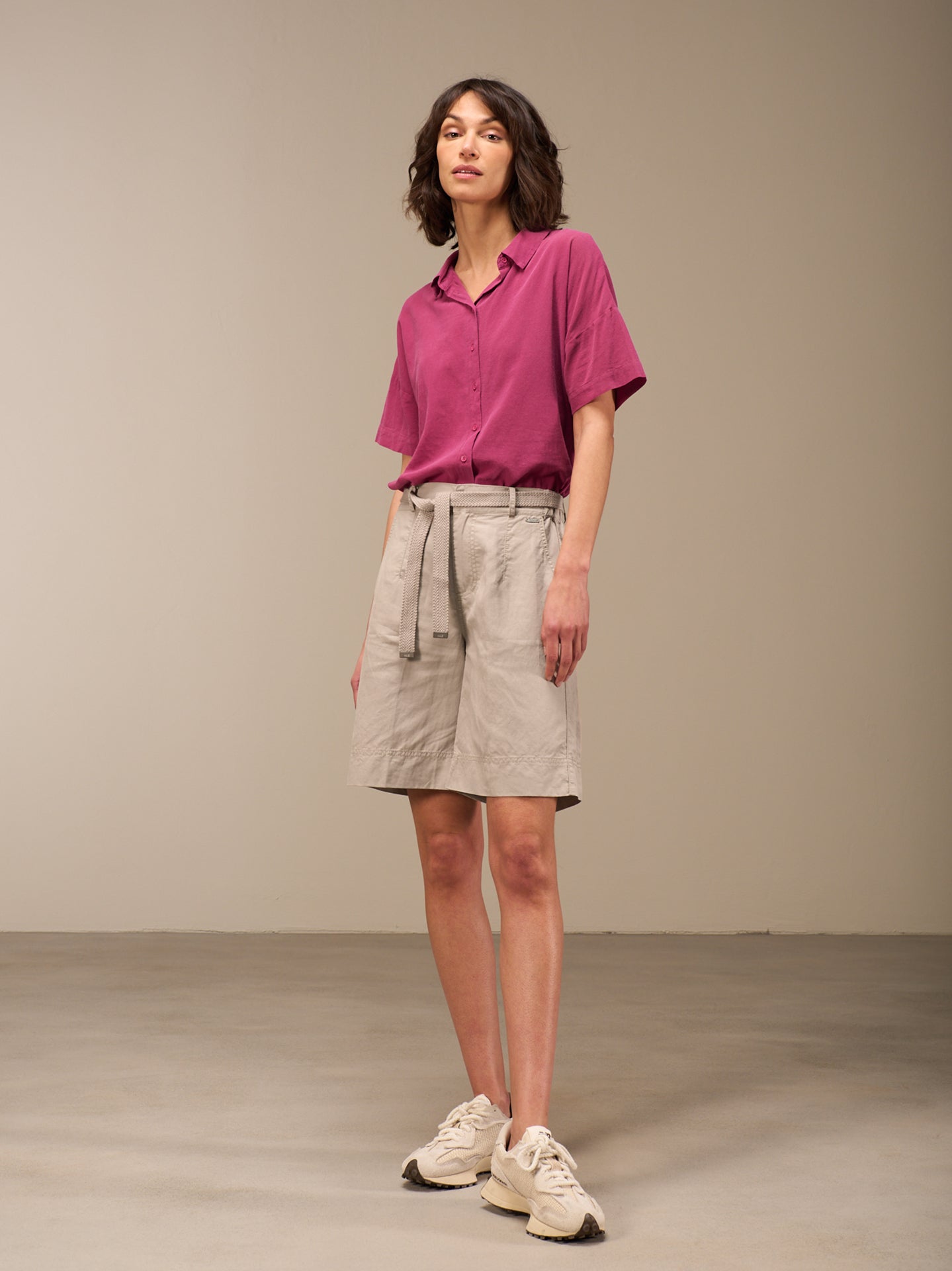 Bermuda a gamba larga con elastico sul retro per una vestibilità comoda in un tessuto piacevole ed estivo. Il risvolto sulle gambe permette di variare look e lunghezza. La cintura in tessuto di alta qualità e le tasche applicate sul retro completano il design elegante.