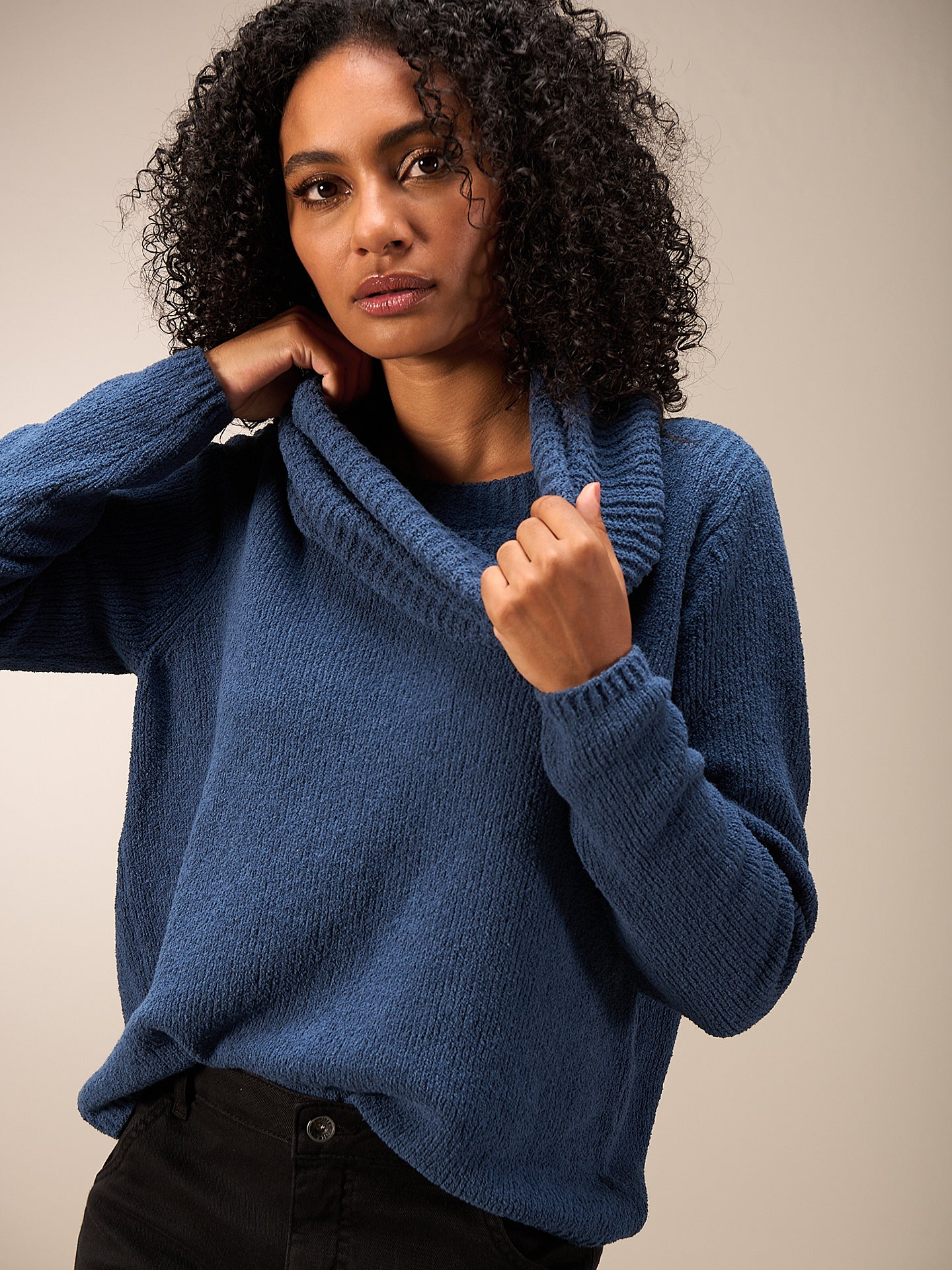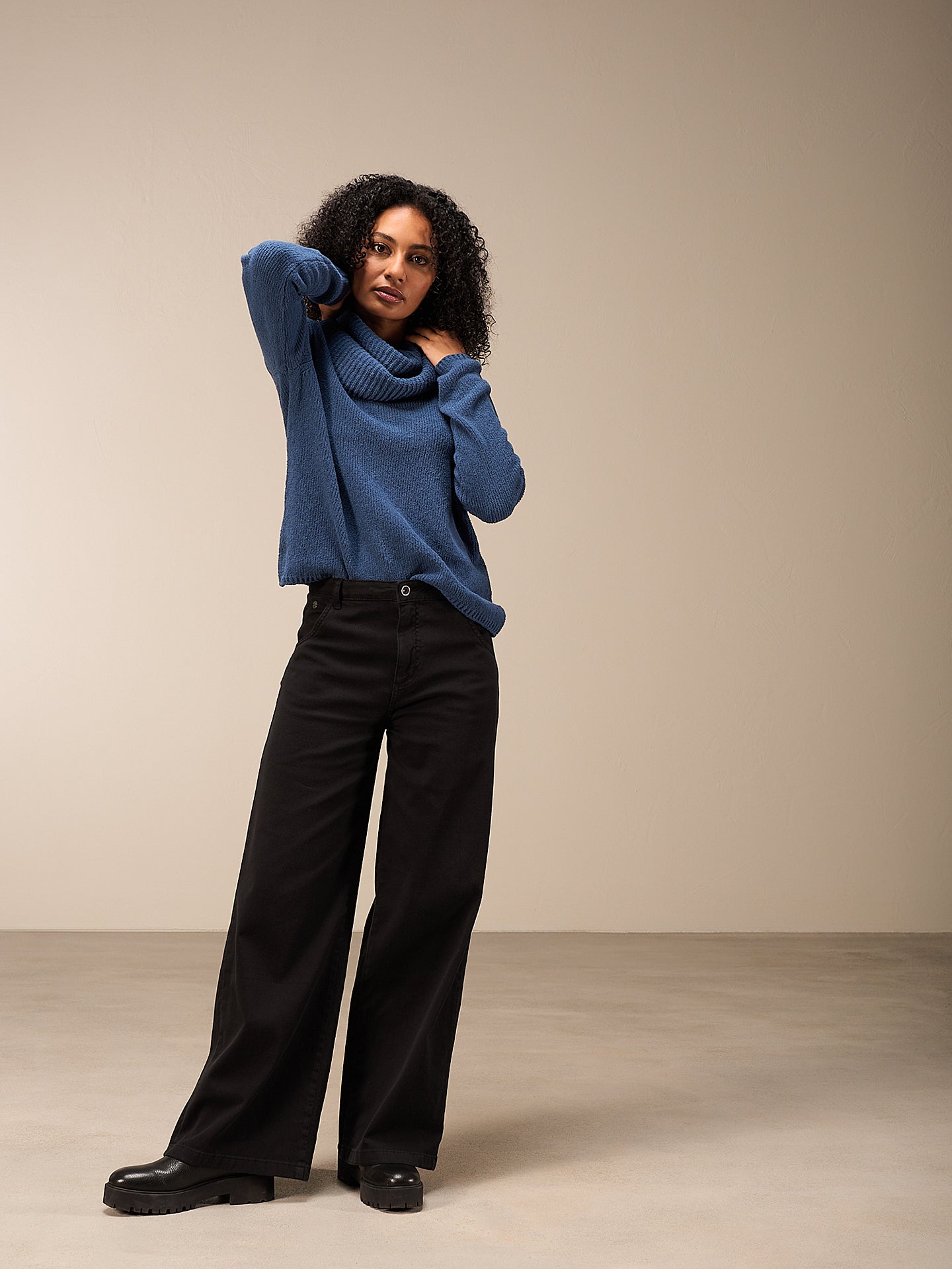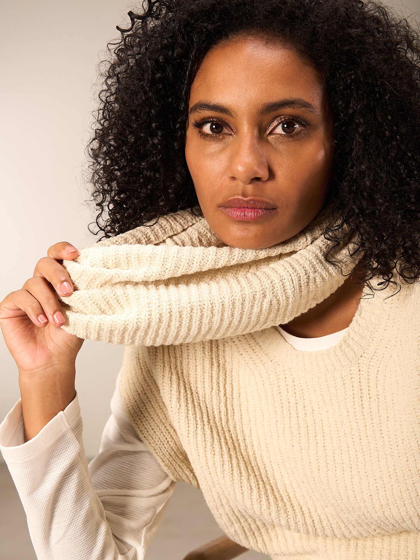 Collare tubolare dal taglio morbido con motivo a mezzo punto a maglia rasata in speciale filato bouclé soffice. Ideale da abbinare a un gilet o a una giacca.