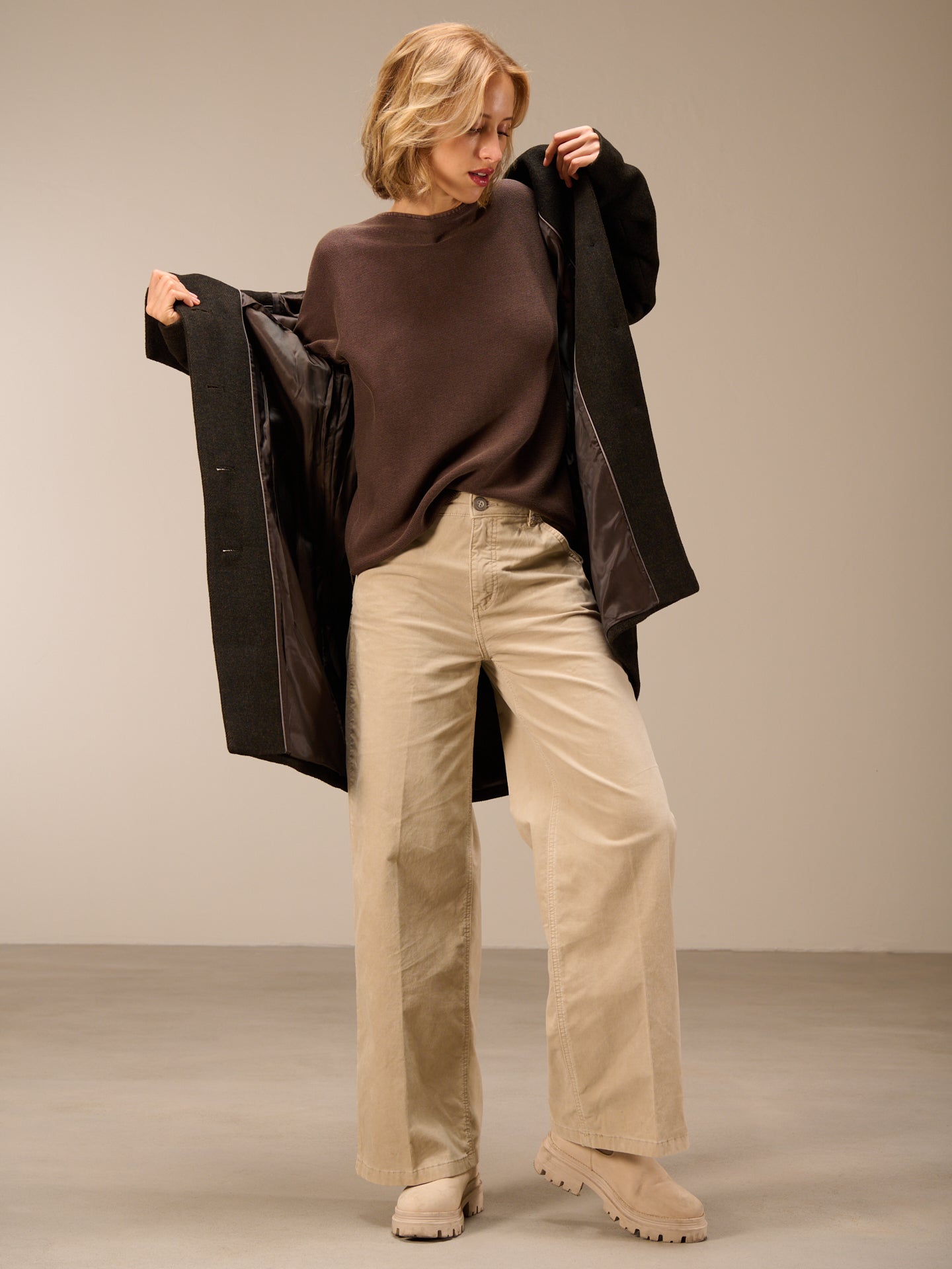 Nota sui pantaloni: i pantaloni con elastan si allungano leggermente quando vengono indossati, ma di solito tornano alla loro forma originale dopo il lavaggio.