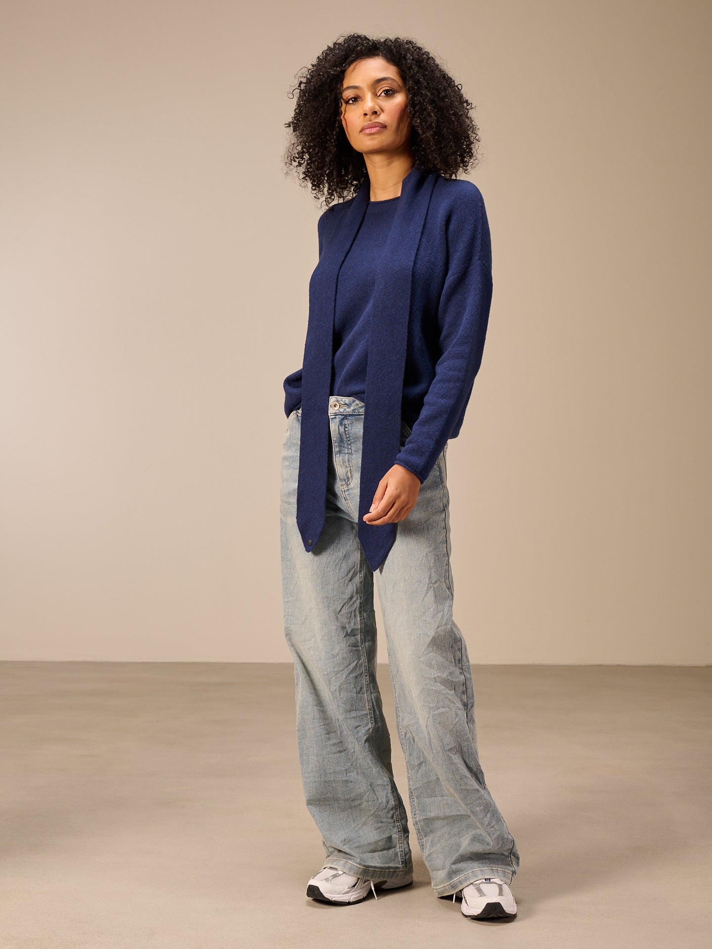 Maglione dal taglio dritto, vestibilità morbida e scollo rotondo.