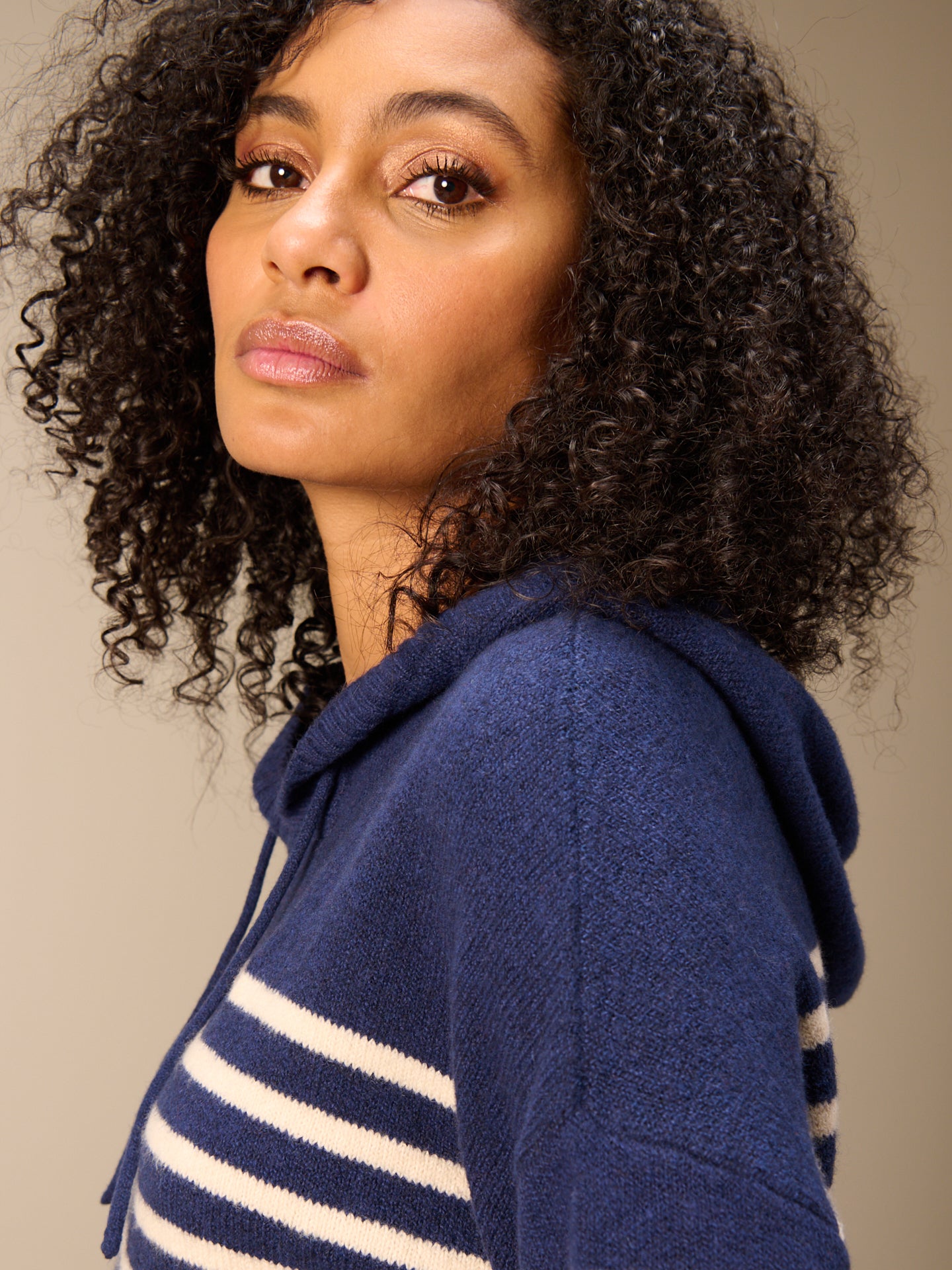 Maglione dalla vestibilità morbida con cappuccio, lavorato a maglia rasata e bordi a coste.
