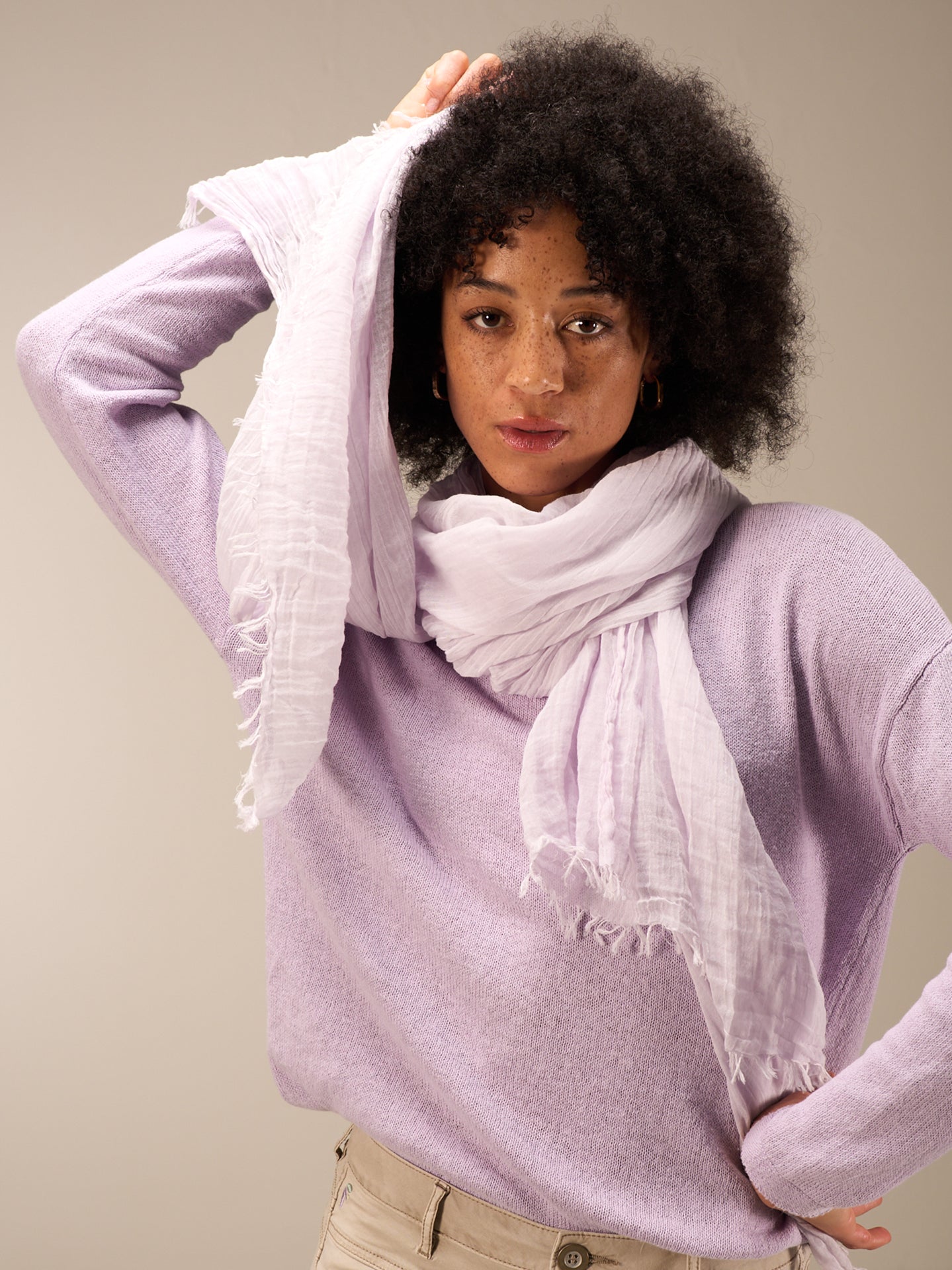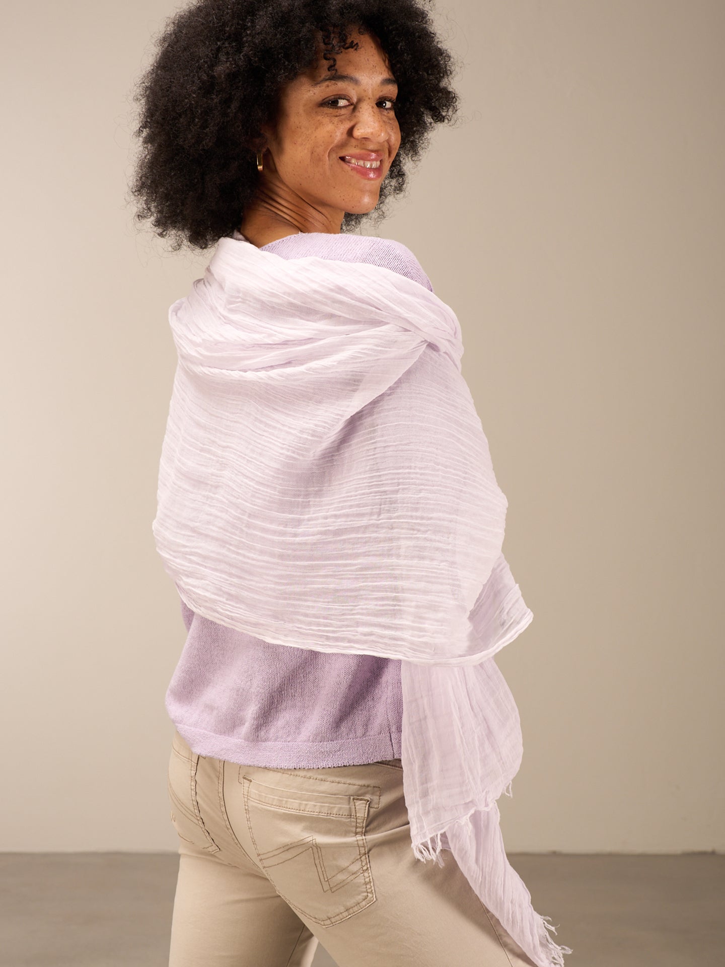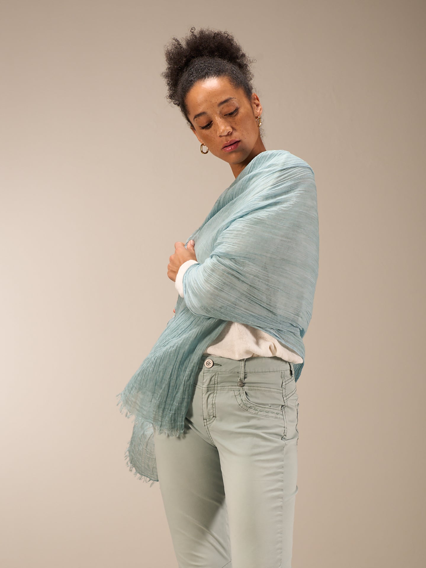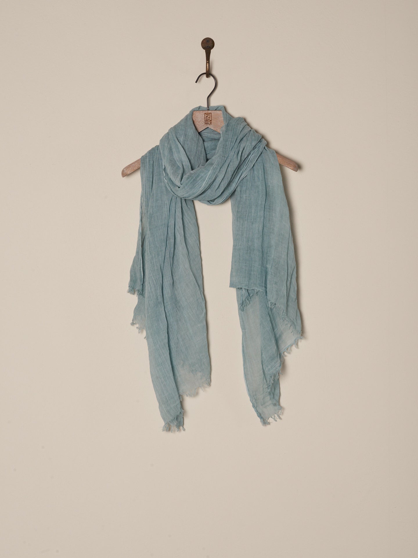 Sciarpa monocolore nelle dimensioni 100 x 200 cm. 100% cotone biologico da coltivazione certificata. Grazie a uno speciale processo di tintura, la sciarpa assume un bellissimo effetto slavato. Le irregolarità nel colore rendono ogni pezzo unico. L'effetto slavato è accentuato.