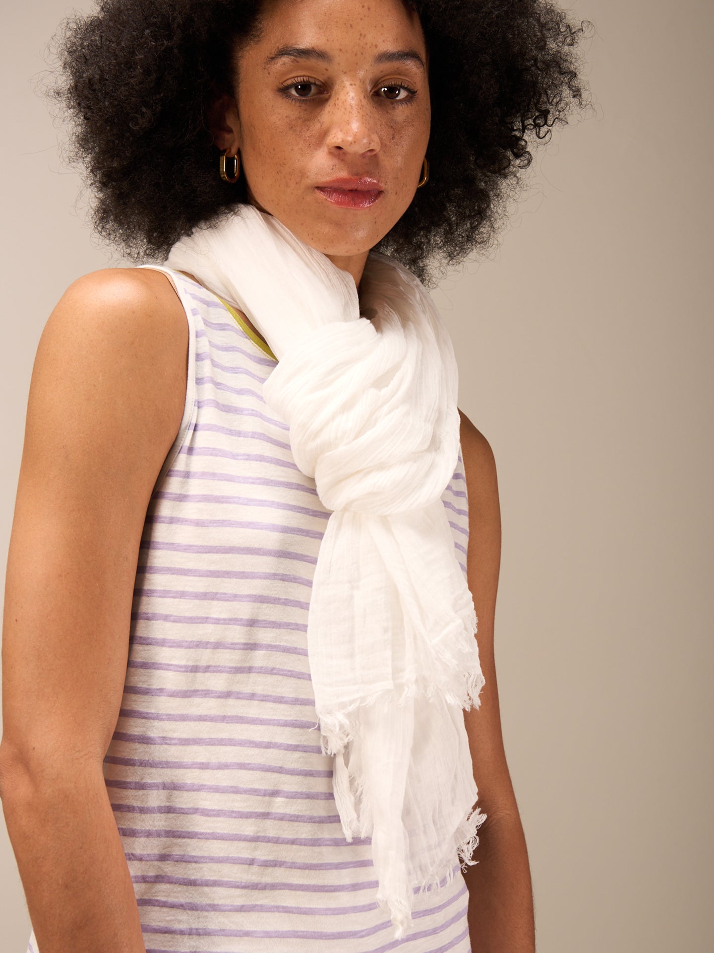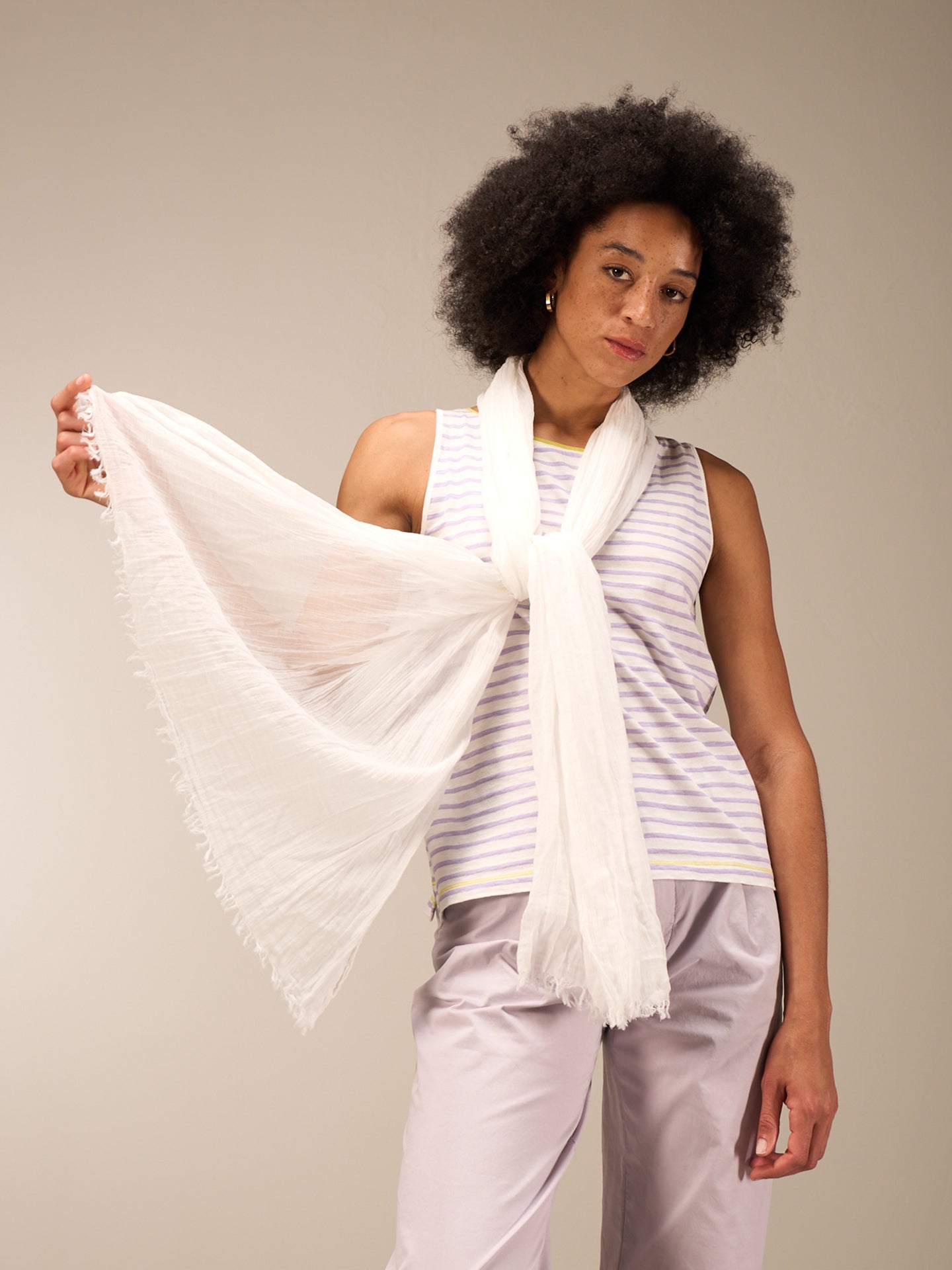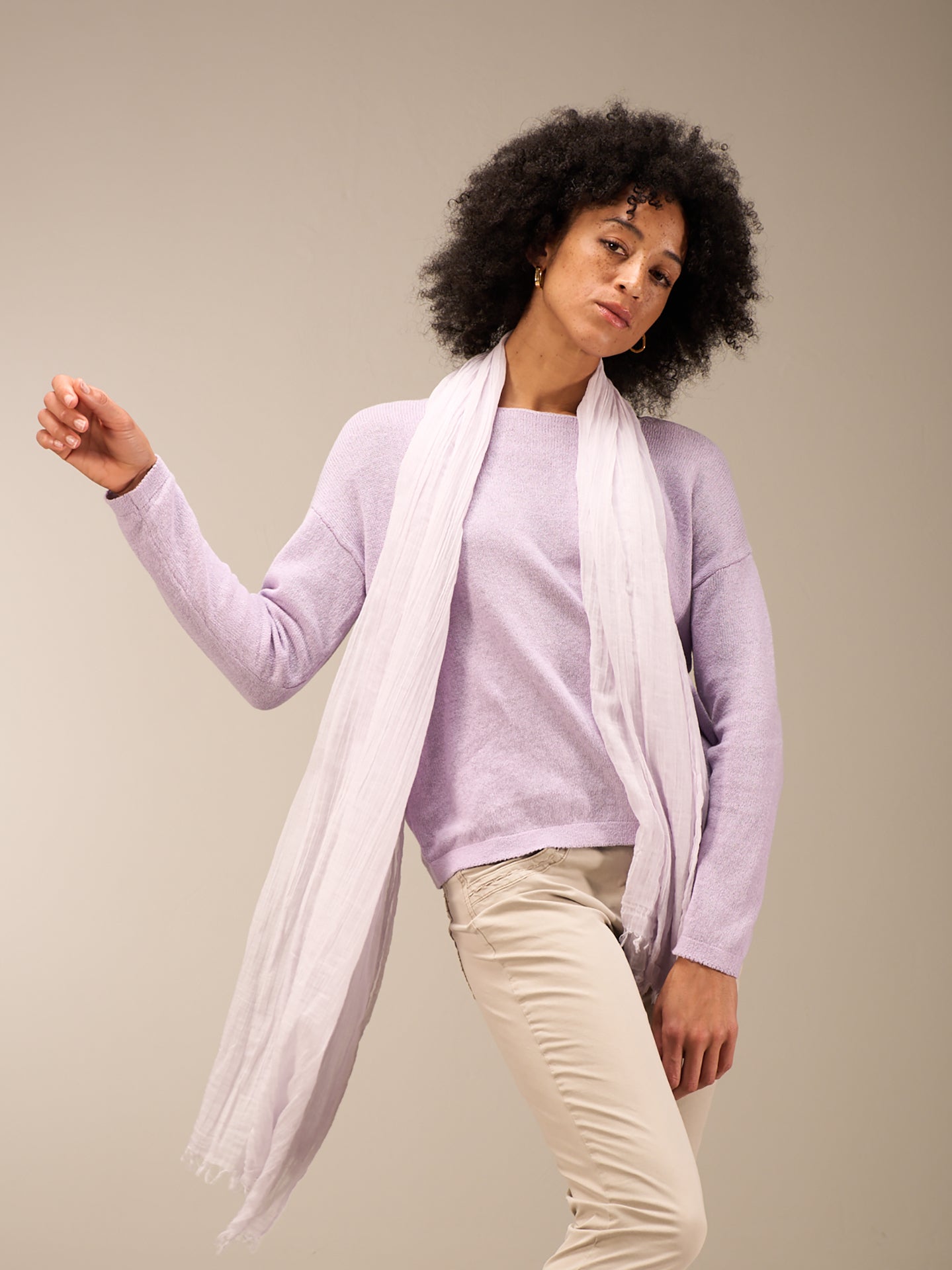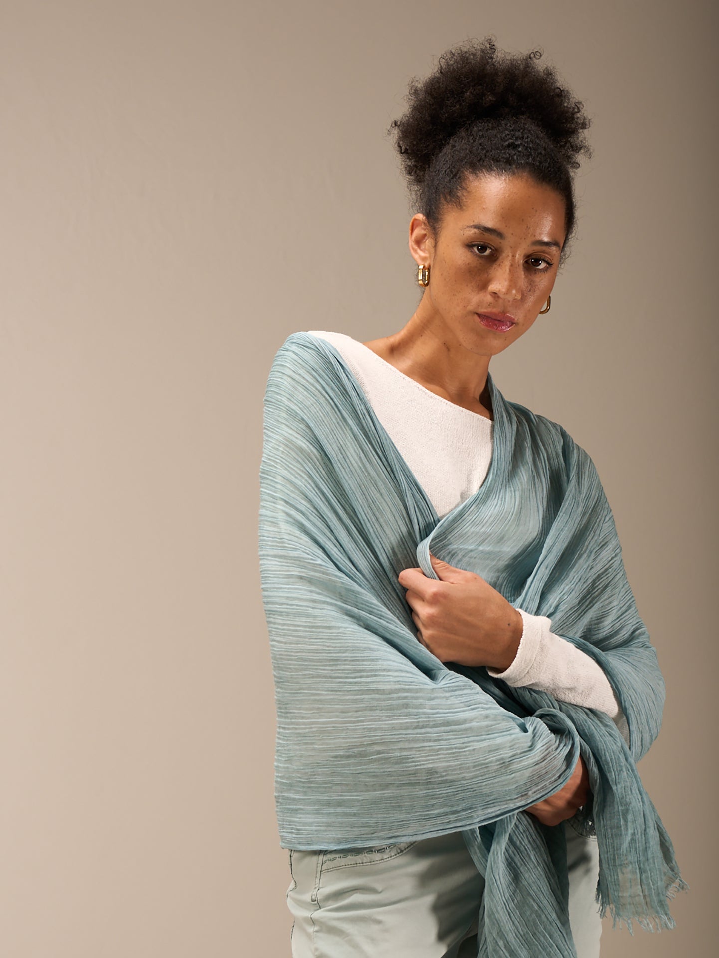 Sciarpa monocolore nelle dimensioni 100 x 200 cm. 100% cotone biologico da coltivazione certificata. Grazie a uno speciale processo di tintura, la sciarpa assume un bellissimo effetto slavato. Le irregolarità nel colore rendono ogni pezzo unico. L'effetto slavato è accentuato.