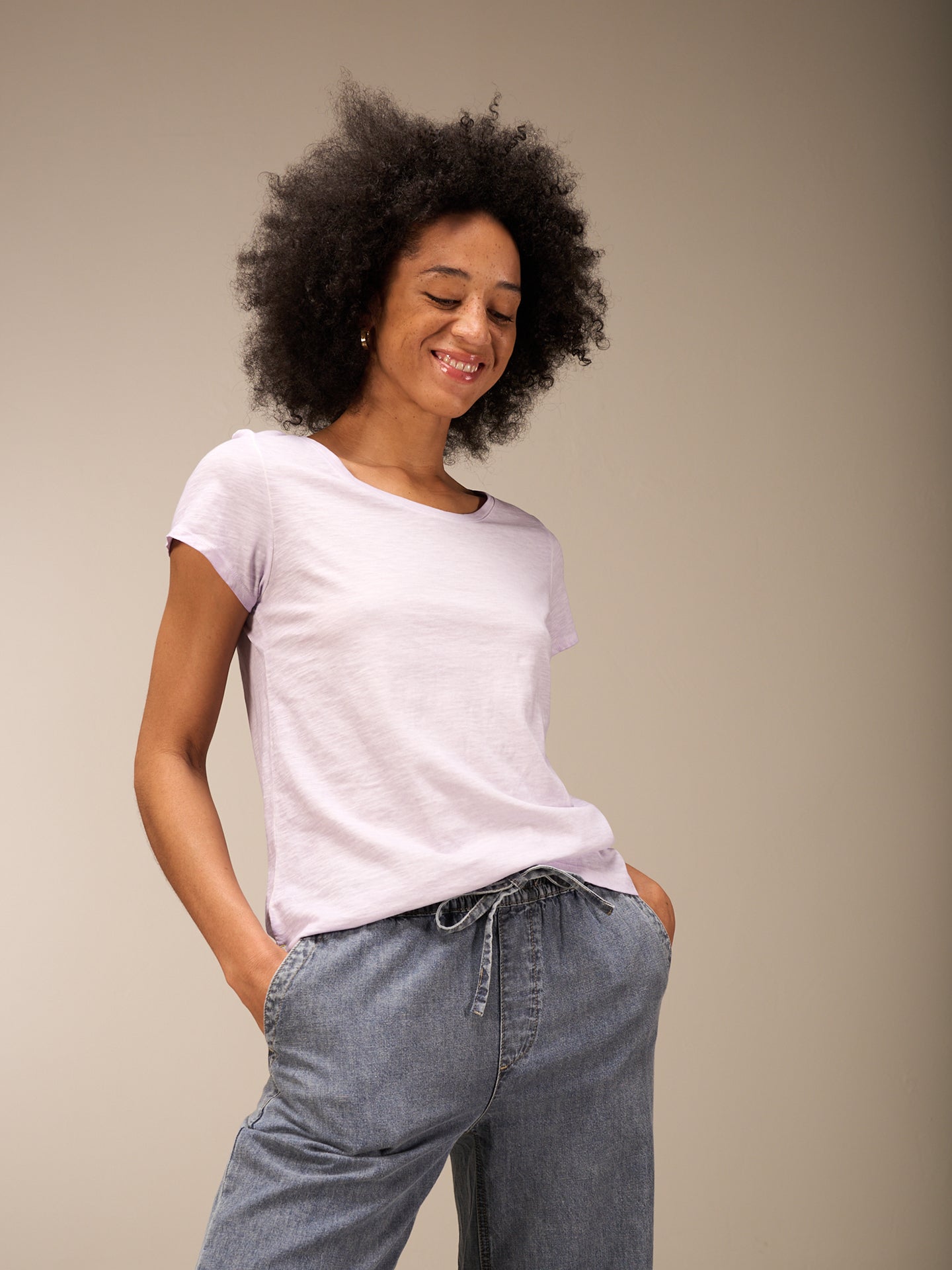 Maglietta dal taglio morbido con spacchi laterali e scollo rotondo in jersey fiammato. 100% cotone biologico certificato GOTS. Maglietta dal taglio morbido con spacchi laterali e scollo rotondo in jersey fiammato. 100% cotone biologico certificato GOTS. Grazie a uno speciale processo di tintura interna, la maglietta assume un bellissimo effetto slavato. Le irregolarità nel colore rendono ogni capo unico. L'effetto slavato è accentuato.