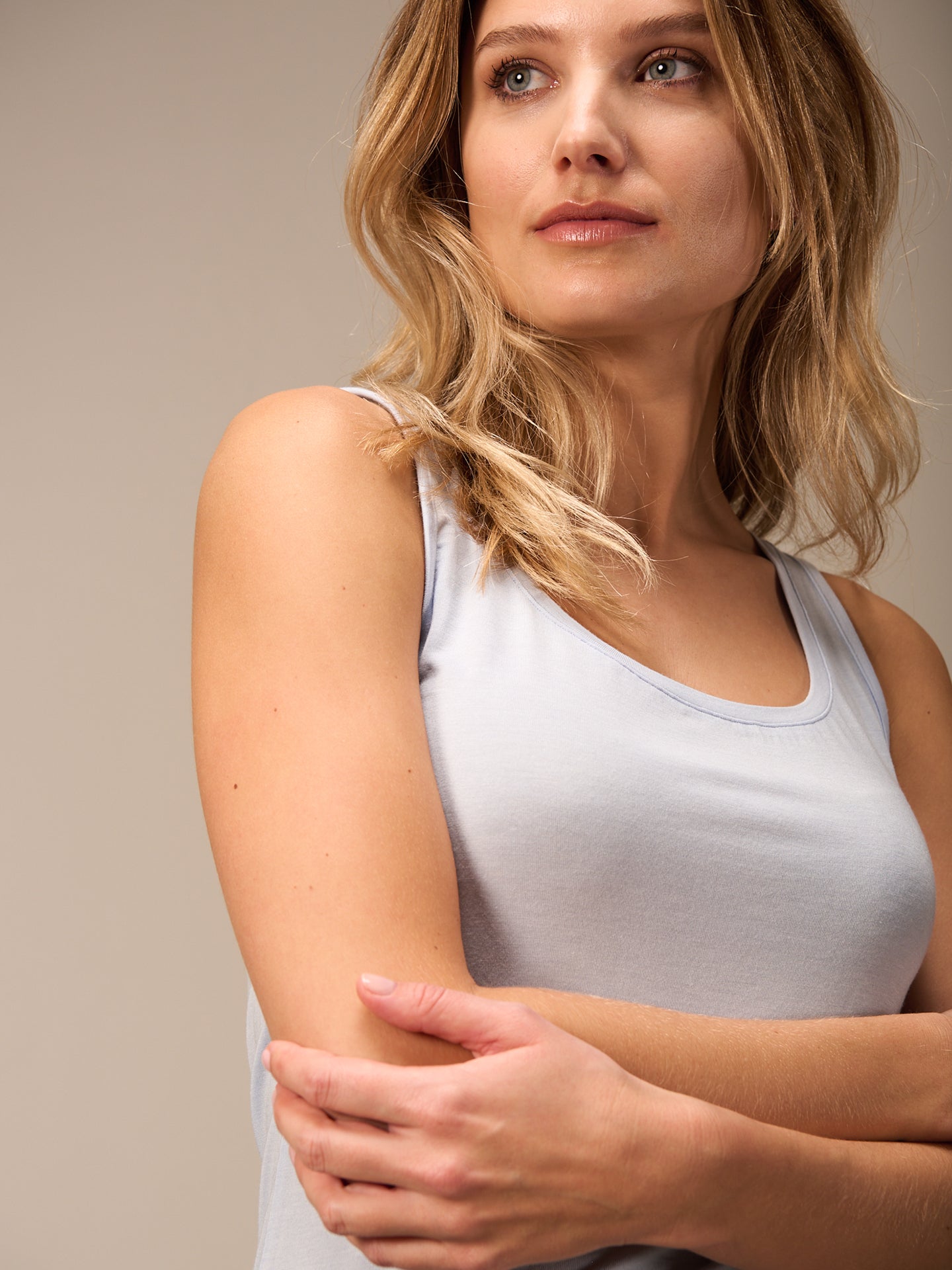 Il TENCEL™ è una fibra ecologica realizzata a partire dal legno attraverso un processo a ciclo chiuso. Biodegradabile e traspirante, è particolarmente delicato sulla pelle e la mantiene asciutta.