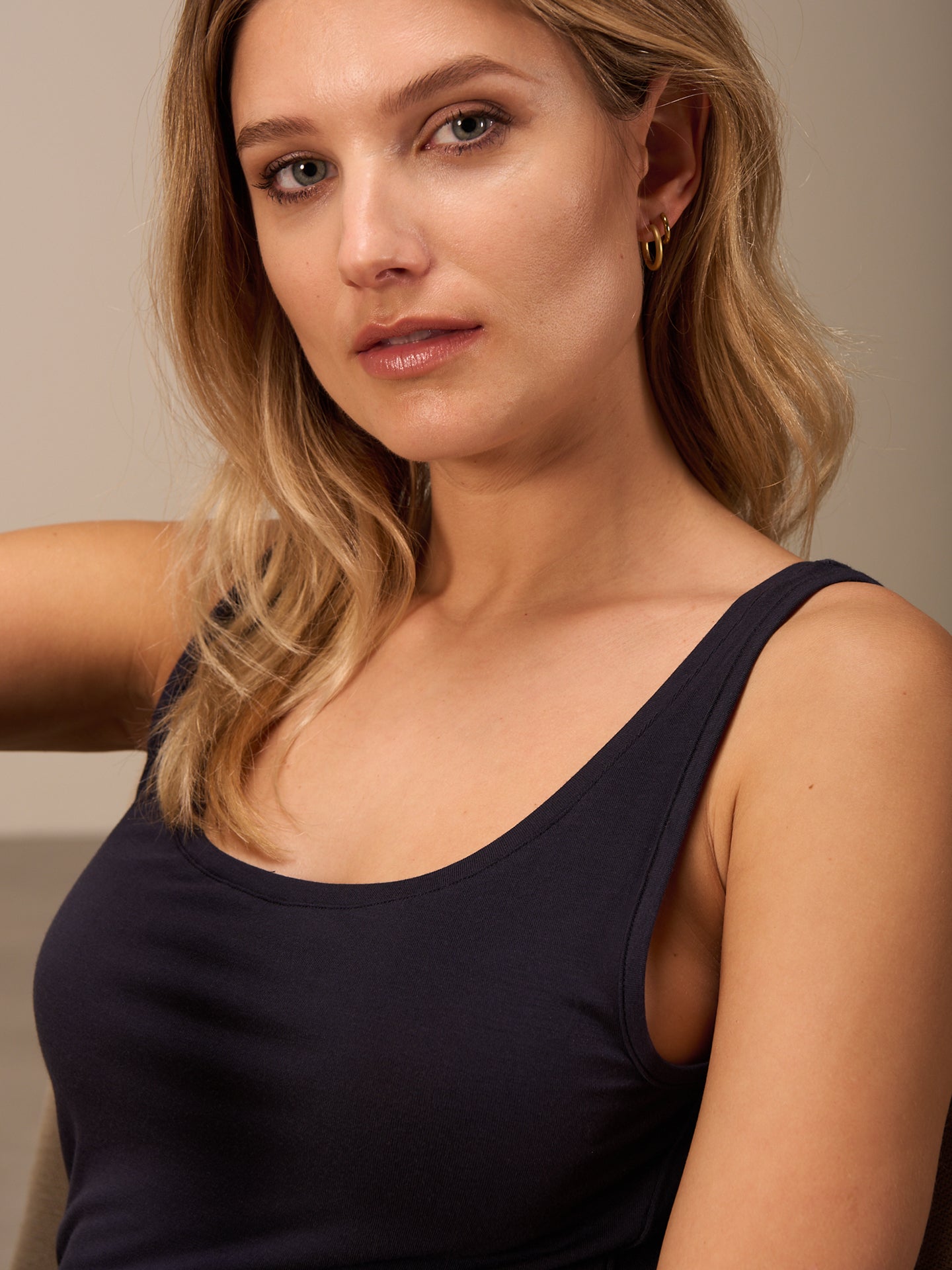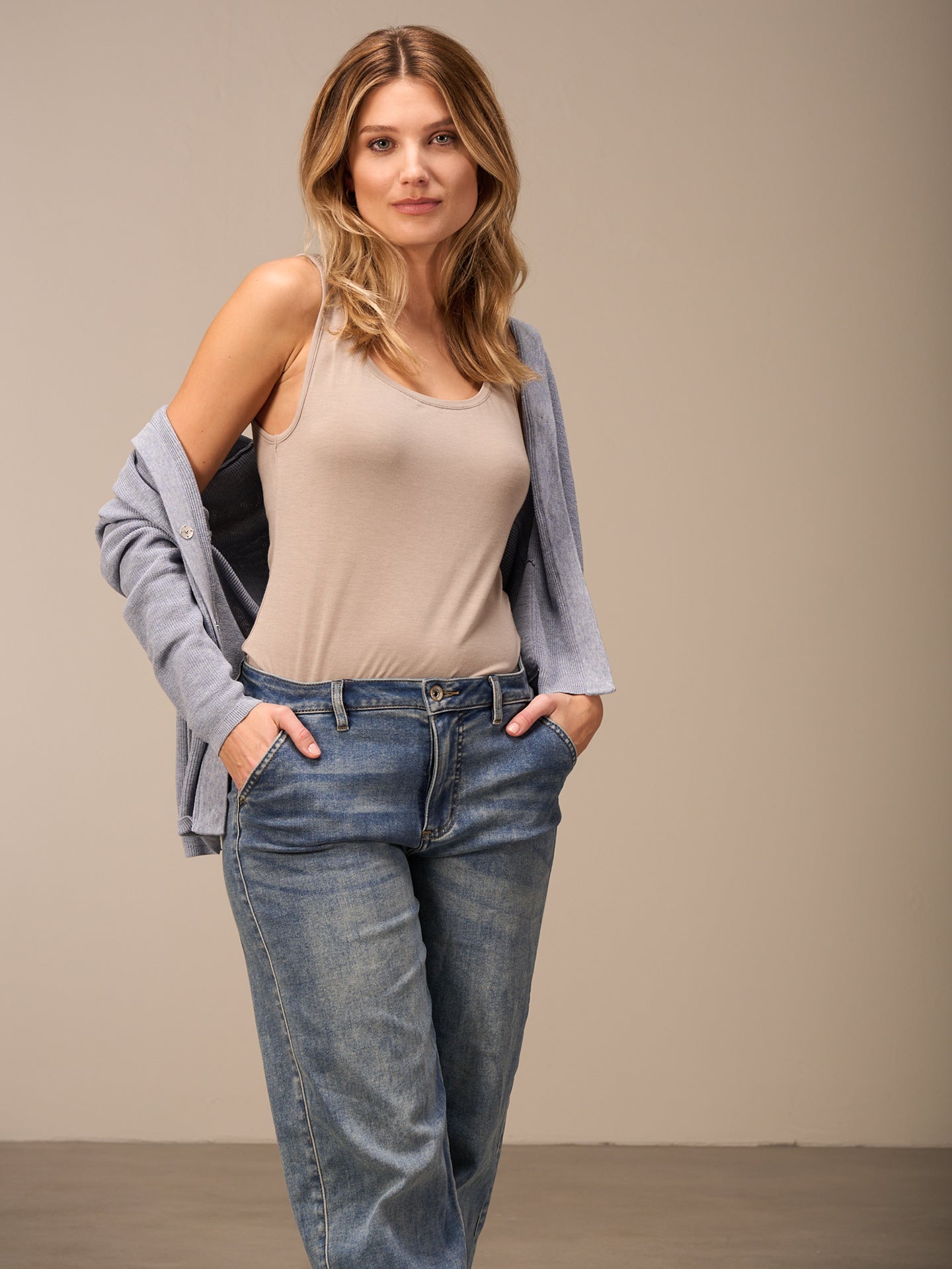 Top con spalline larghe, scollo rotondo e spacchi decorativi sui fianchi.