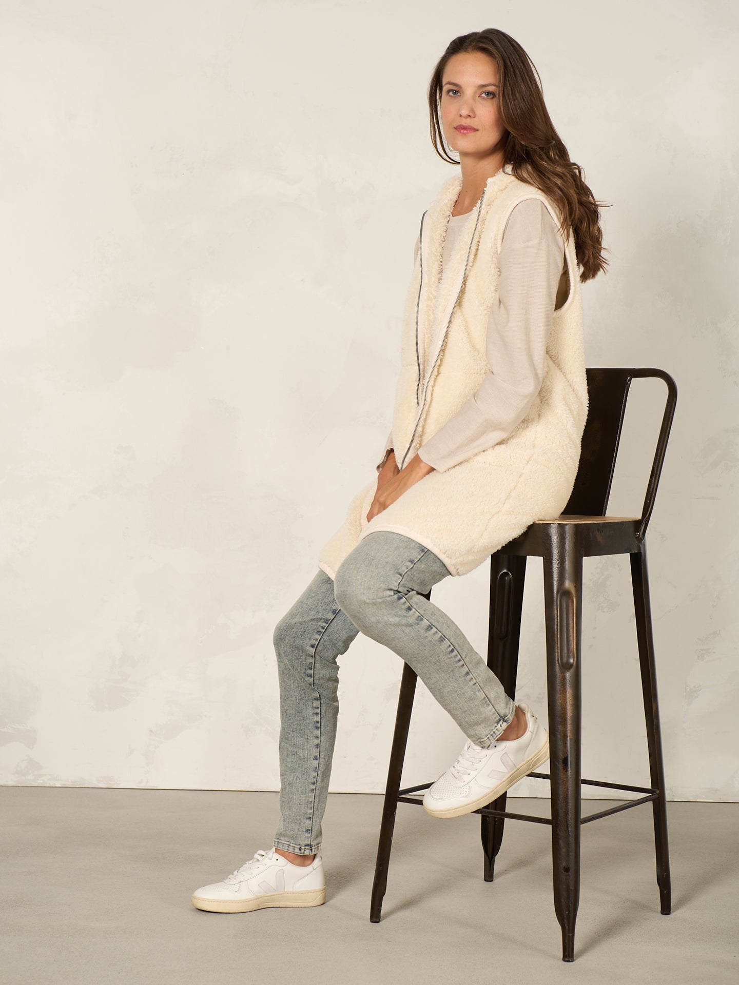 Gilet oversize super soffice con un cappuccio accogliente, ampie tasche e una leggera zip a due vie.