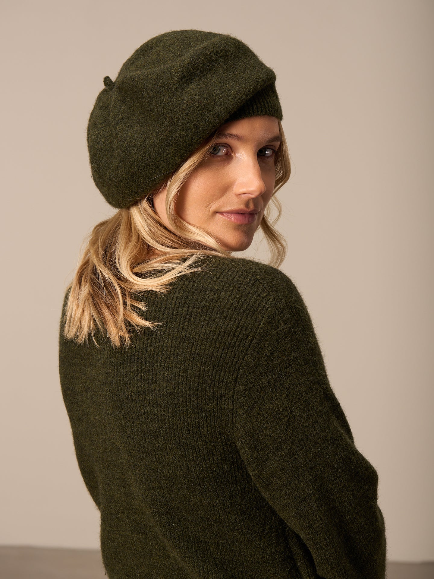 Strickberet mit Rippenbündchen am Saum.