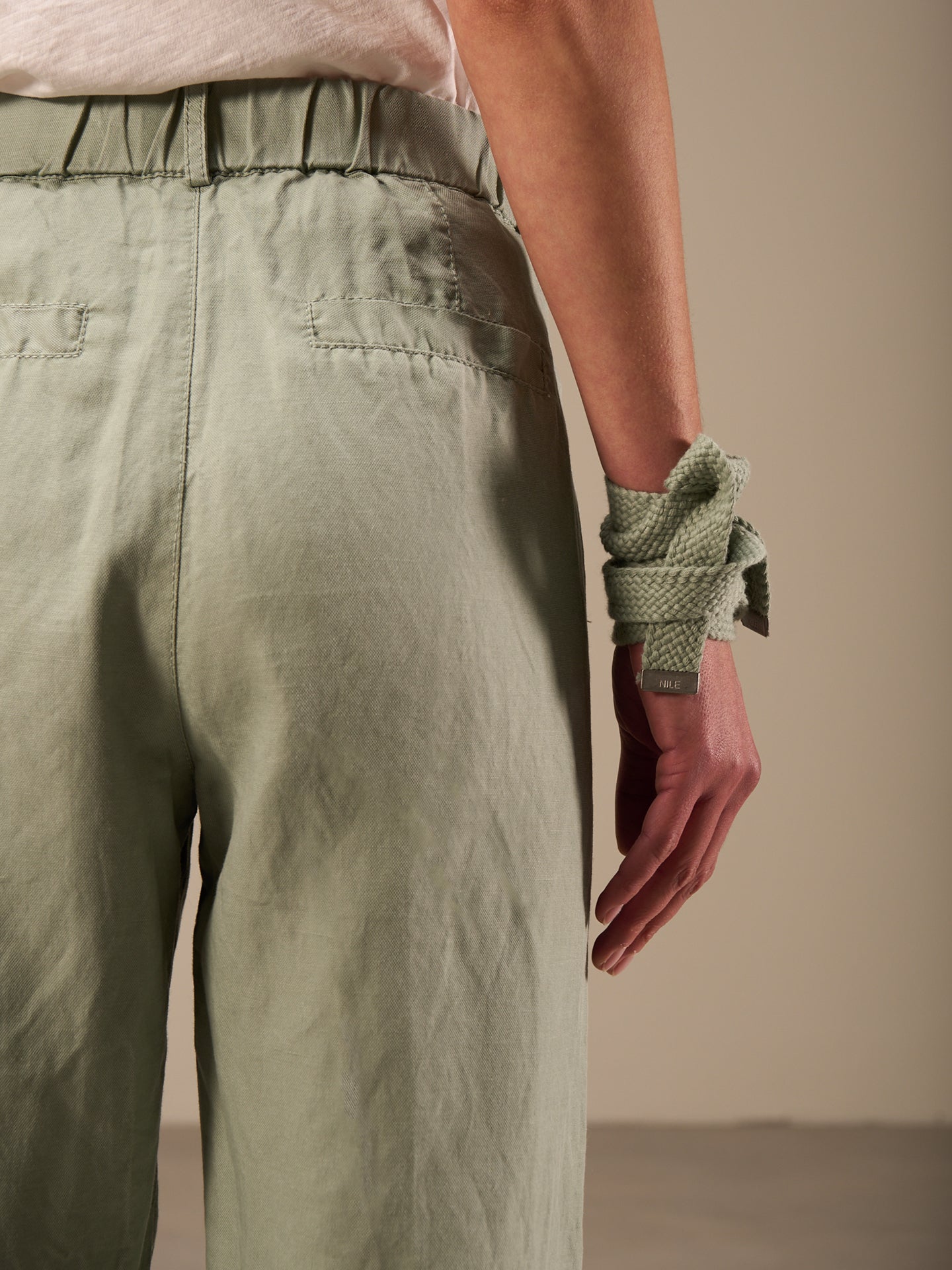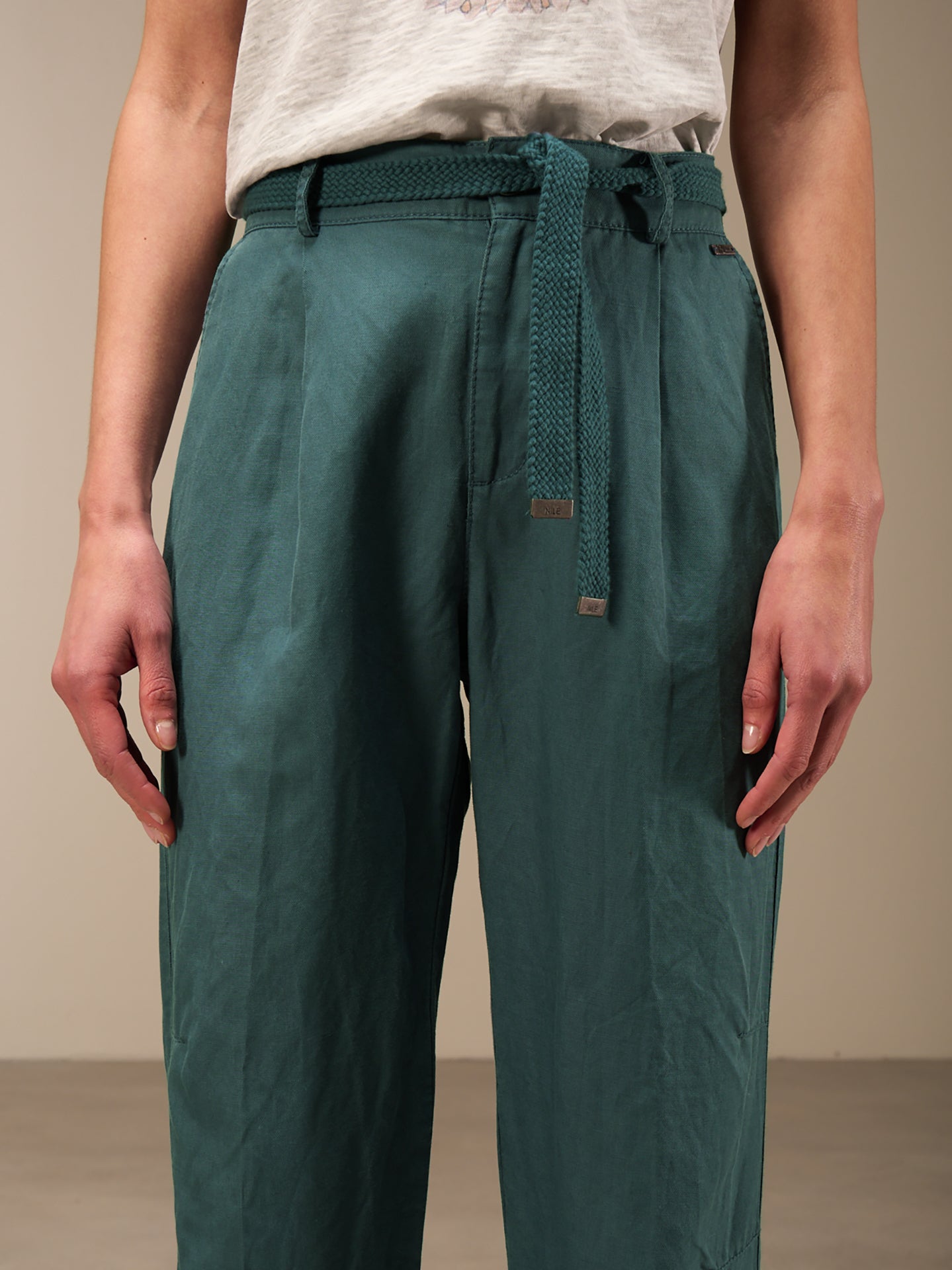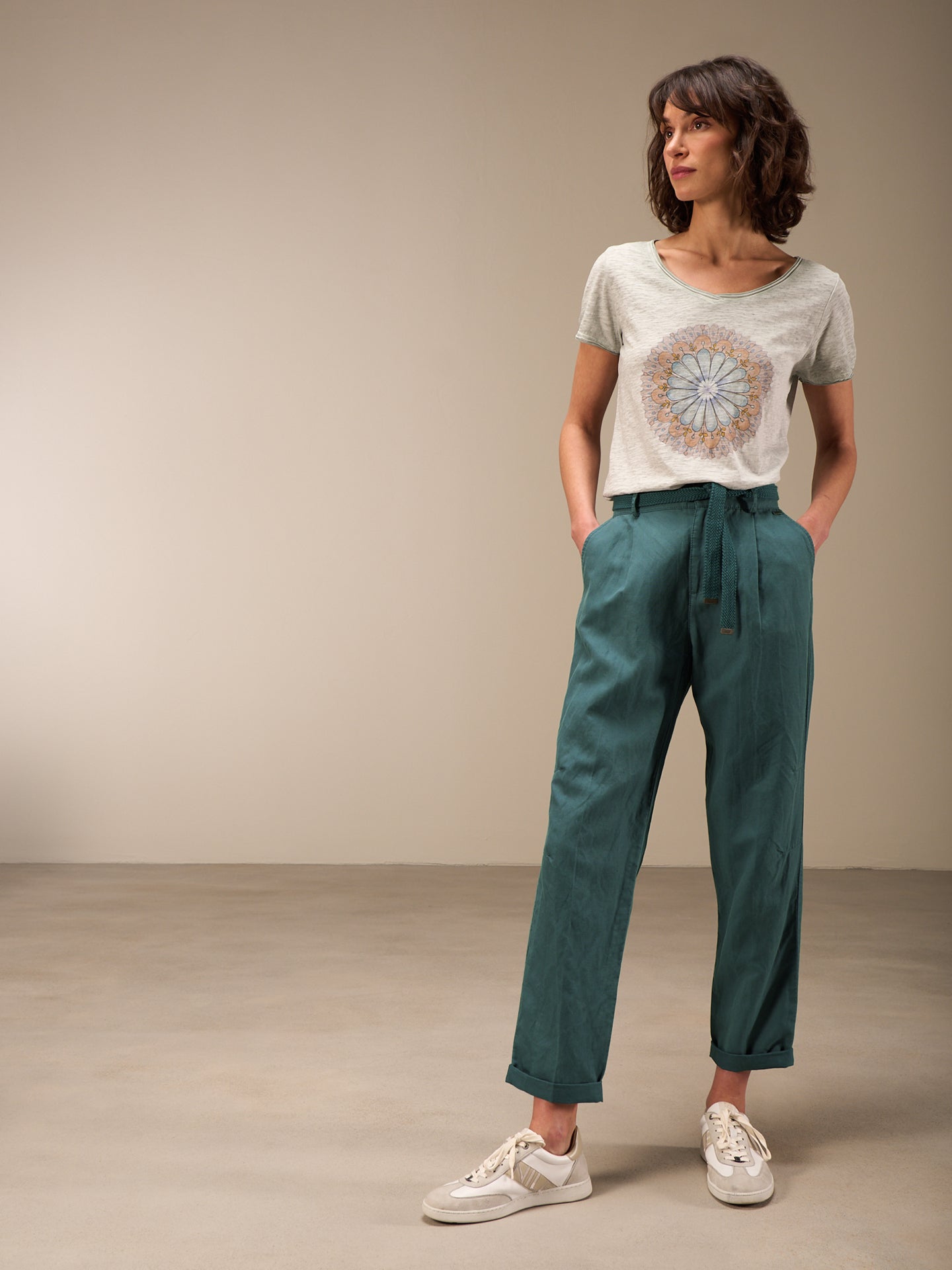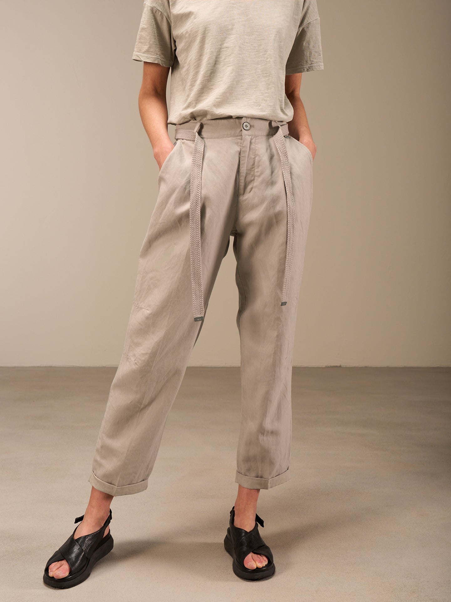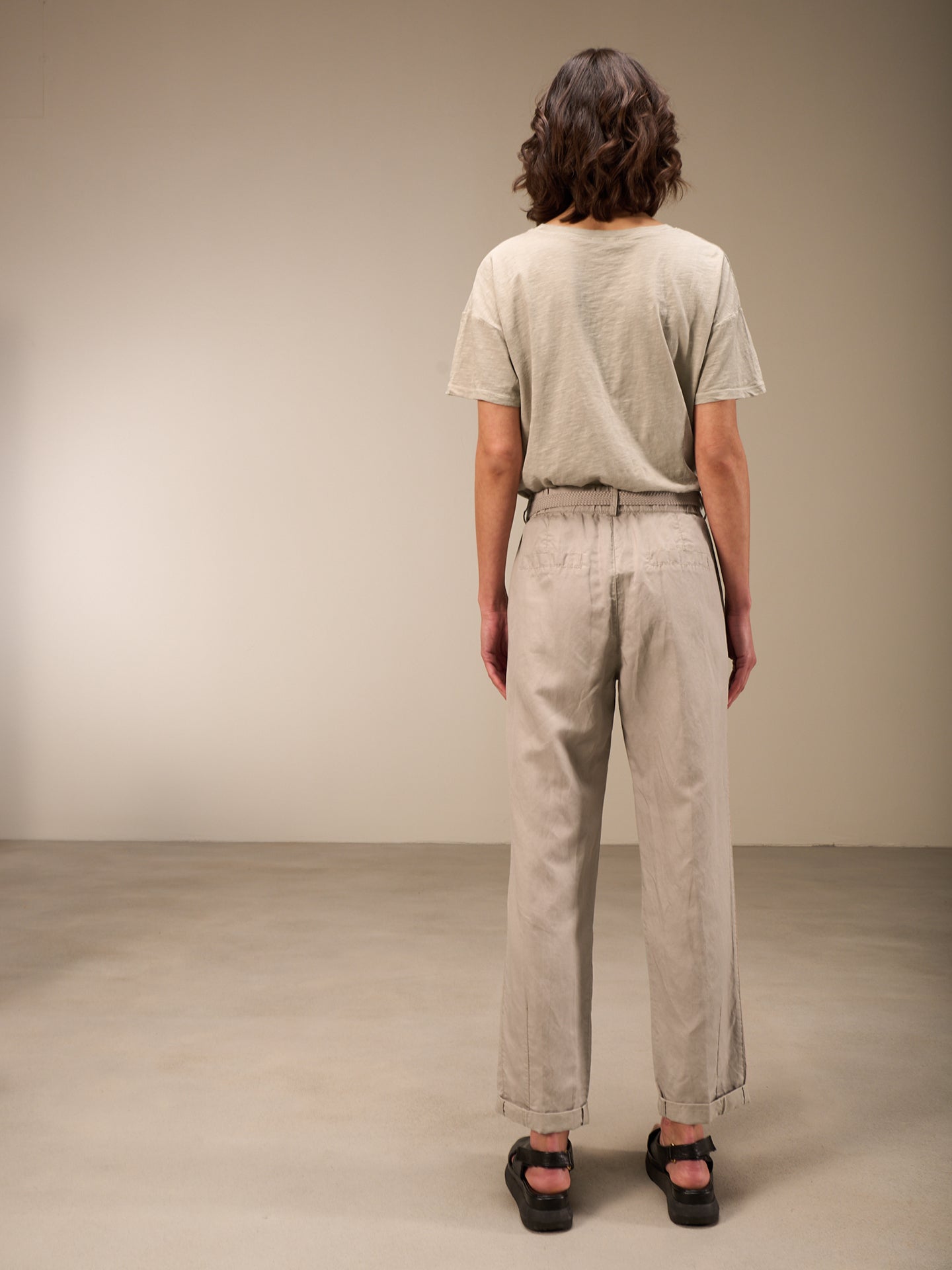 Lässige Hose mit Elastikbund hinten für eine bequeme Passform. Der Stoffgürtel und die seitlichen Abnäher runden den edlen Look ab.