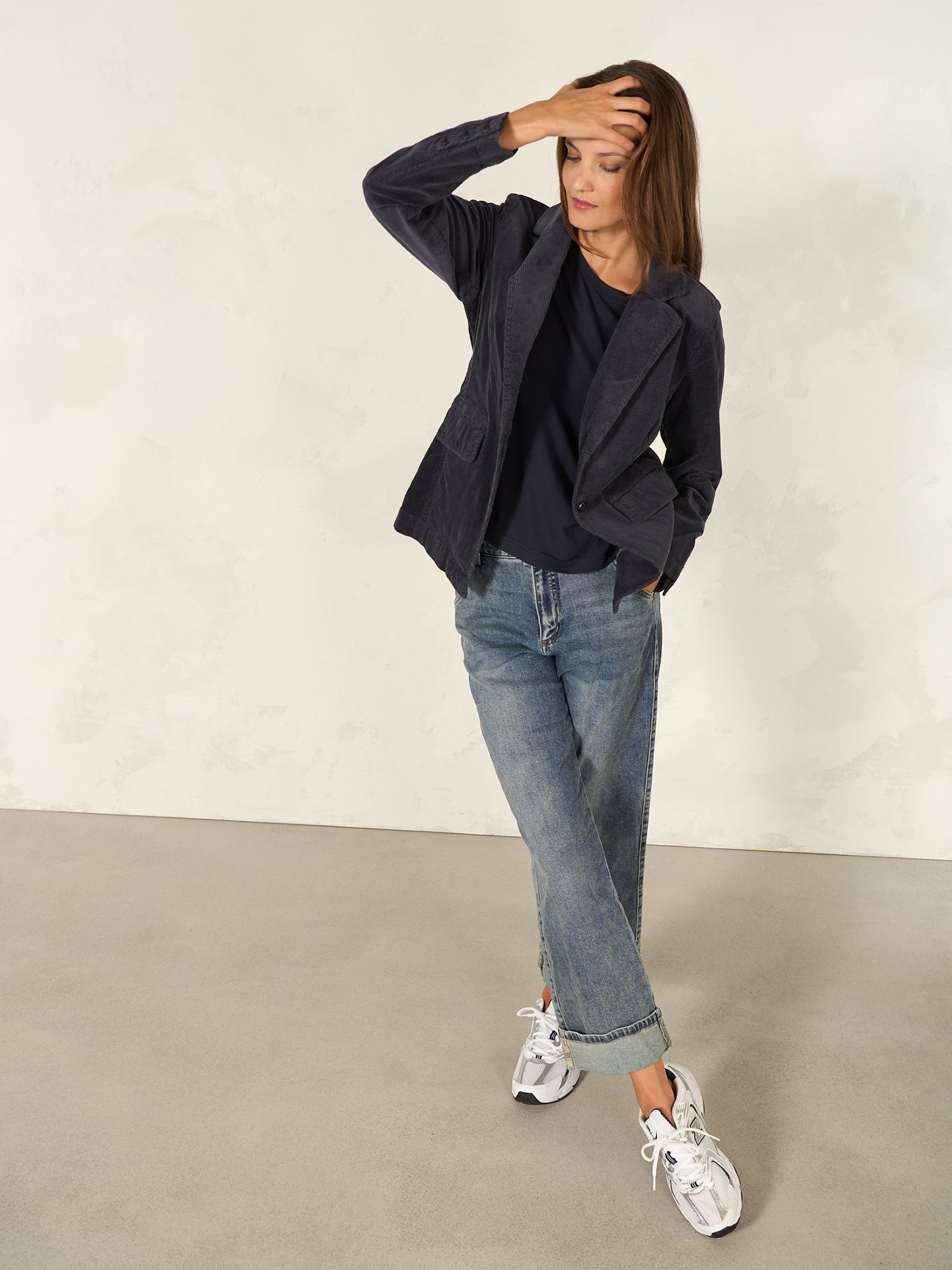 Locker geschnittener super bequemer Blazer mit Reverskragen und Paspeltschen in samtartigem Längsrippen-Cord mit weichem Griff.