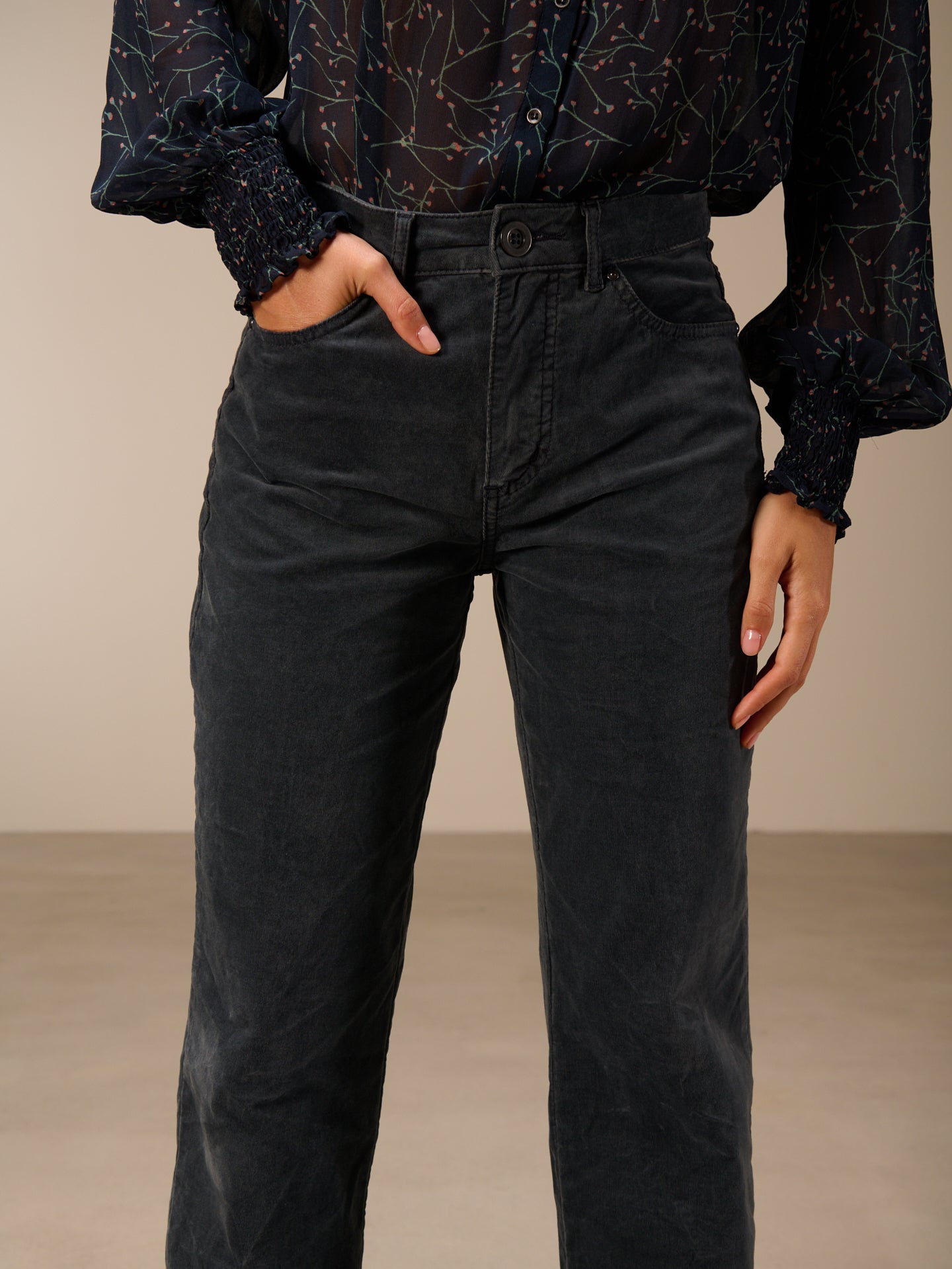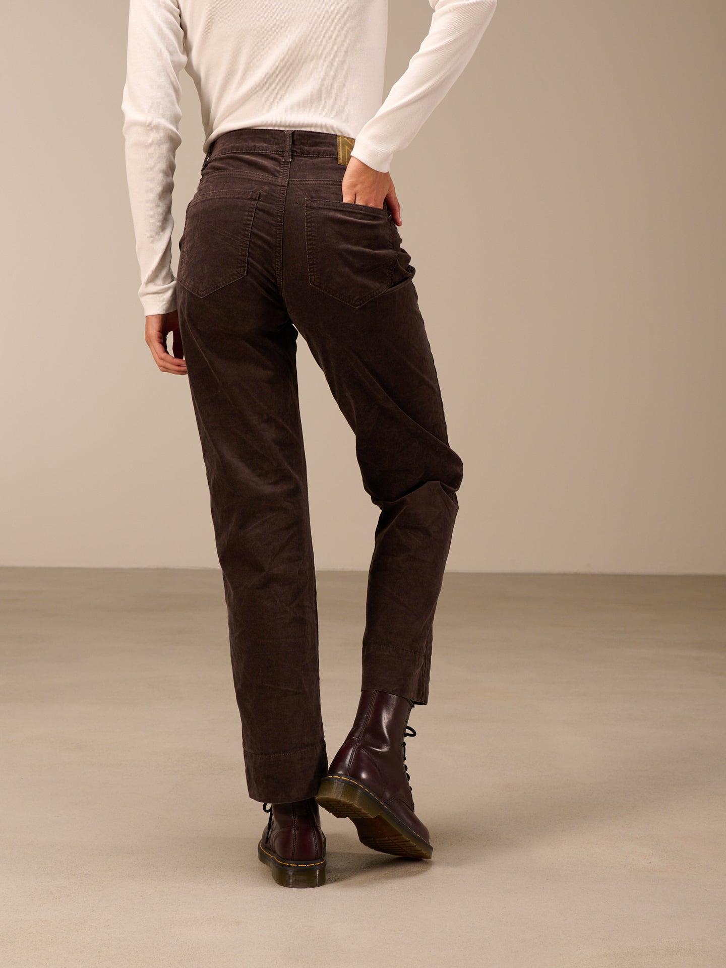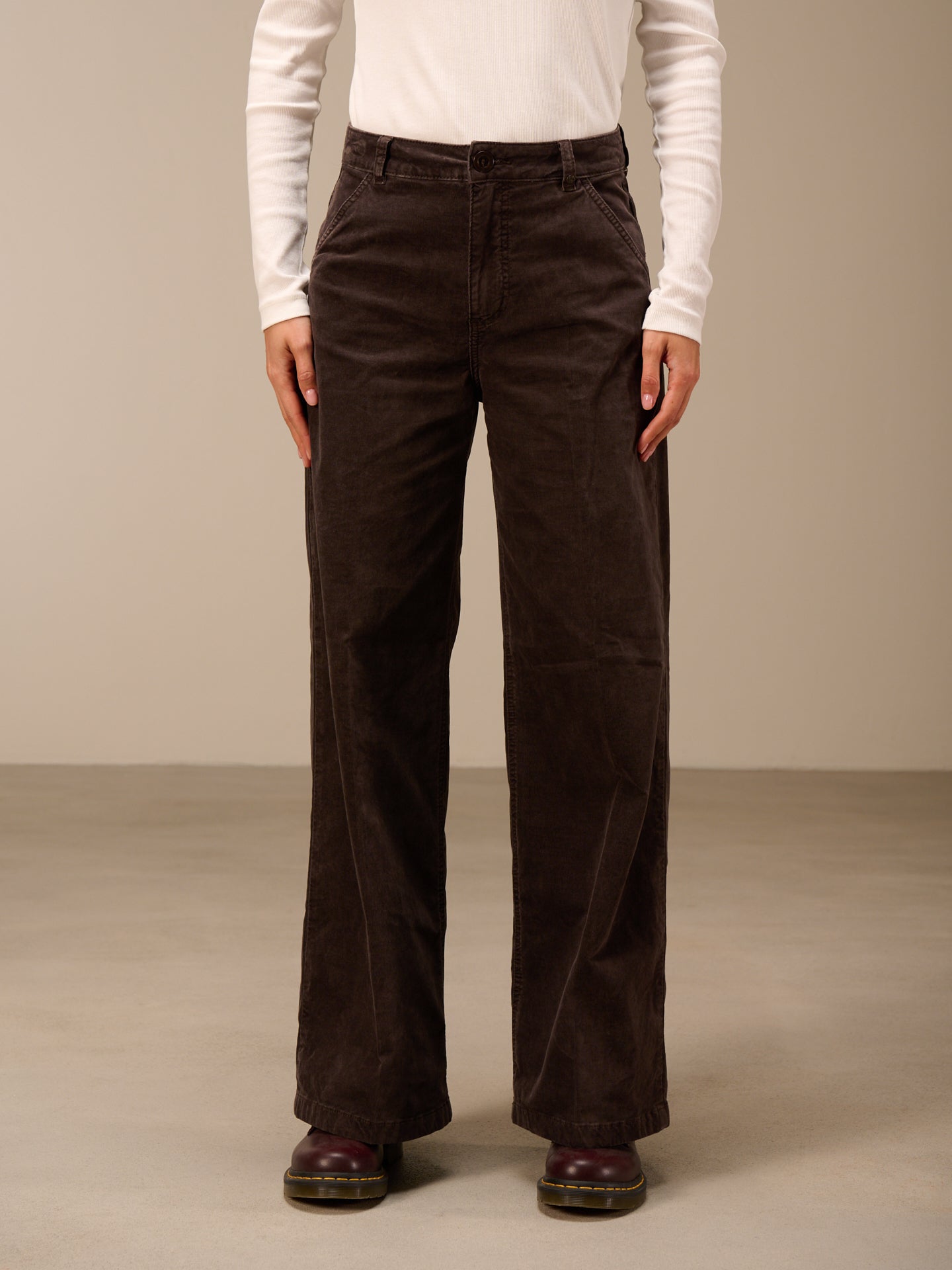 Hose mit geradem Bein mit breitem Saumaufschlag und einem mittelhohen Bund. Die Hose ist stückgefärbt, was zu Unregelmässigkeiten in der Farbe führt, den Ausbleicheffekt verstärkt und das Stück einzigartig macht.