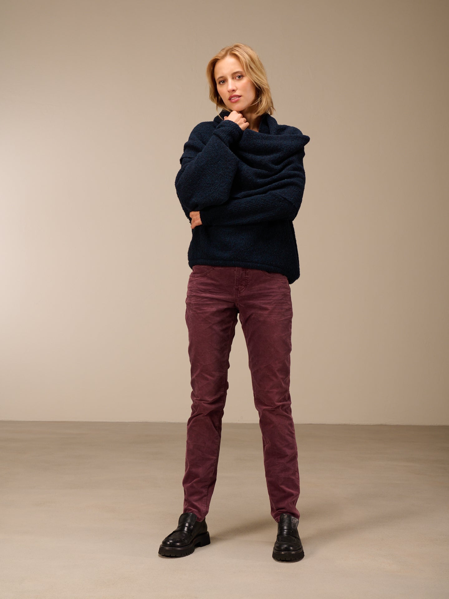 Hose mit lässigem Sitz an den Hüften. Die Hosenbeine werden zum Knöchel hin enger und sind für den coolen Look hochgekrempelt. Die Hose ist stückgefärbt, was zu Unregelmässigkeiten in der Farbe führt, den Ausbleicheffekt verstärkt und das Stück einzigartig macht.