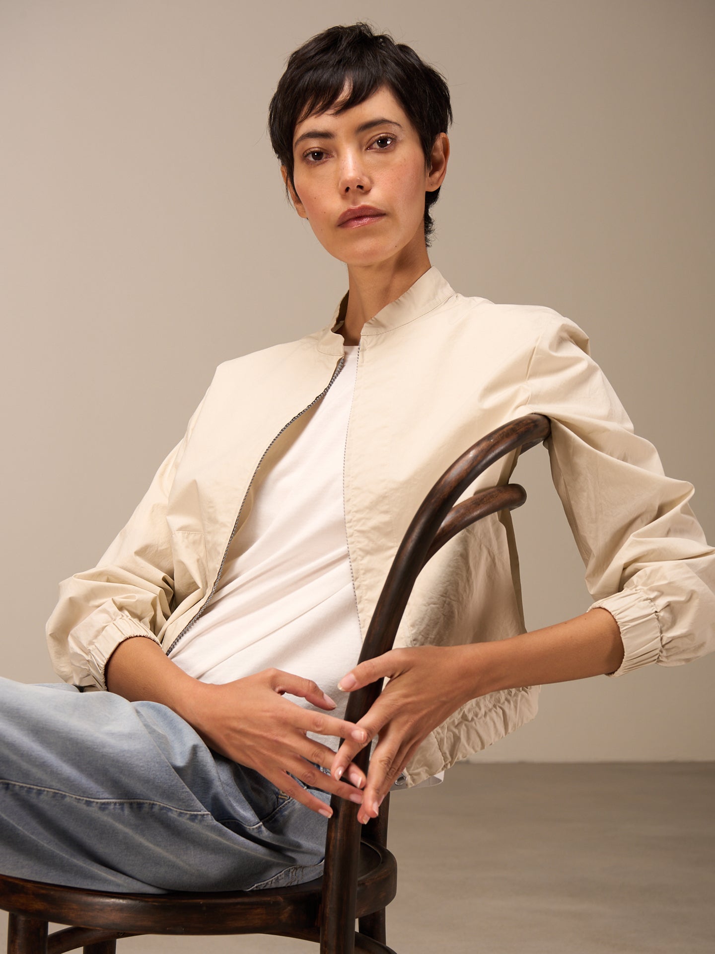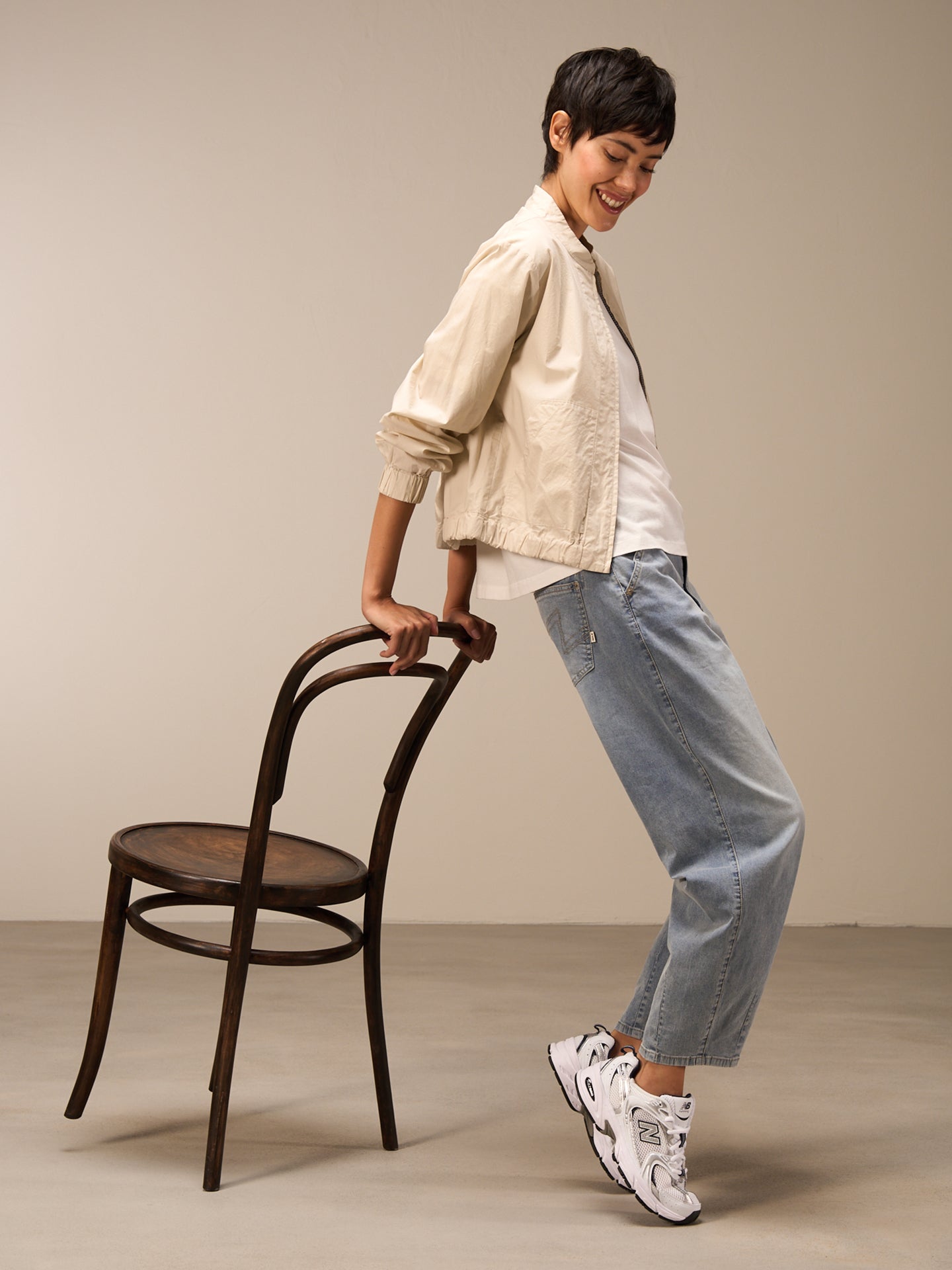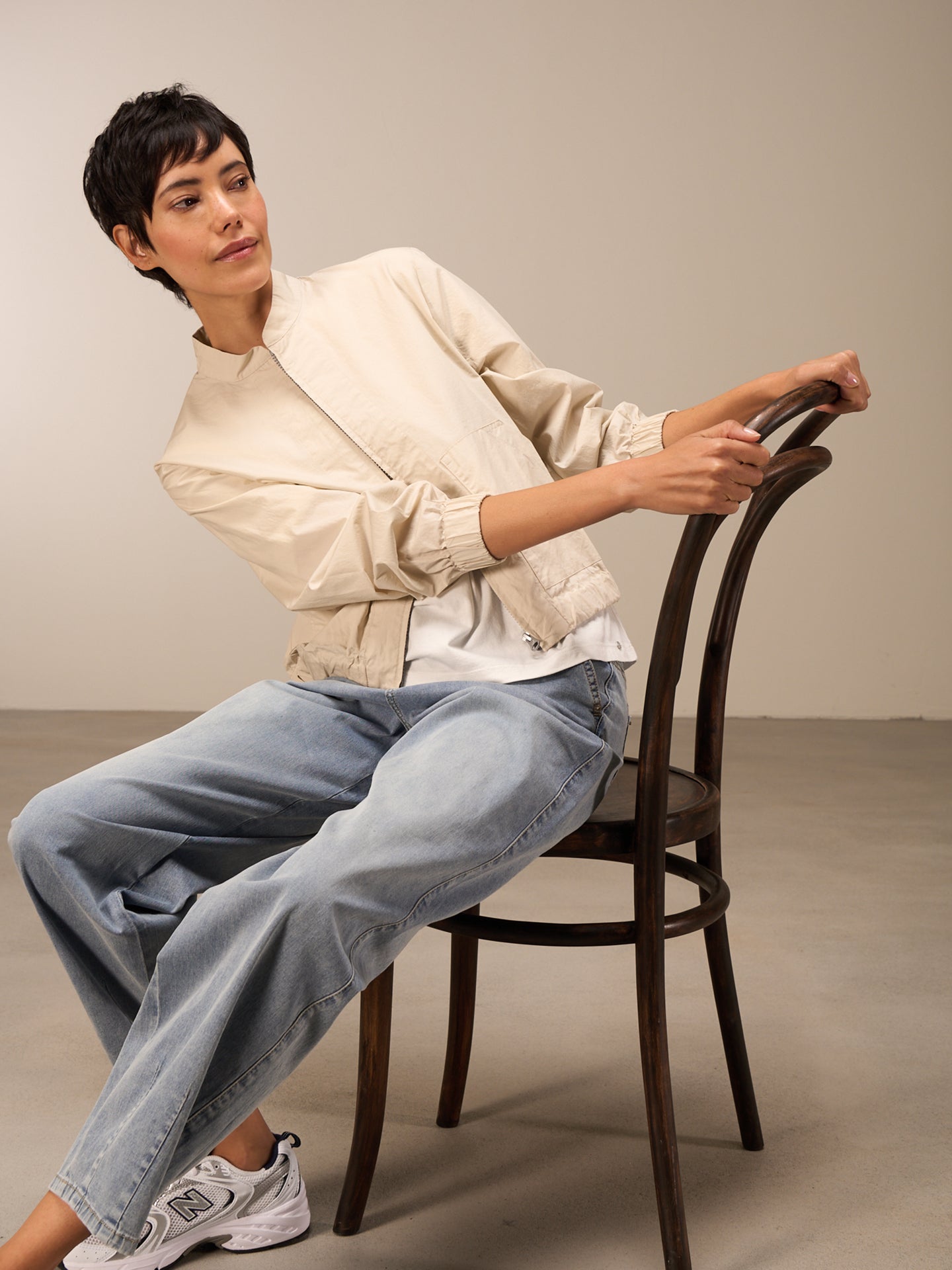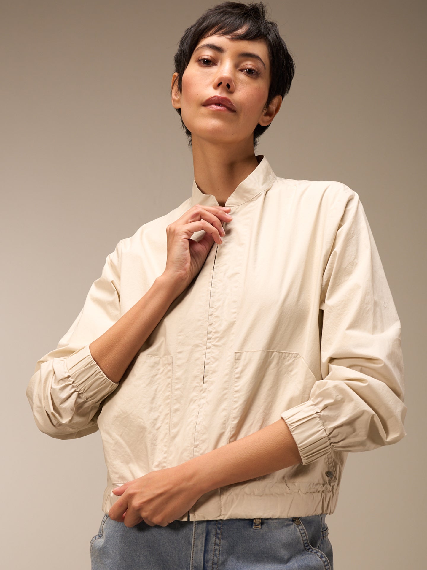 Leichte sportliche Sommerjacke in angesagter Blousonform mit Stehkragen und aufgesetzten Taschen in 100% Bio-Baumwolle aus zertifiziertem Anbau mit einem sommerlich papierigen Touch. Der Bund kann durch das eingearbeitete Baumwollband in der Weite reguliert werden.