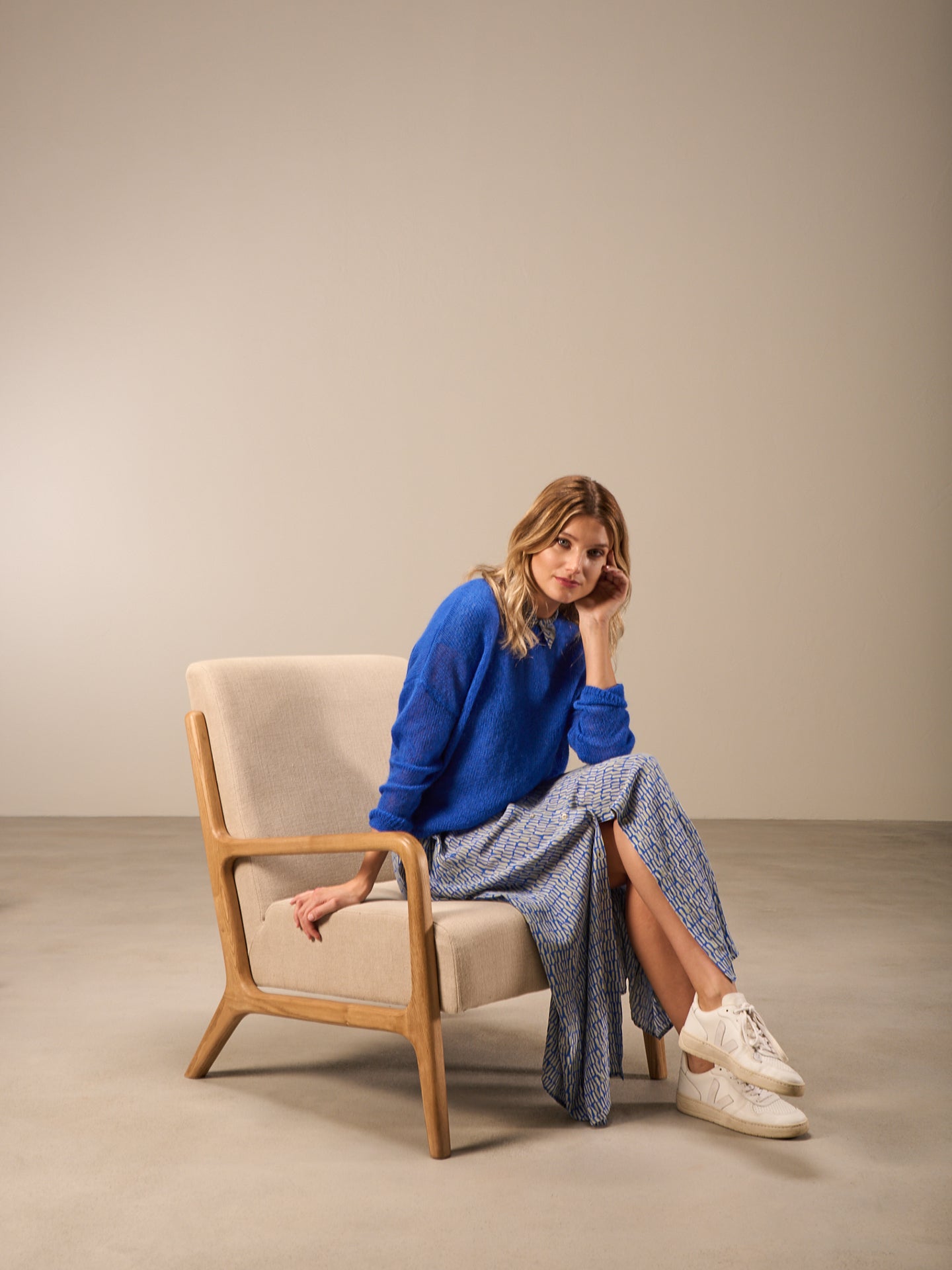 Langes durchgeknöpftes Kleid mit Hemdkragen in körpernaher Passform im oberen Teil, der Jupe ist leicht ausgestellt. Dieses Kleid mit den praktischen seitlichen Taschen ist herrlich luftig an sommerlichen Tage zu tragen. Aus 100% blickdichter, weich fliessender und sommertauglicher Eco Viskose, die aus nachhaltiger Holzwirtschaft gewonnen wird.