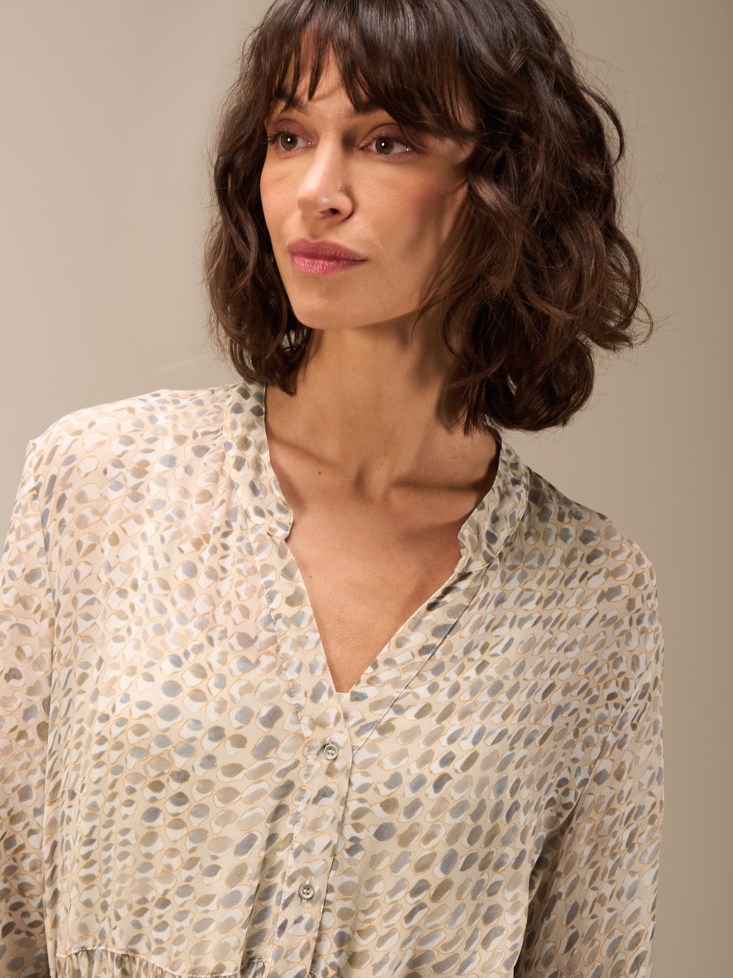 Midilanges durchgeknöpftes Kleid mit langem Arm und separatem Unterkleid. Dieses Kleid mit den praktischen seitlichen Taschen ist herrlich luftig für sommerliche Tage.