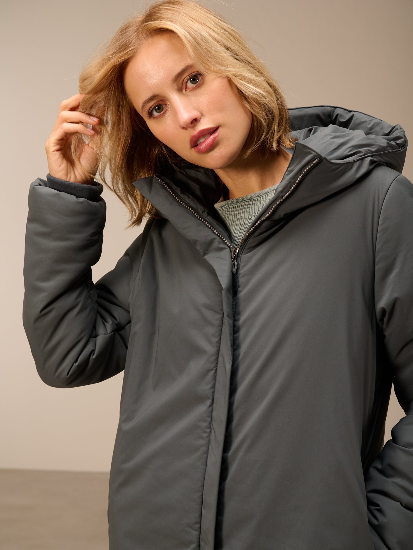 Moderner Outdoor Mantel mit praktischer Kapuze, Taschen mit seitlichem Eingriff und einer wasserabweisenden Oberfläche. Die angesagte No-Down-Qualität mit softer Füllung ist ultraleicht und trotzdem wärmend. Die Wattierung aus ThermoPlume® von PrimaLoft® ist unsere Alternative zur Daunenfeder und bietet ein hohes Wärmerückhaltevermögen, ist feuchtigkeitsbeständig und hat einen weichen, federnden Griff.
