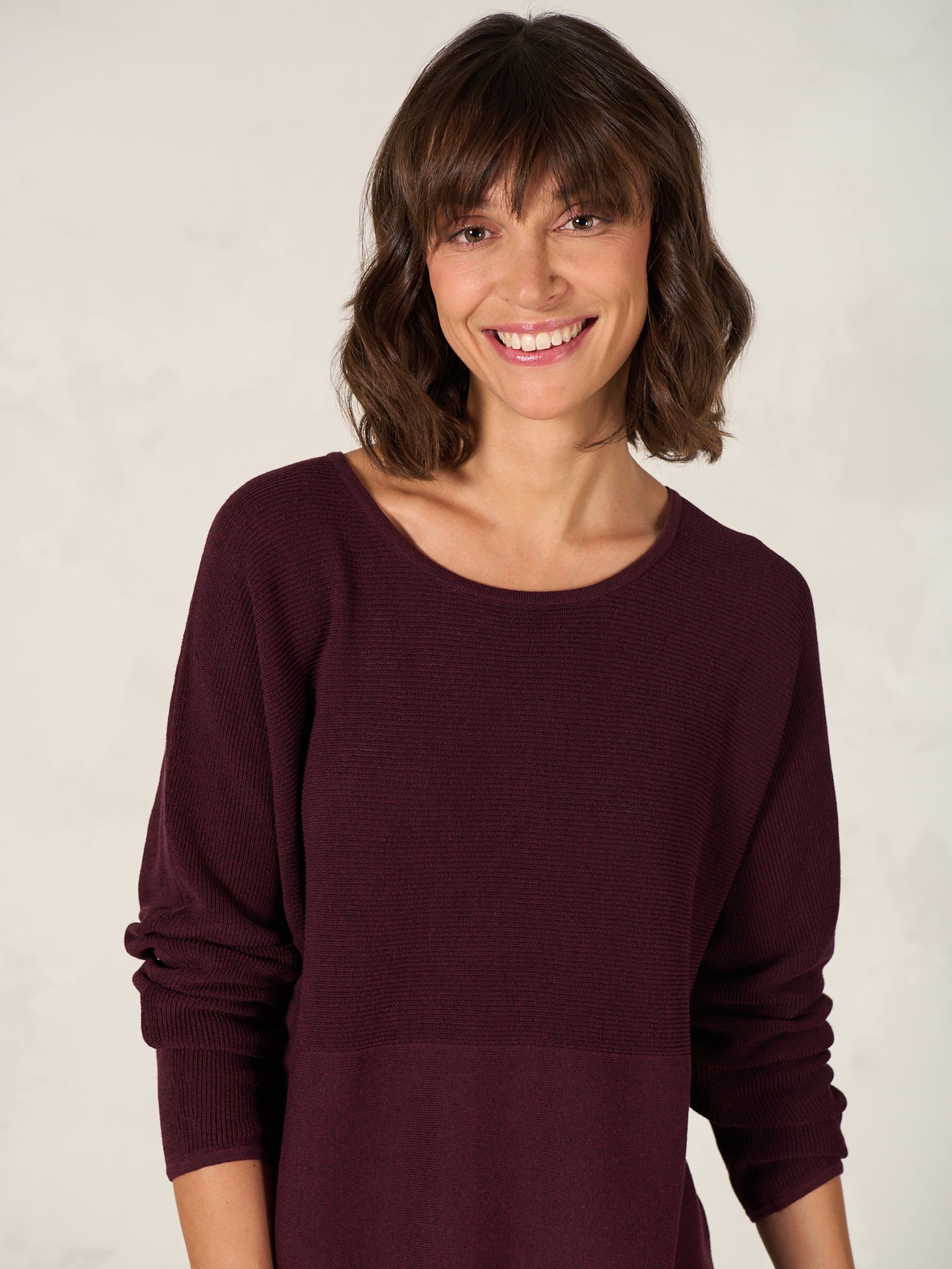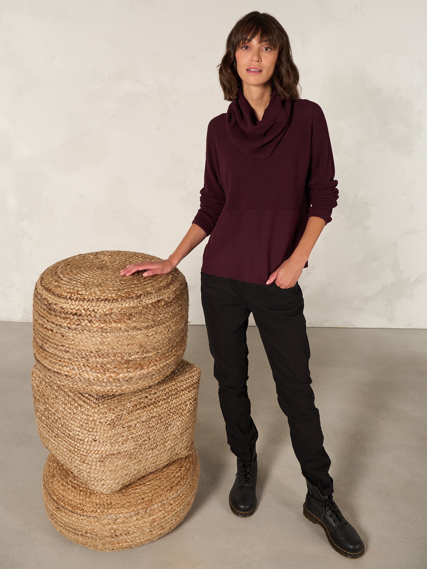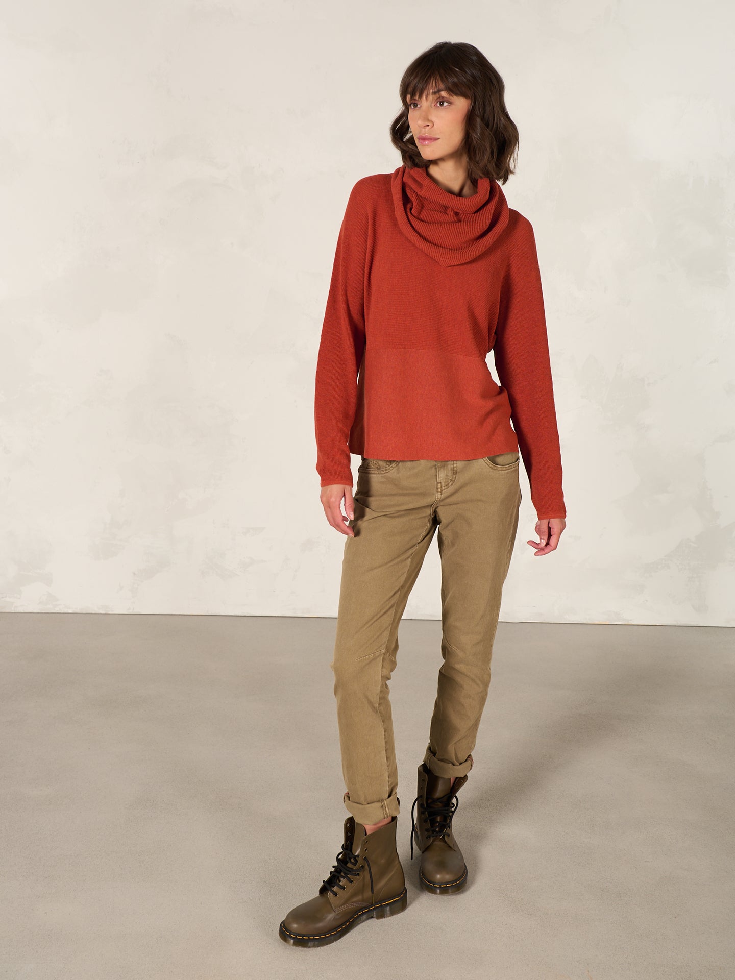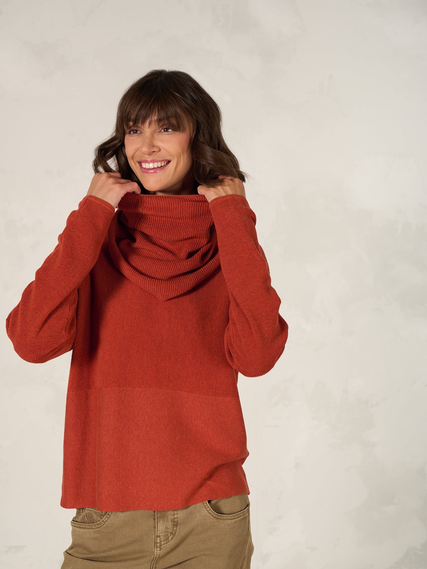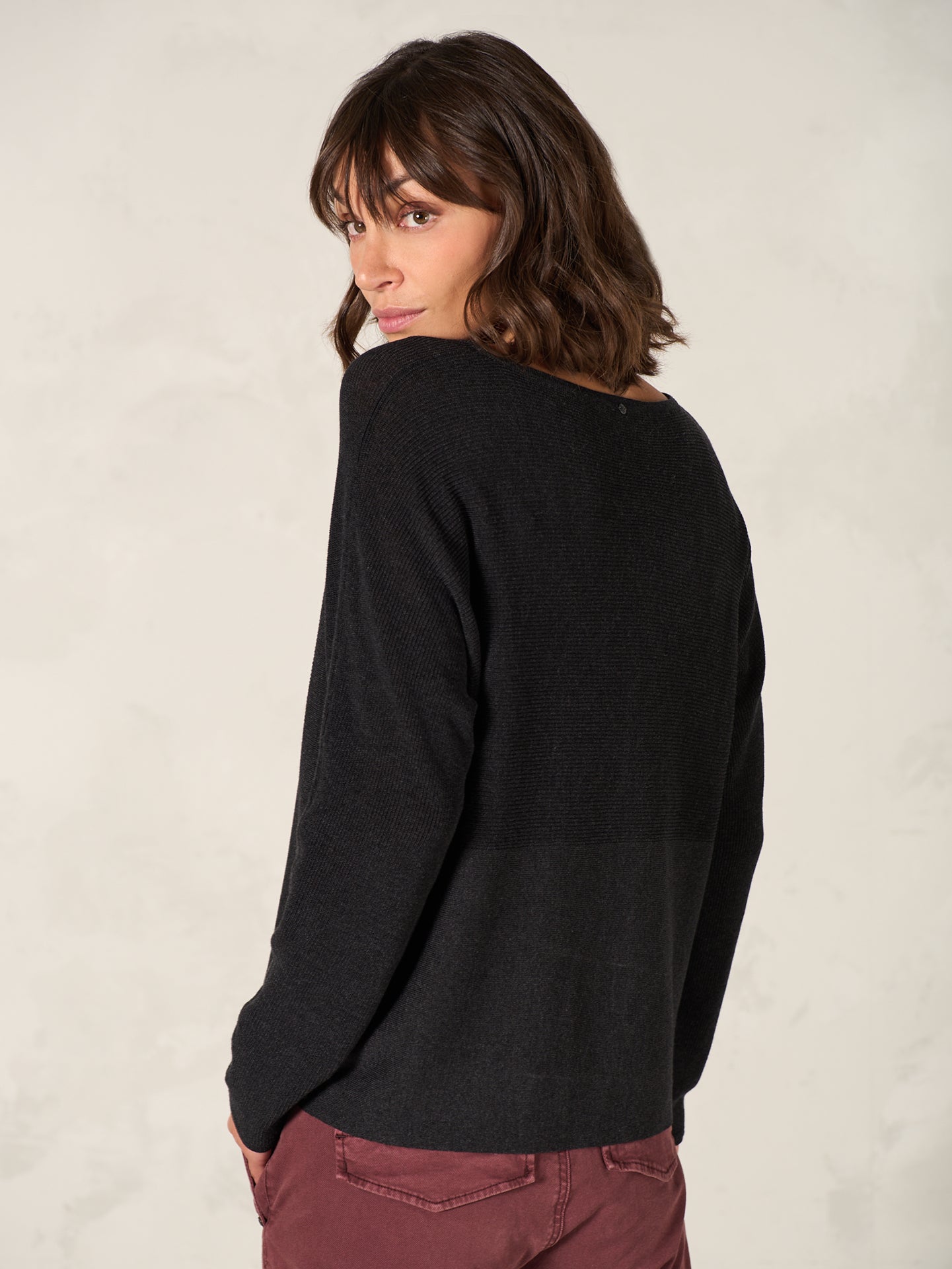 Leichter Pullover mit spannendem Strickmustermix, angeschnittenem Fledermausärmel und separatem Kragen. 60% Bio-Baumwolle aus zertifiziertem Anbau und 40% recyceltes Polyester.