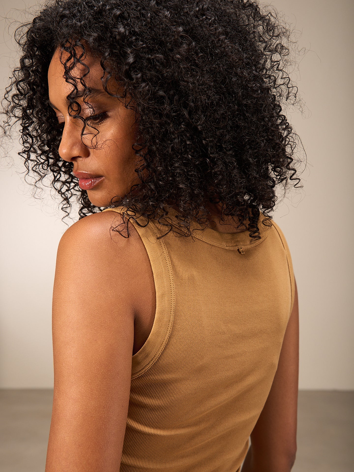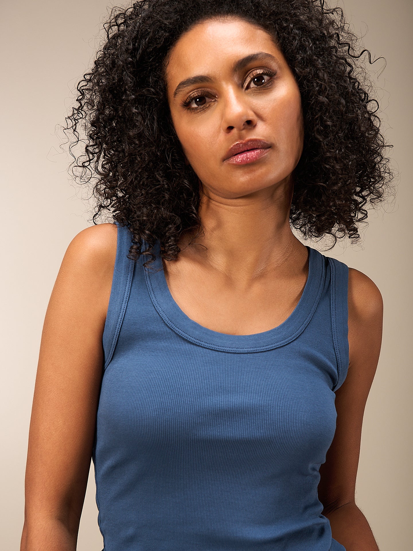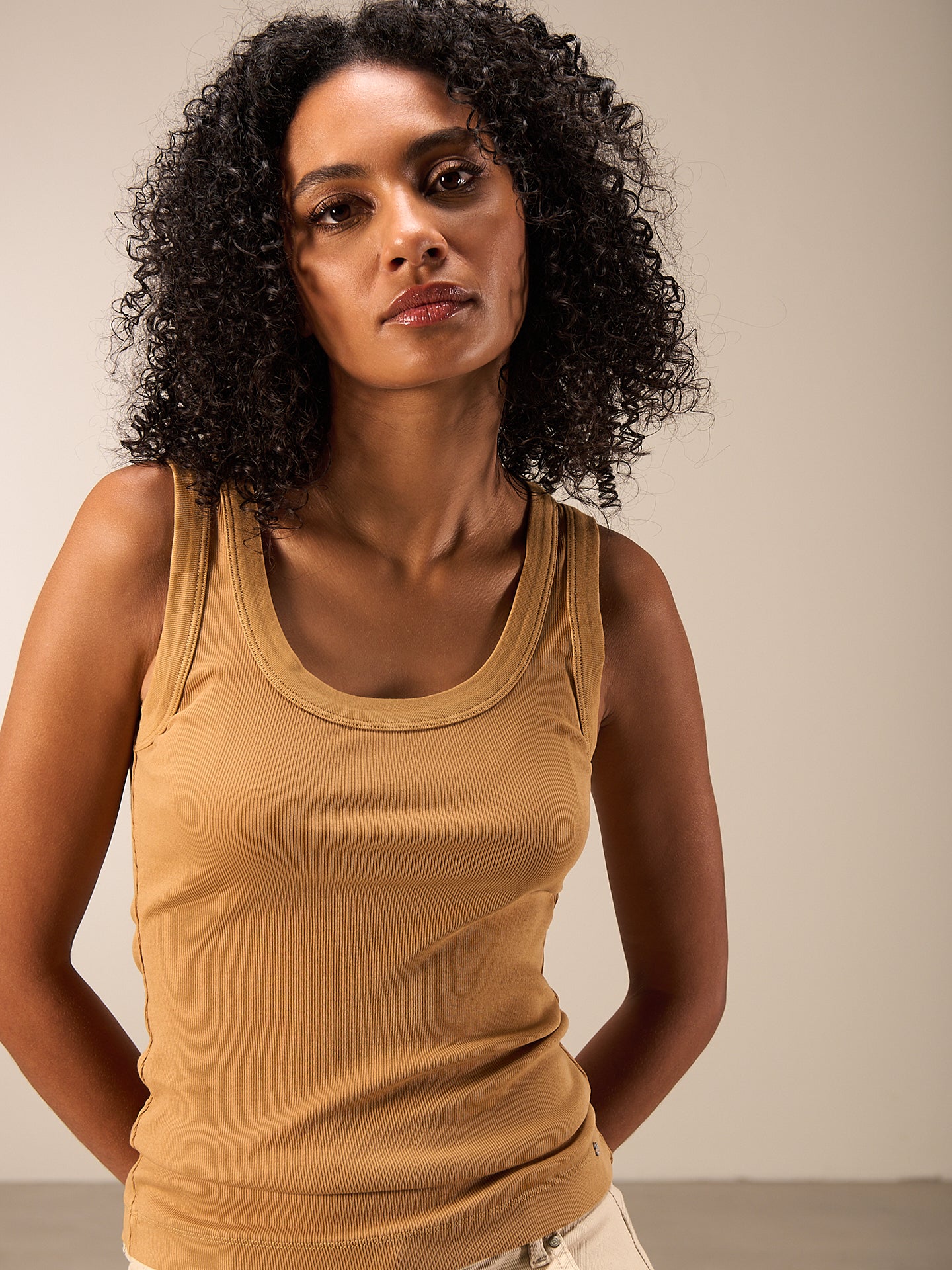 Figurbetontes Top mit Rundhalsausschnitt in weicher Rippqualität. Stückgefärbt. 94% GOTS-zertifizierte Bio-Baumwollqualität und 6% Elasthan.