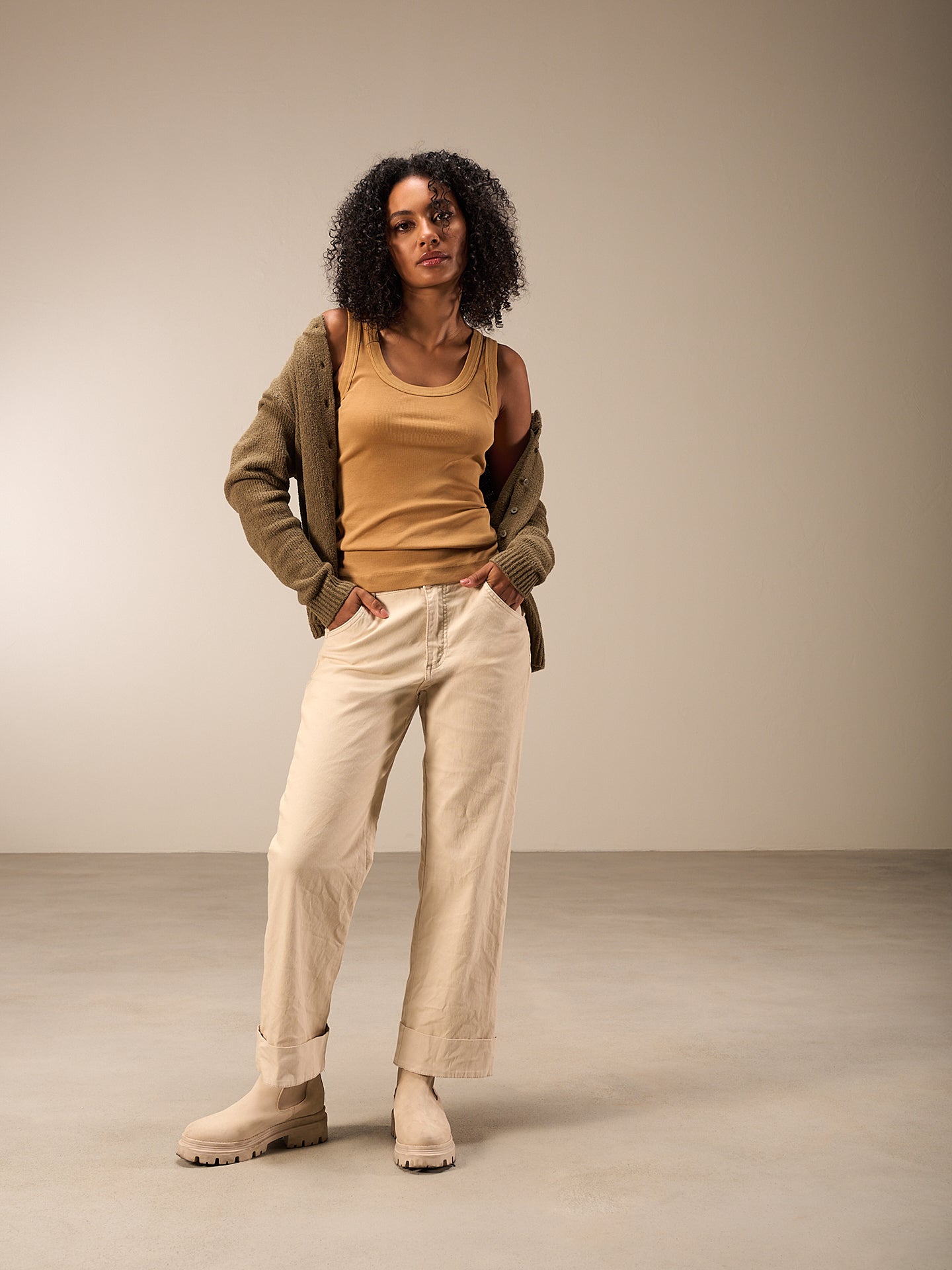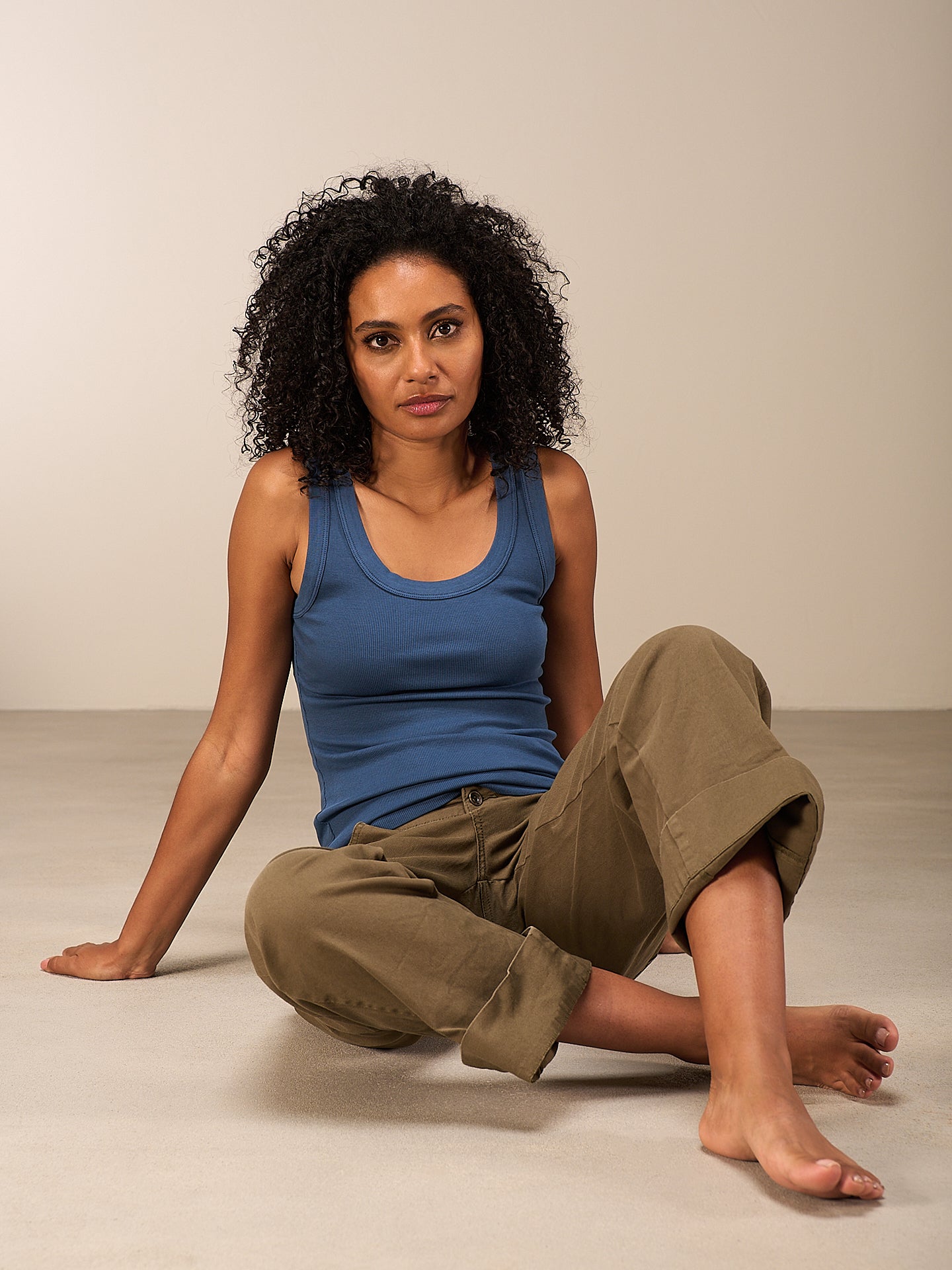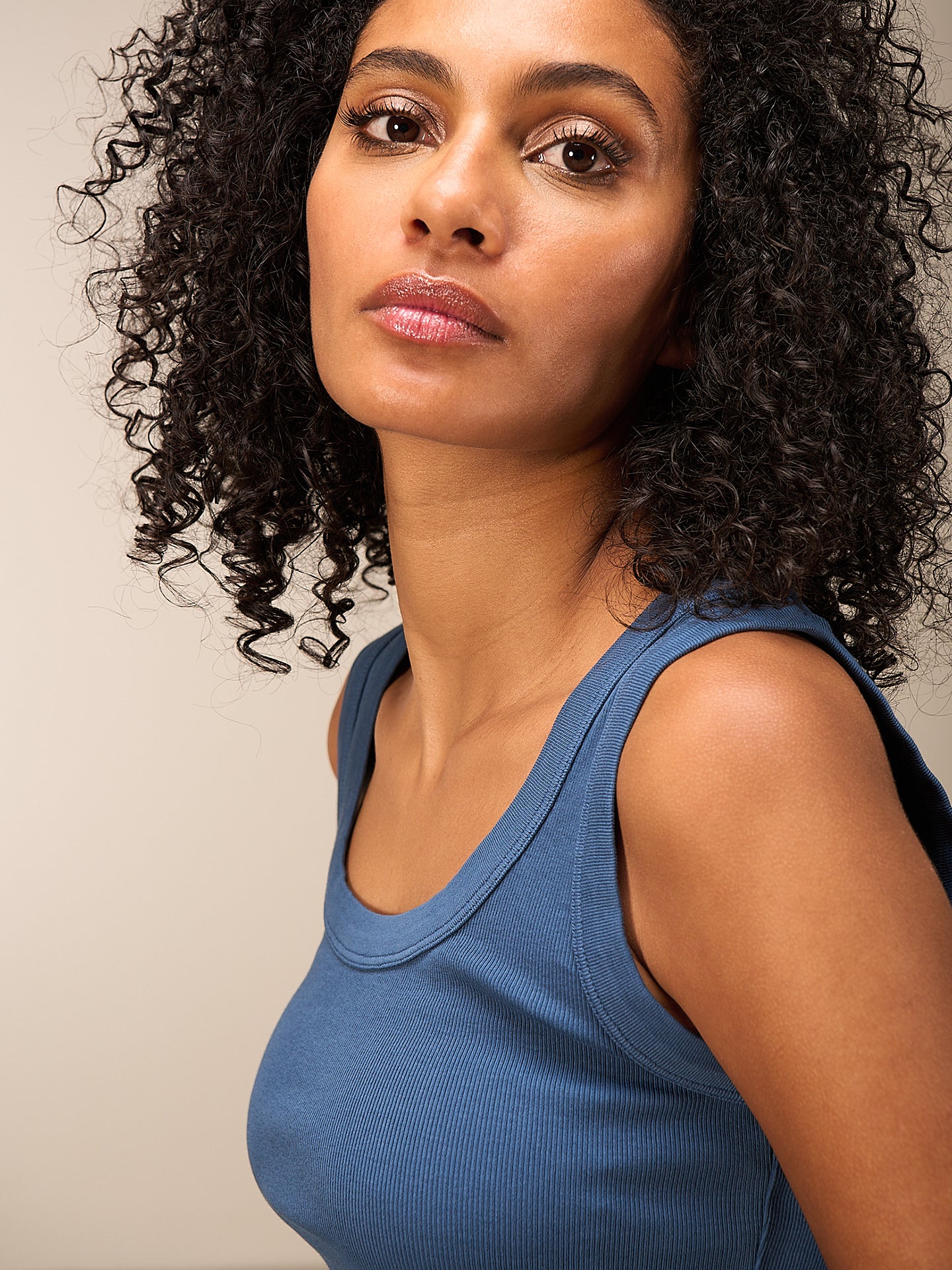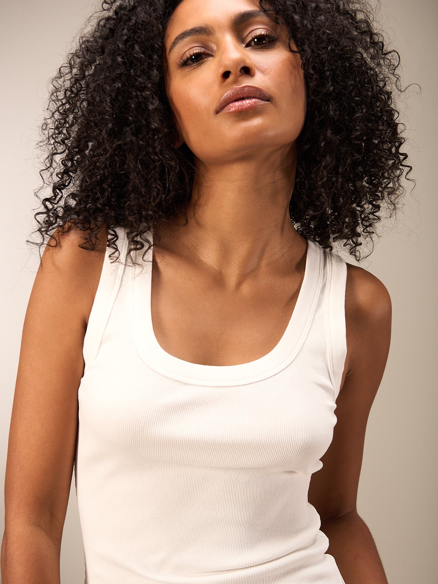 Figurbetontes Top mit Rundhalsausschnitt in weicher Rippqualität. Stückgefärbt. 94% GOTS-zertifizierte Bio-Baumwollqualität und 6% Elasthan.