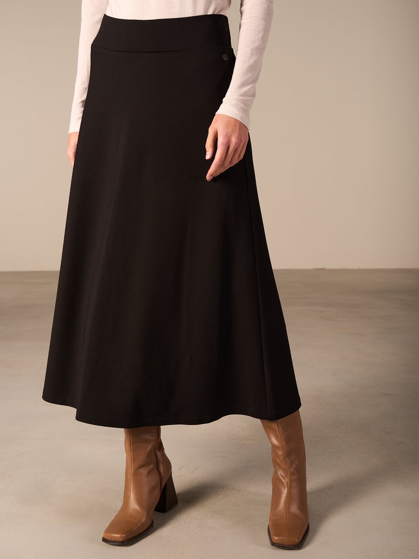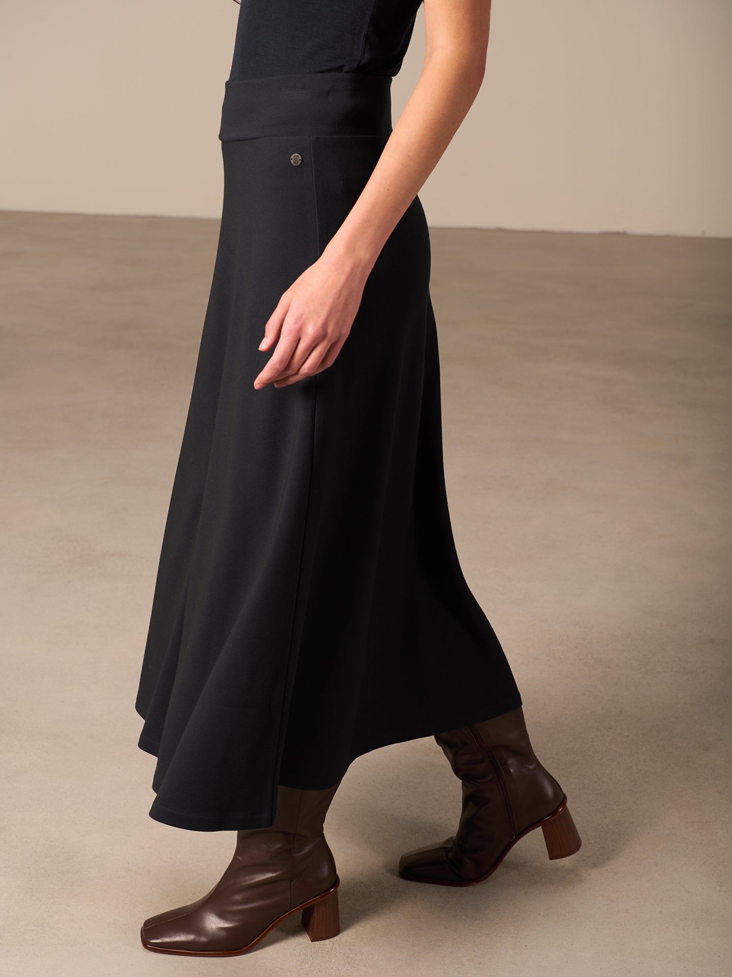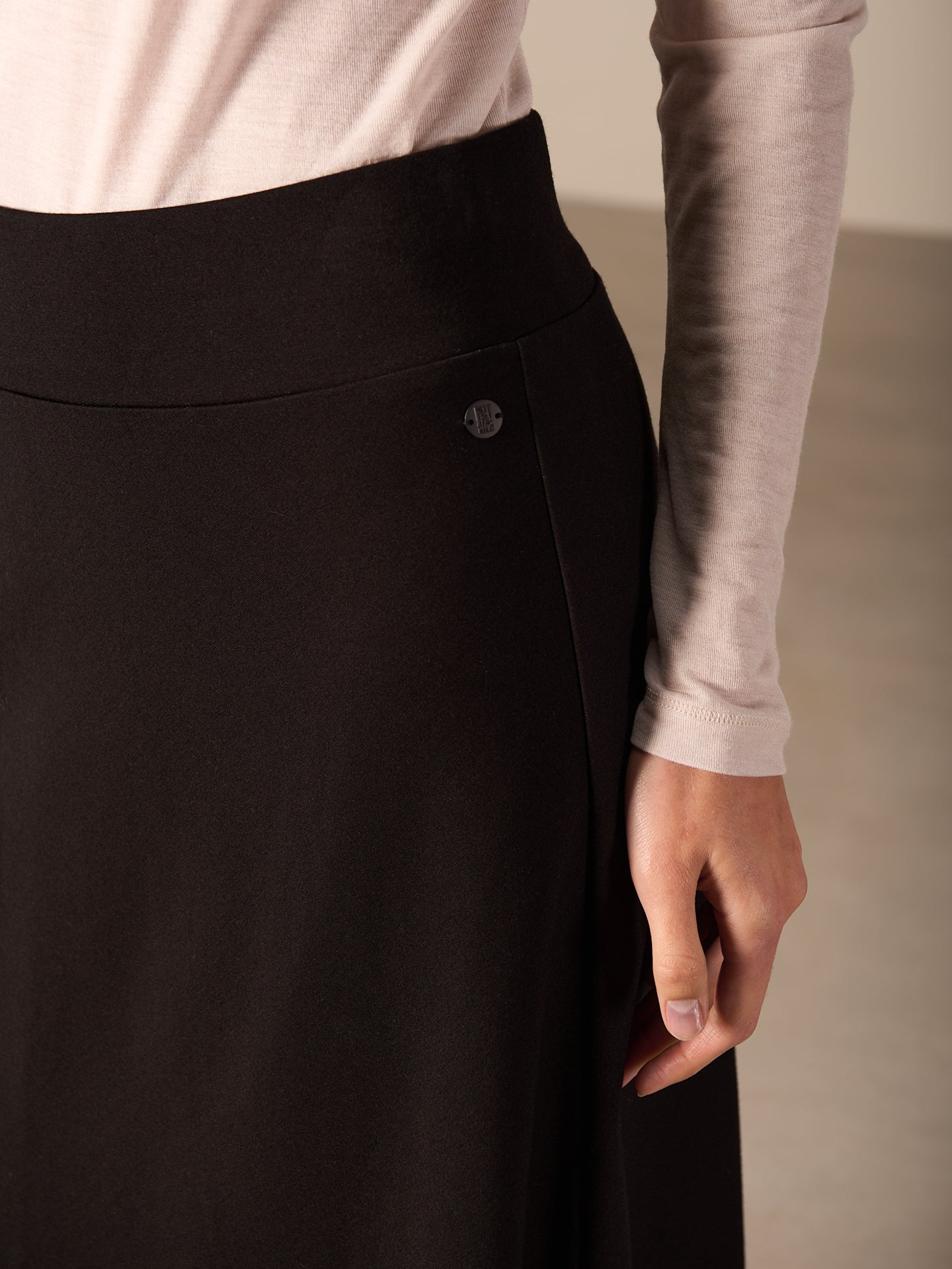 Langer Jupe mit weitem Saum aus edel fallendem Jersey Stoff.