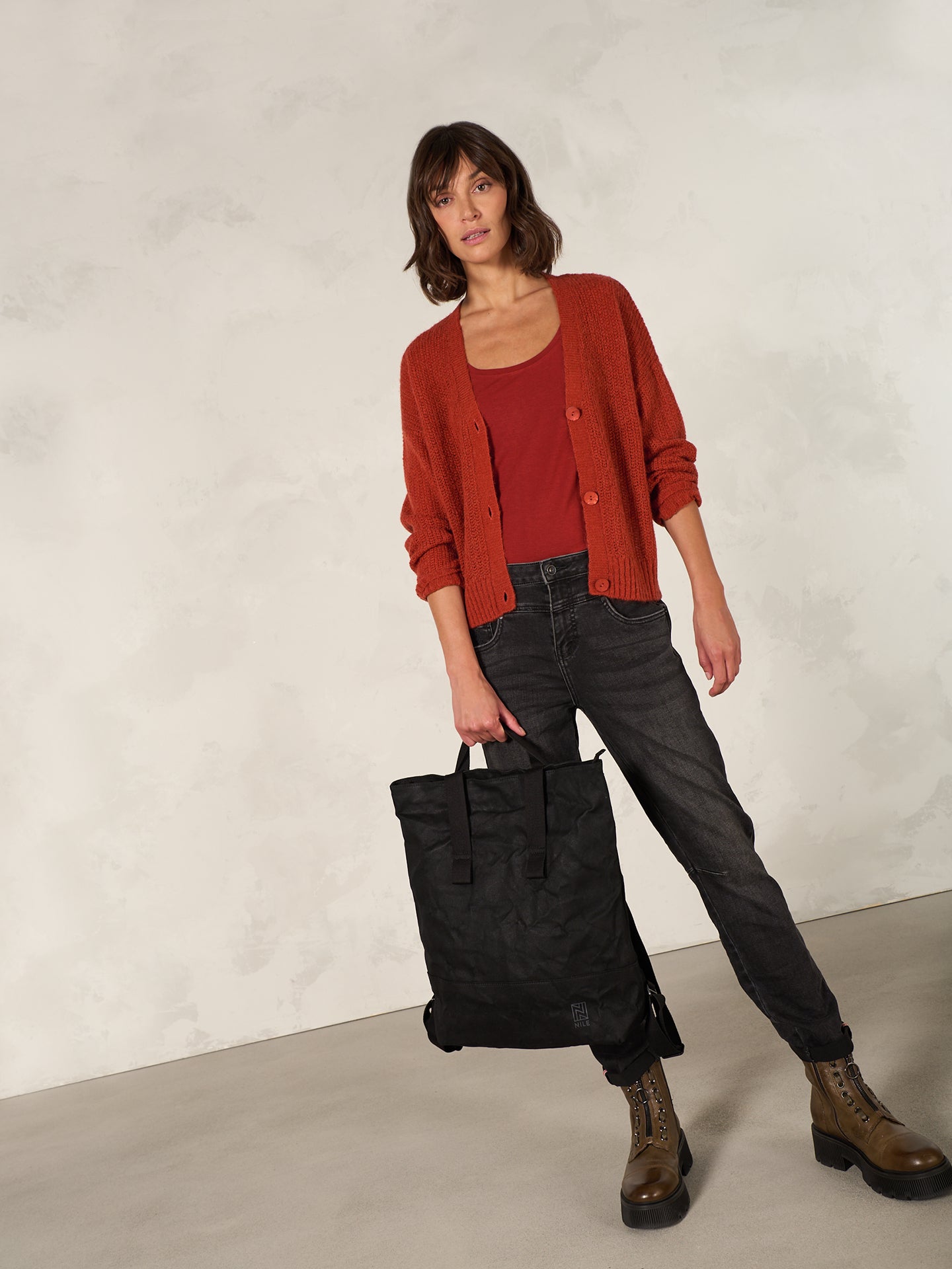 Lässiger Begleiter für Arbeit und Alltag mit einem Laptopfach und diversen nützlichen Innen und- Aussenfächern und Funktionen. Kann durch die kurzen Henkel auch als Tasche getragen werden. Aus 100% Baumwolle mit einer Beschichtung aus Bienenwachs. Dieses Produkt ist wasserempfindlich.