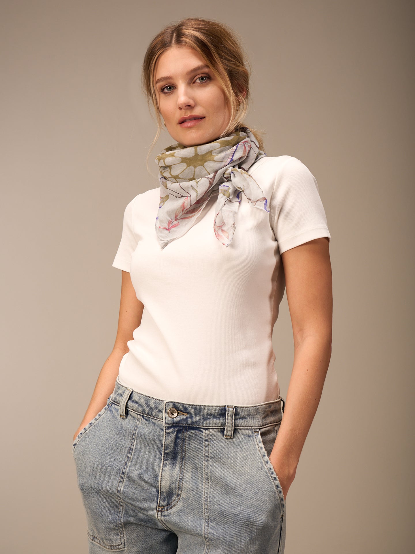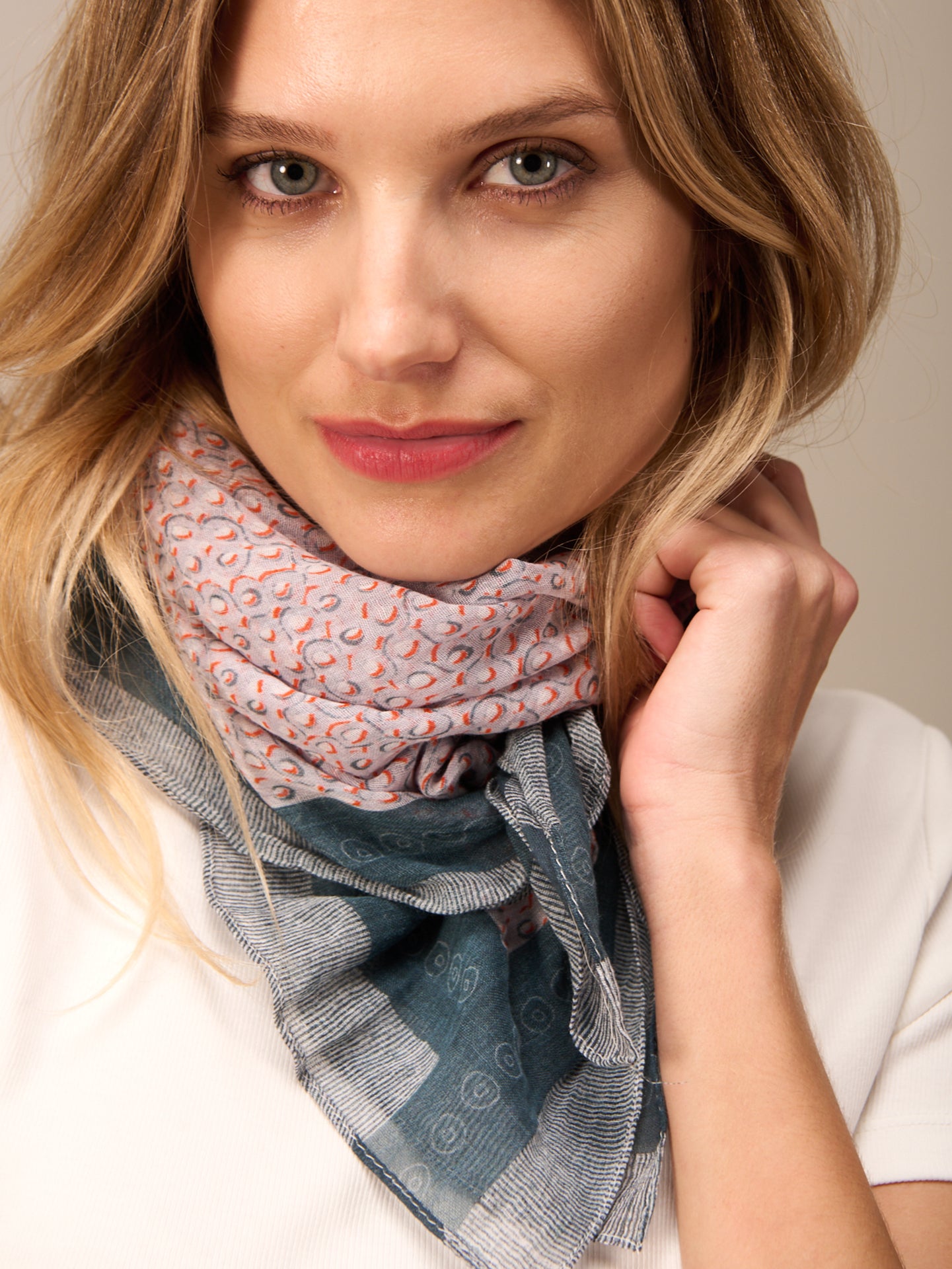 Lässiger Schal in der Grösse 90 x 90 cm wertet jedes Outfit im Nu auf und wird so zu einem Lieblingsaccessoire. Der Schal ist vollflächig bedruckt, die Kanten abgesteppt und aus 100% Bio-Baumwolle aus zertifiziertem Anbau.