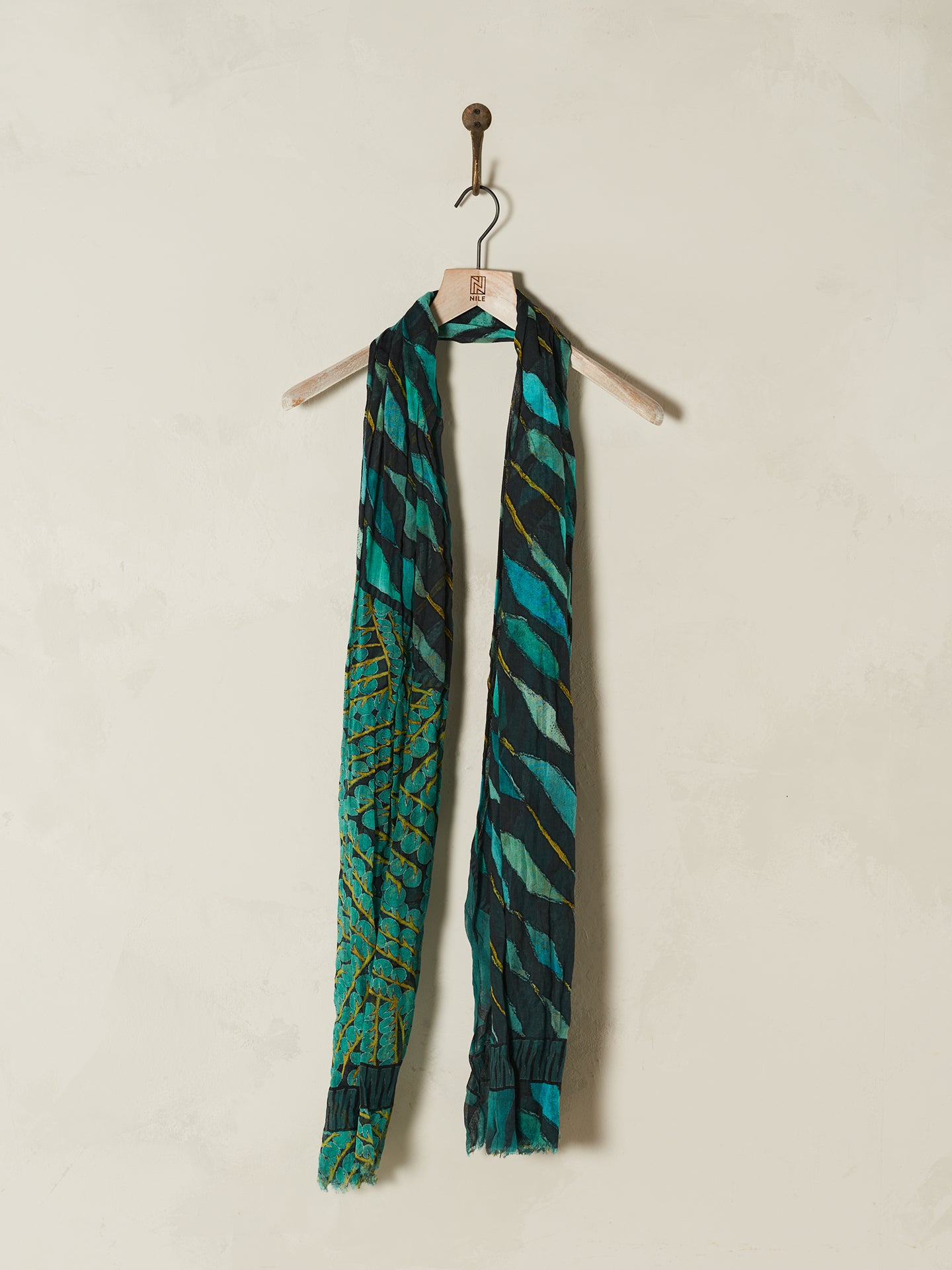 Das großzügige Format in der Grösse 100x200cm eignet sich perfekt für ein vielseitiges Styling. Lässig um Hals und Schultern drapiert wertet dieser Schal jedes Outfit im Nu auf und wird so zu einem Lieblingsaccessoire. Der Schal ist mit handgezeichneten Prints vollflächig bedruckt und hat kürzere Kanten mit Fransen 100% Bio-Baumwolle aus zertifiziertem Anbau.