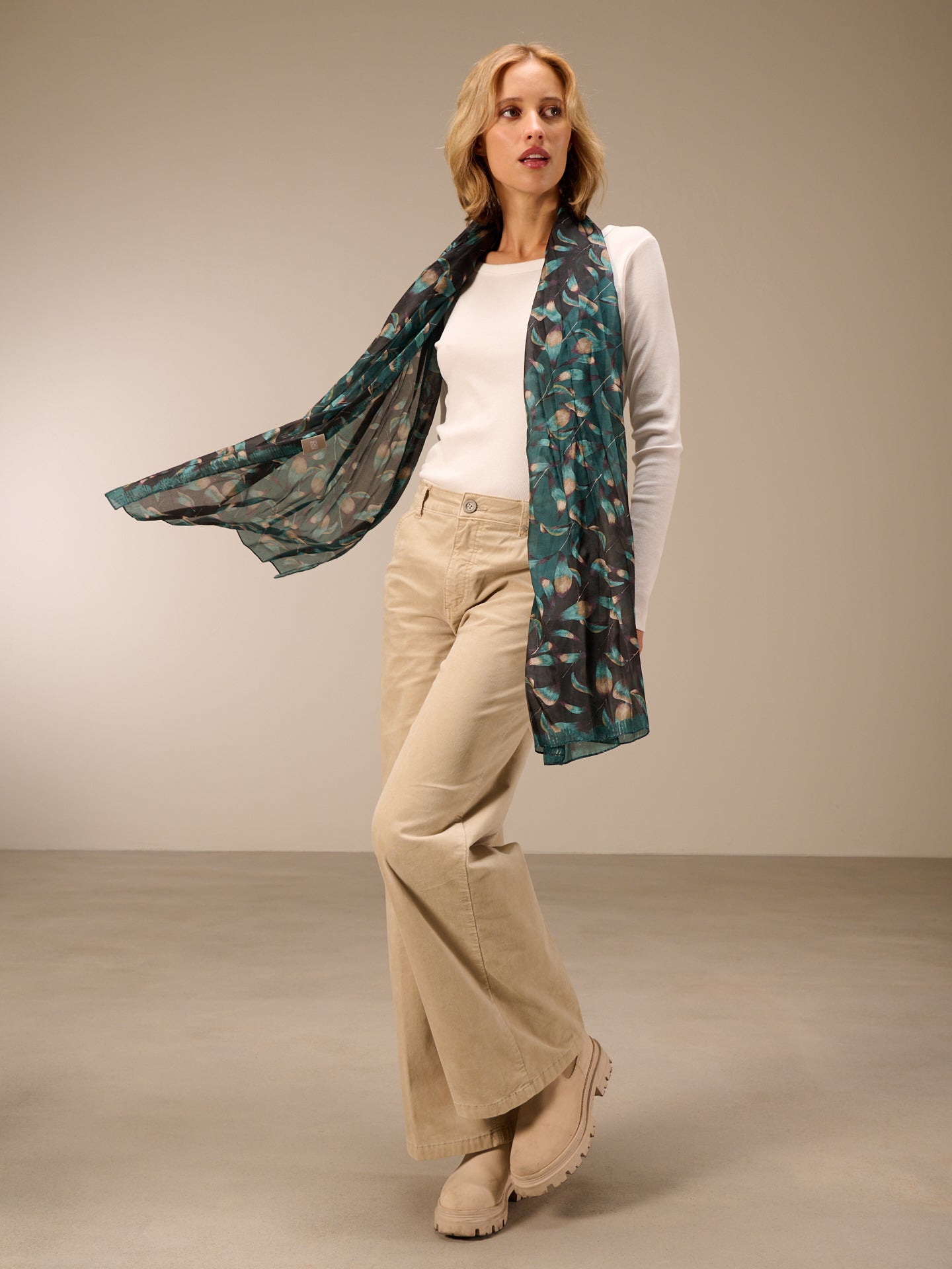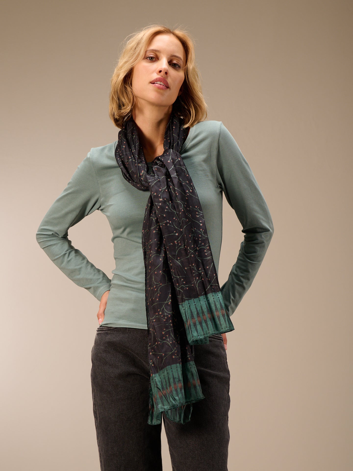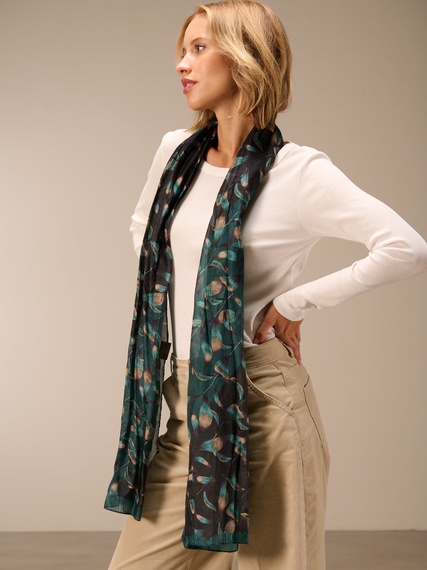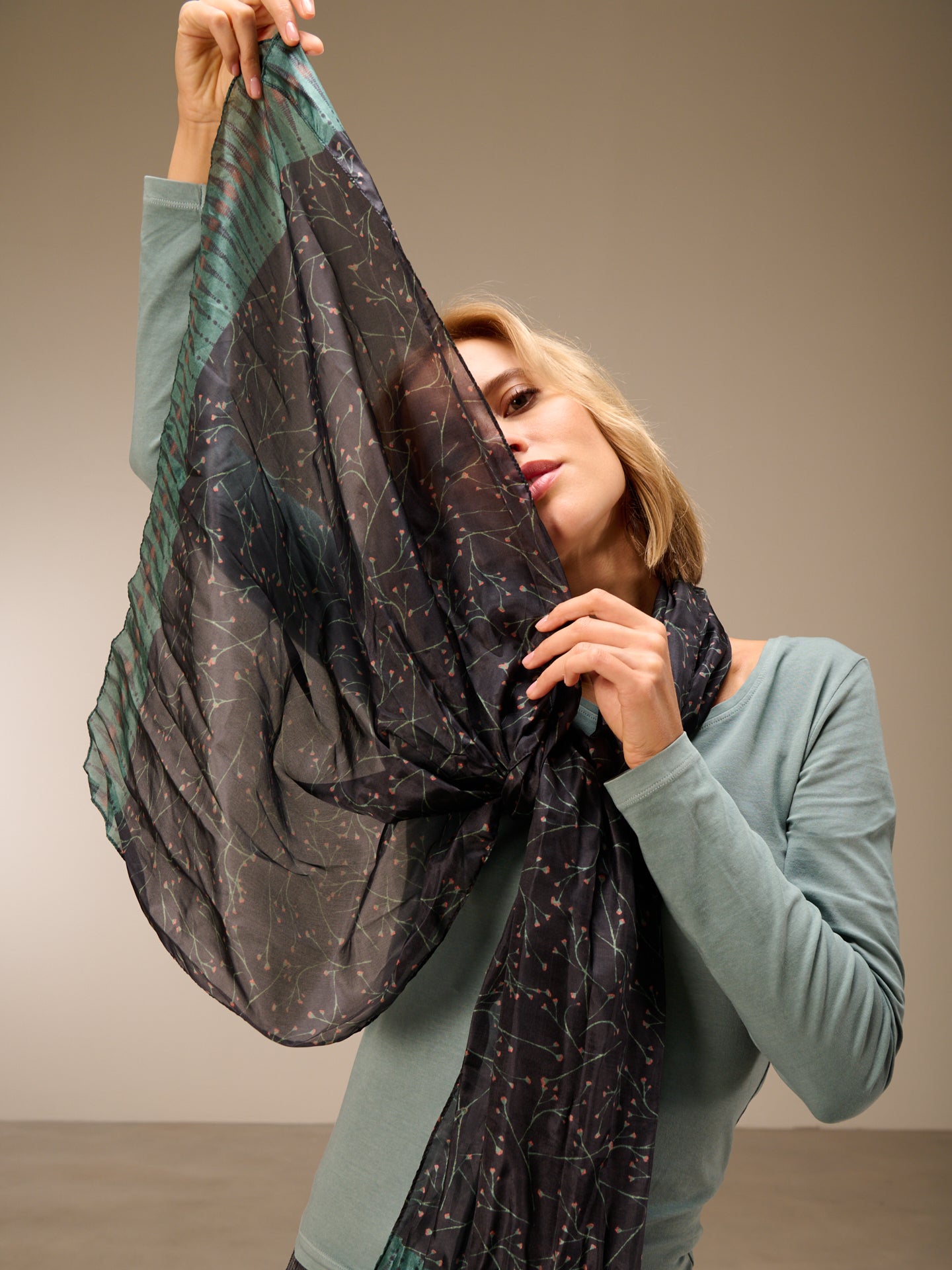 Schal mit Alloverprint in der Grösse 65x180cm. 100% Seide.