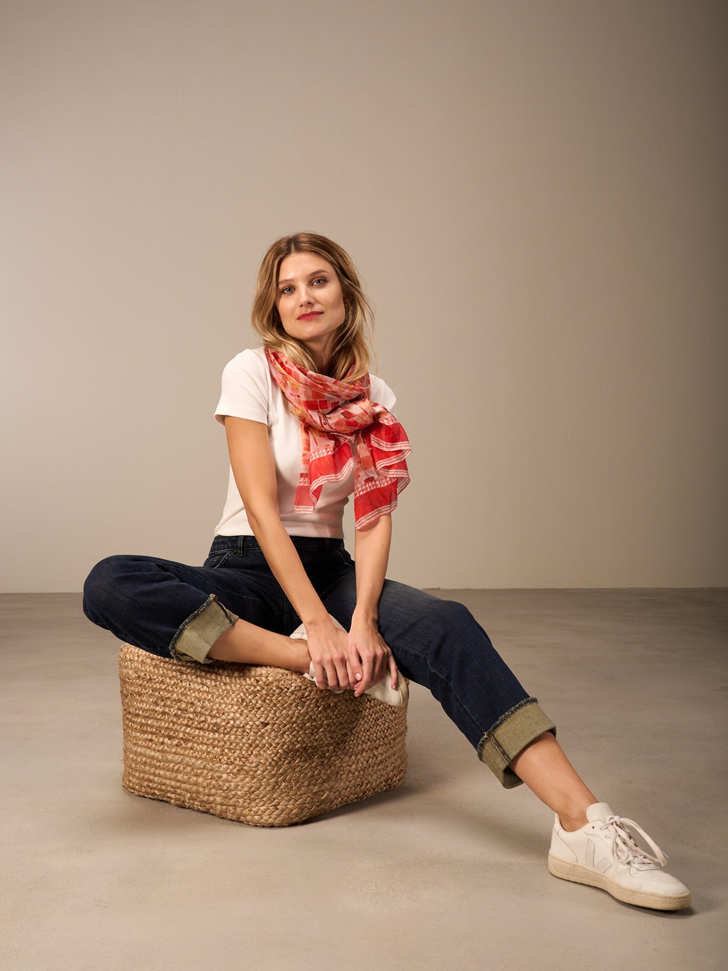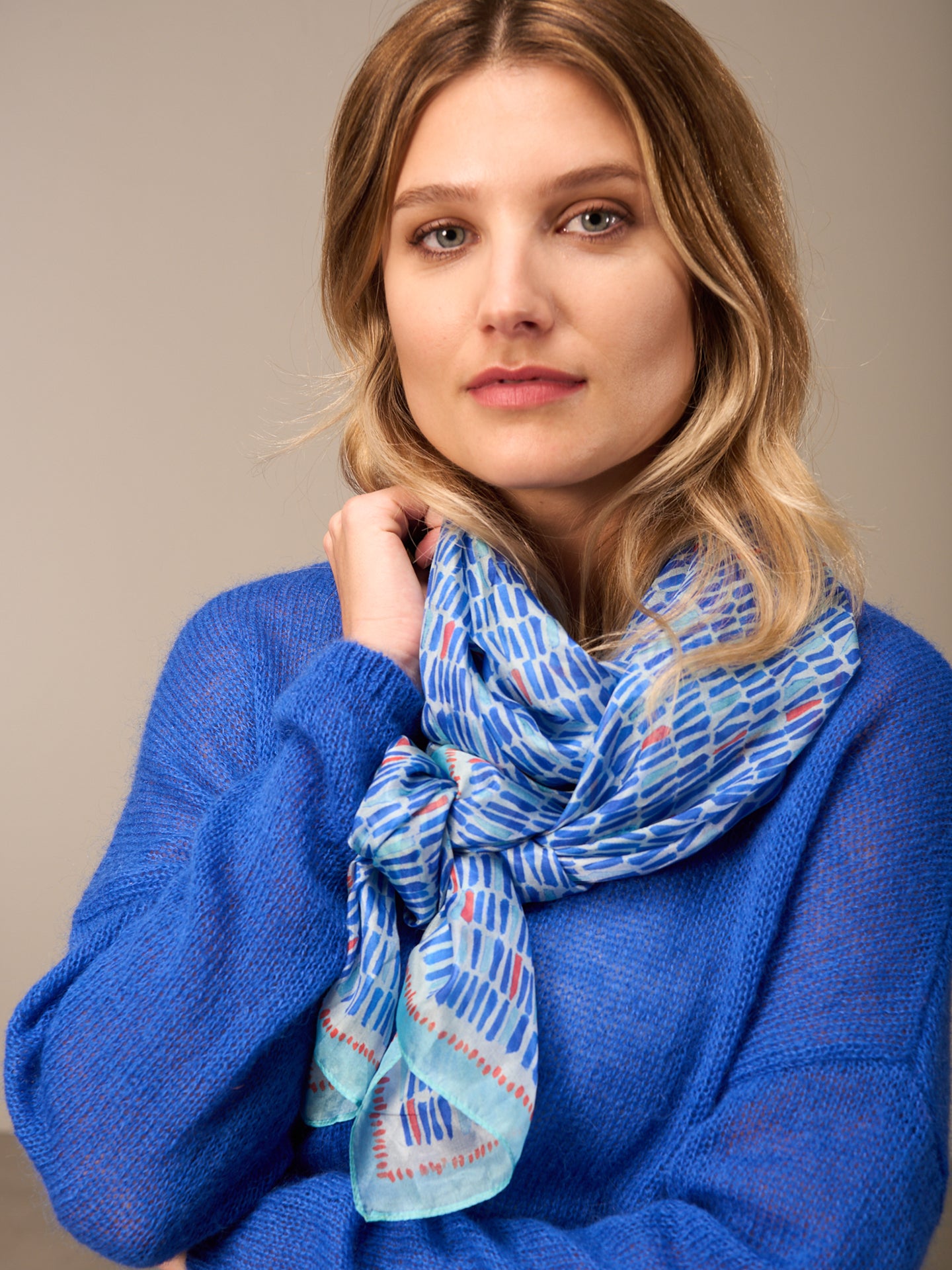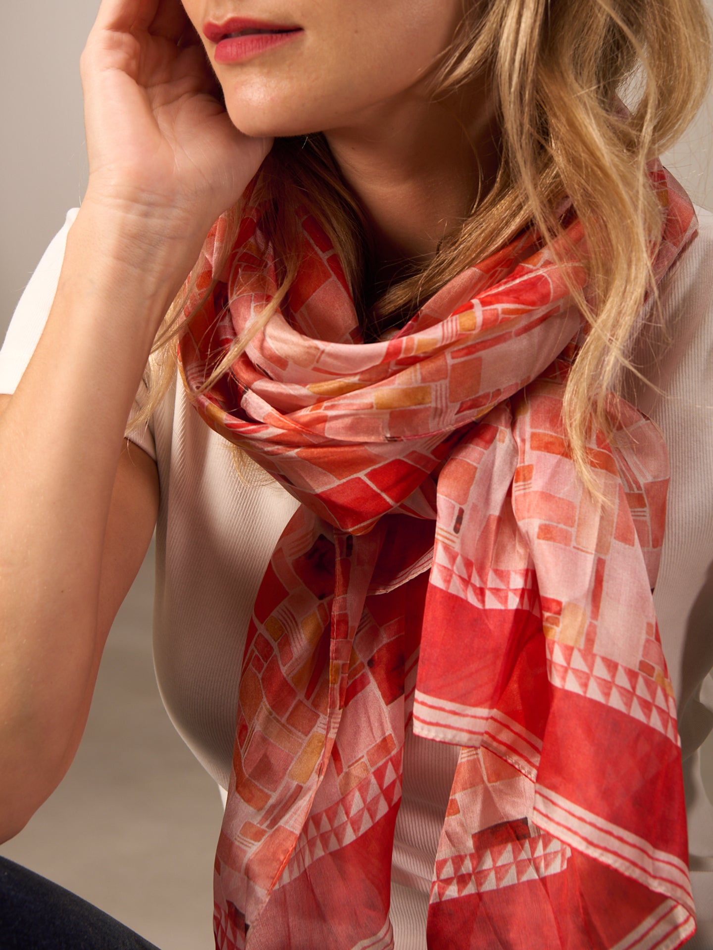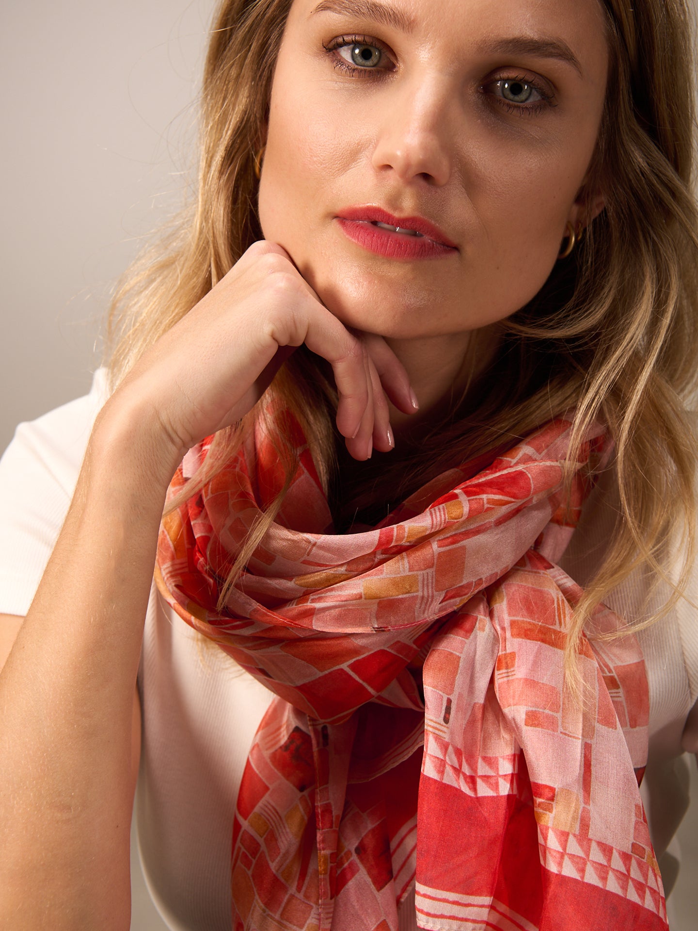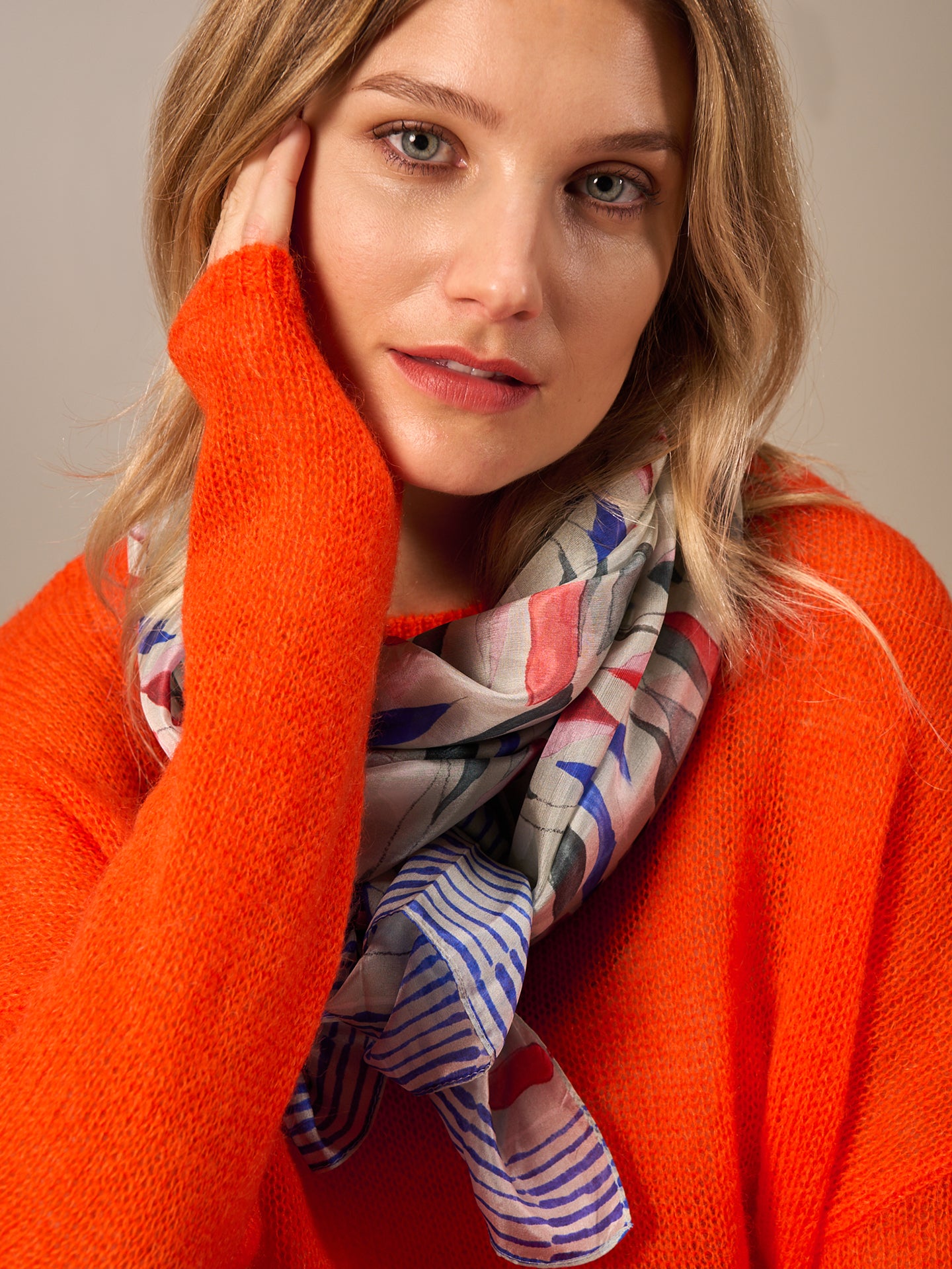 Schal mit Alloverprint in der Grösse 65x180cm. 100% Seide.