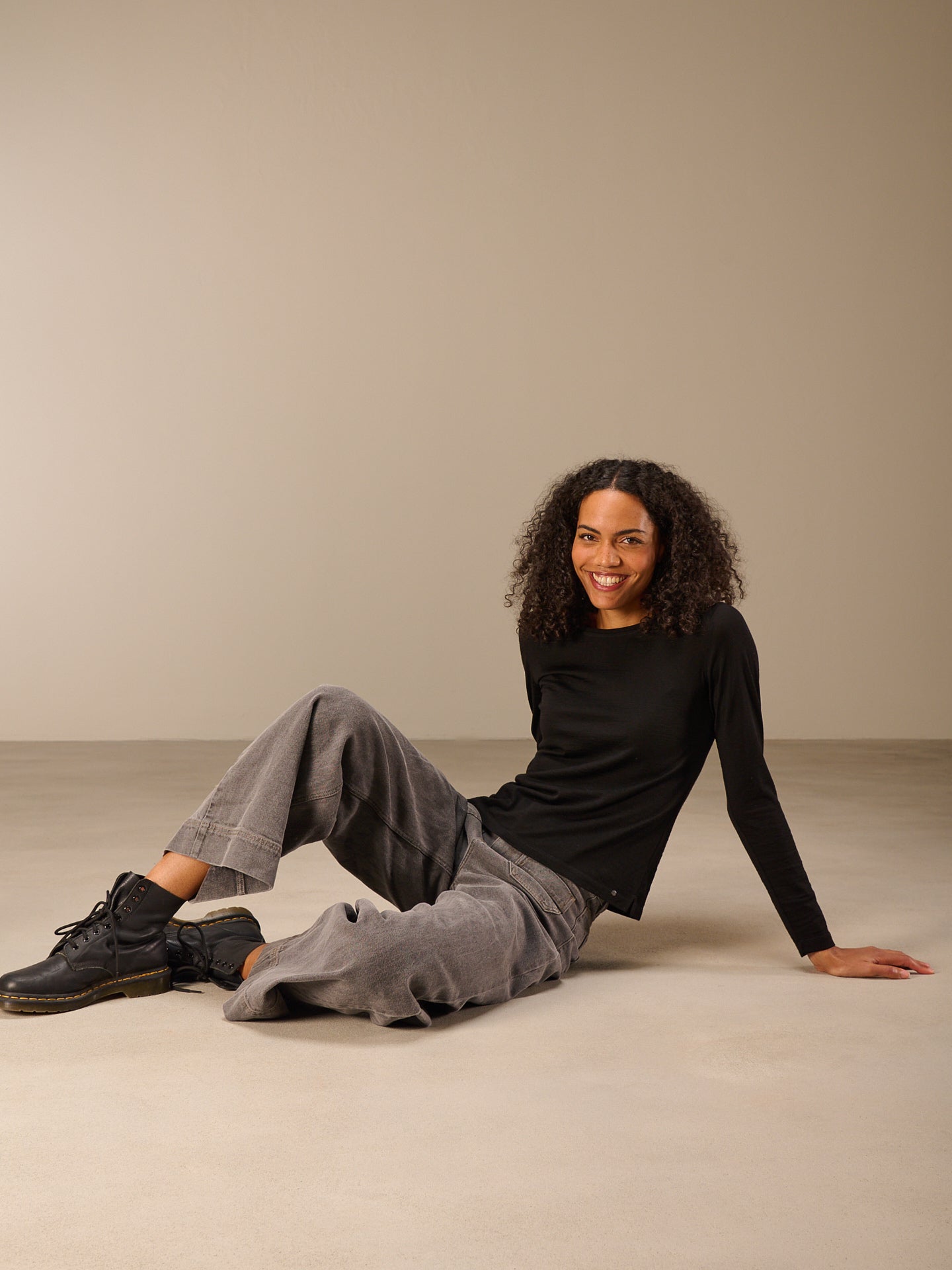 Locker geschnittenes Langarmshirt mit Rundhalsausschnitt aus 100% wärmender Merinowolle. Merino bietet eine natürliche Wärmeisolierung, ist atmungsaktiv und wirkt geruchsneutralisierend. Unsere verantwortungsvoll bezogene Wolle stammt aus kontrollierter, mulesingfreier Tierhaltung.