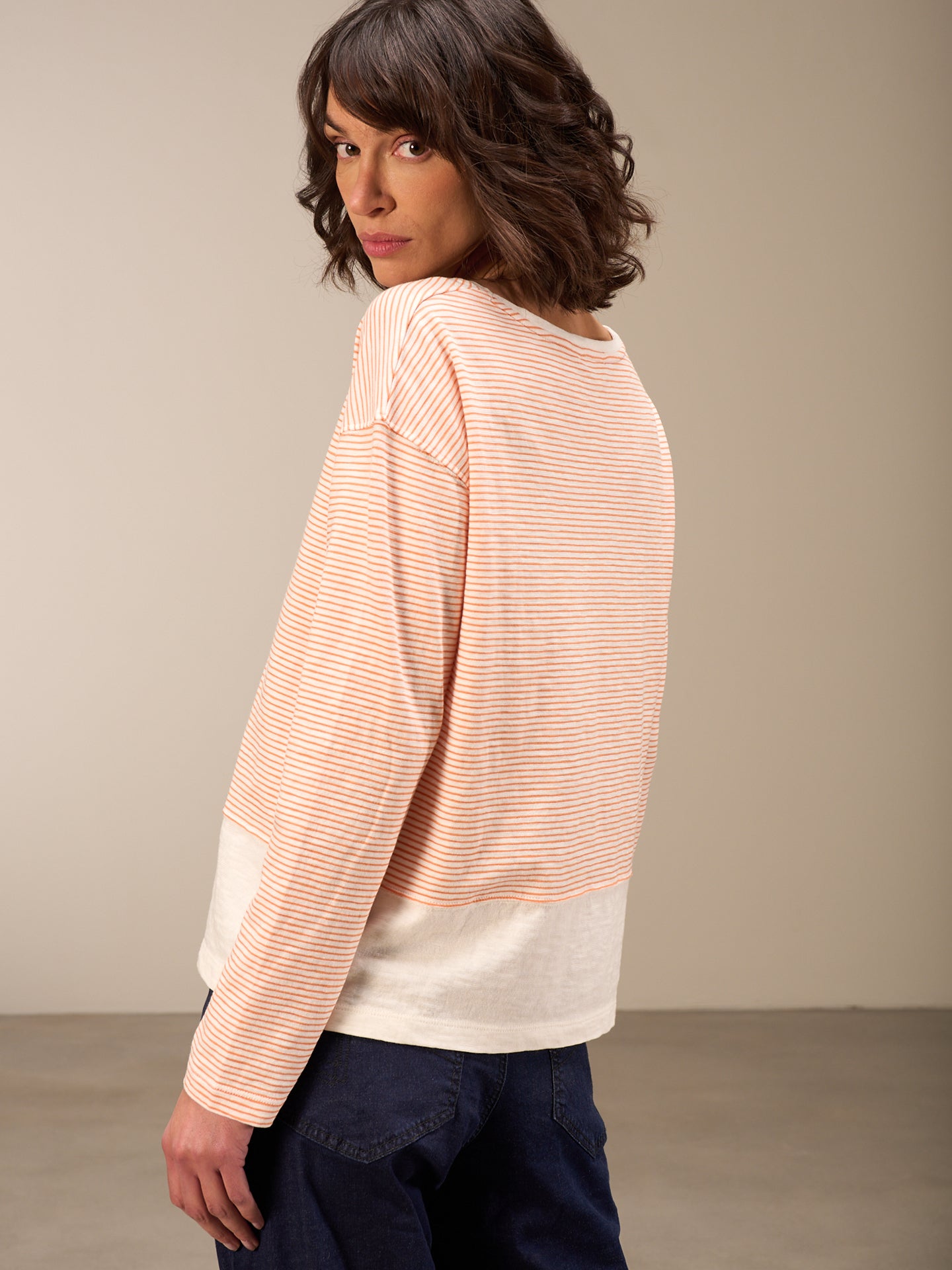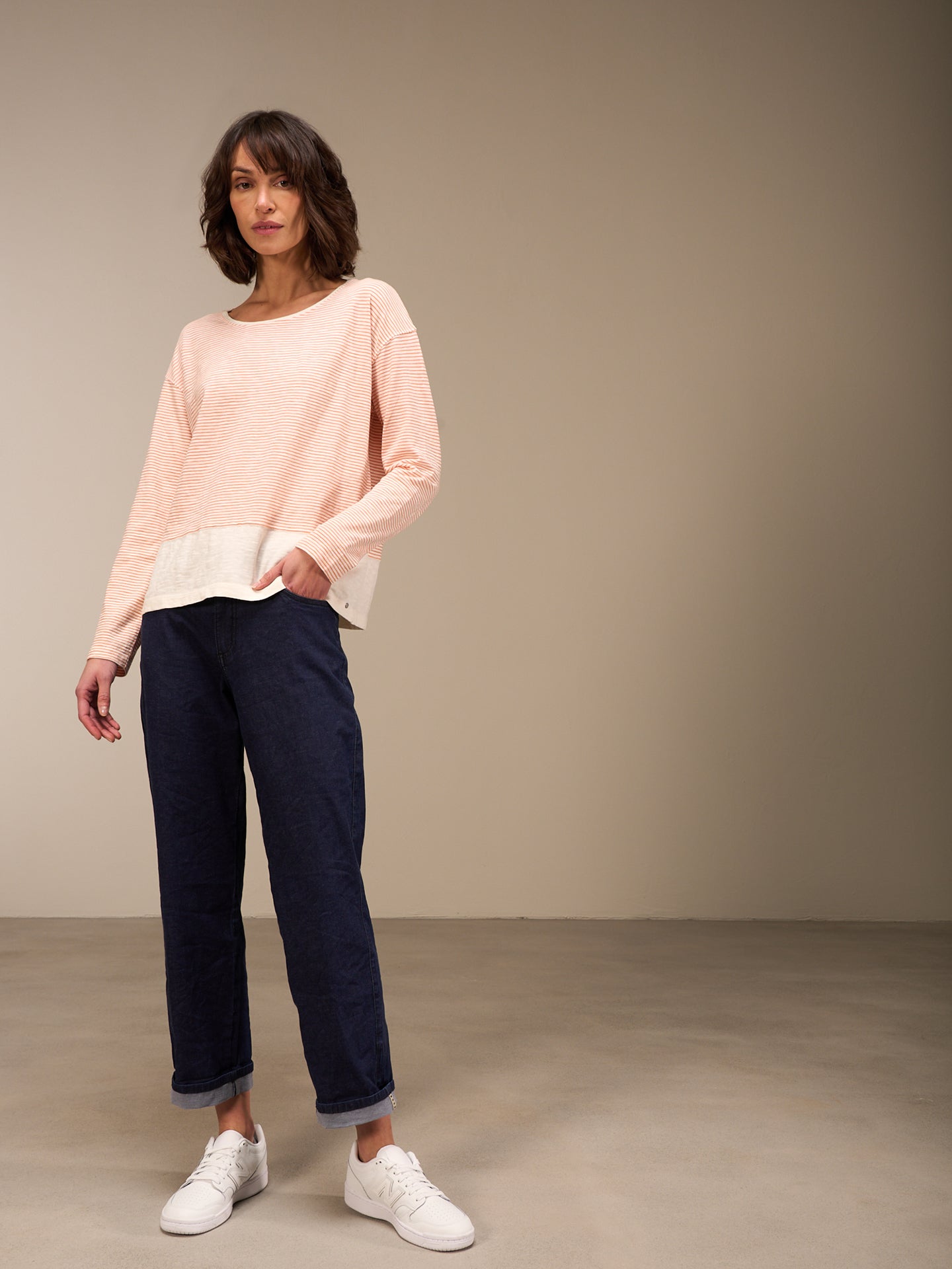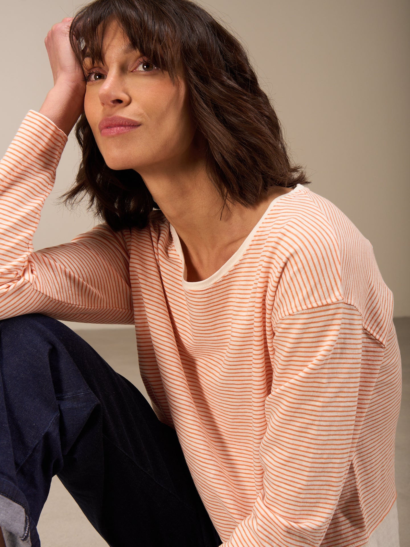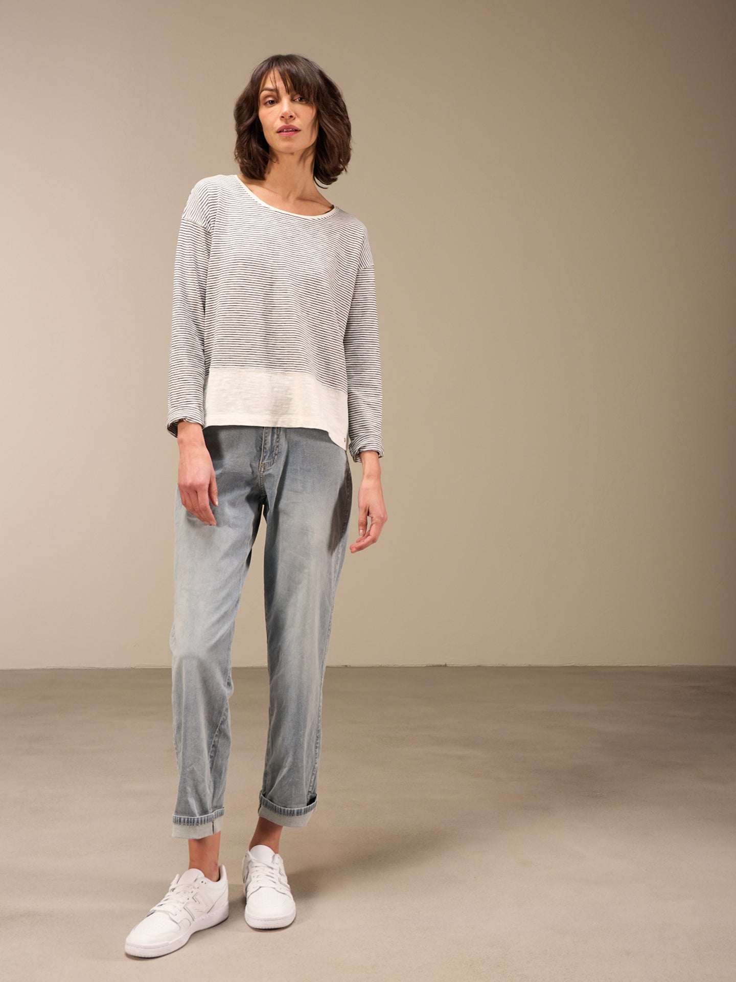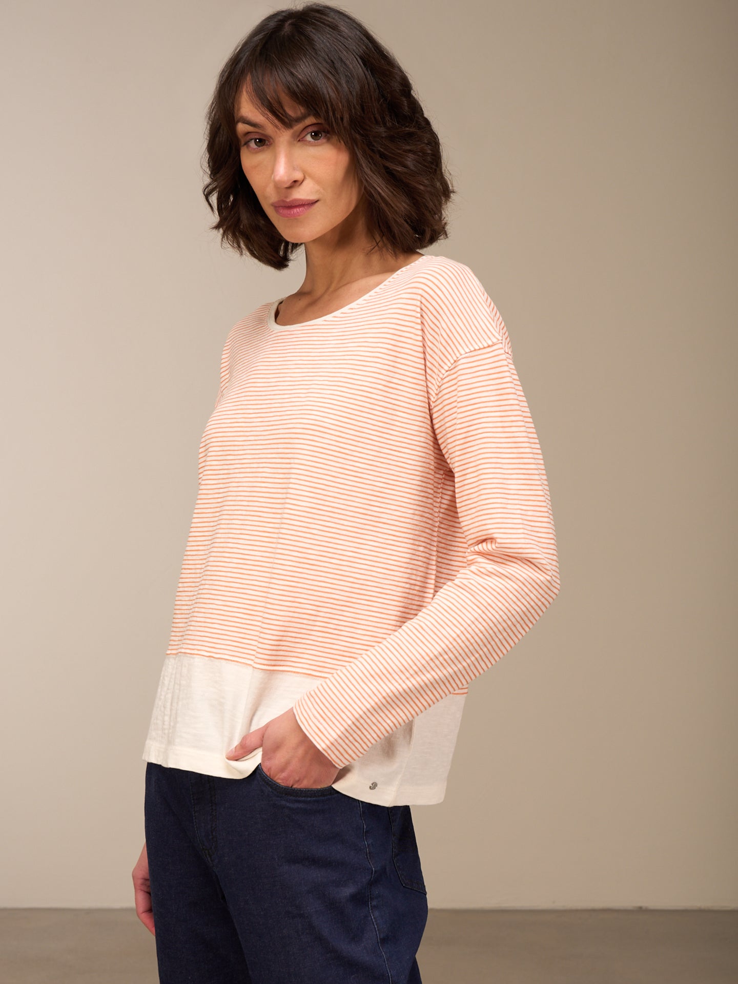 Lässiges Langarmshirt mit Rundhals mit gestrickten Streifen. 100% GOTS-zertifizierte Bio-Baumwollqualität.