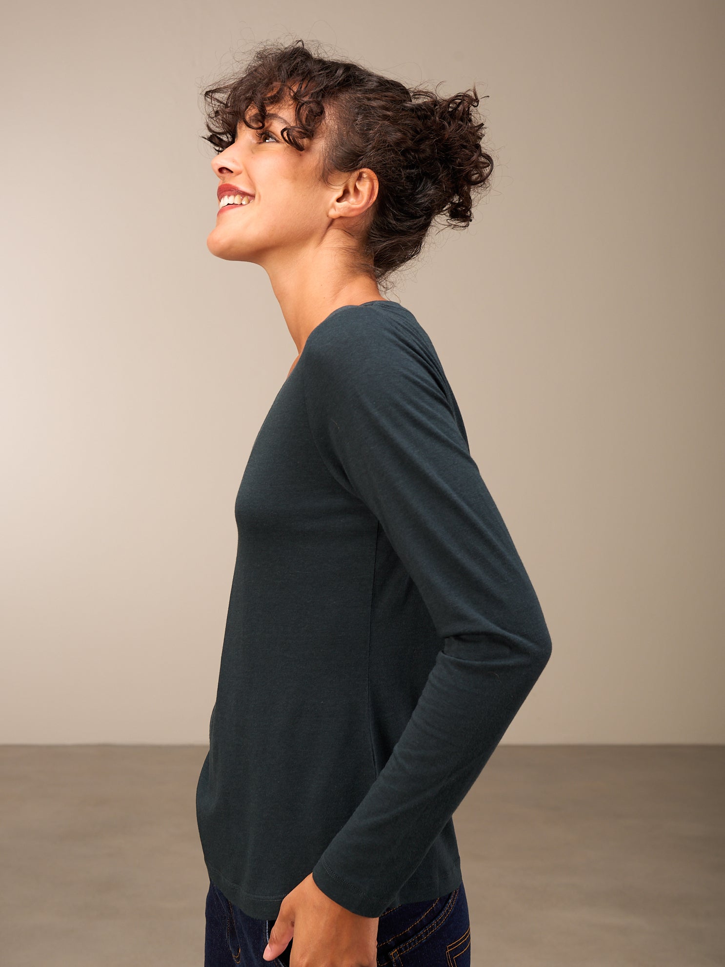 Lässig geschnittenes Langarm Shirt mit V-Ausschnitt und langen schmalen Ärmeln.