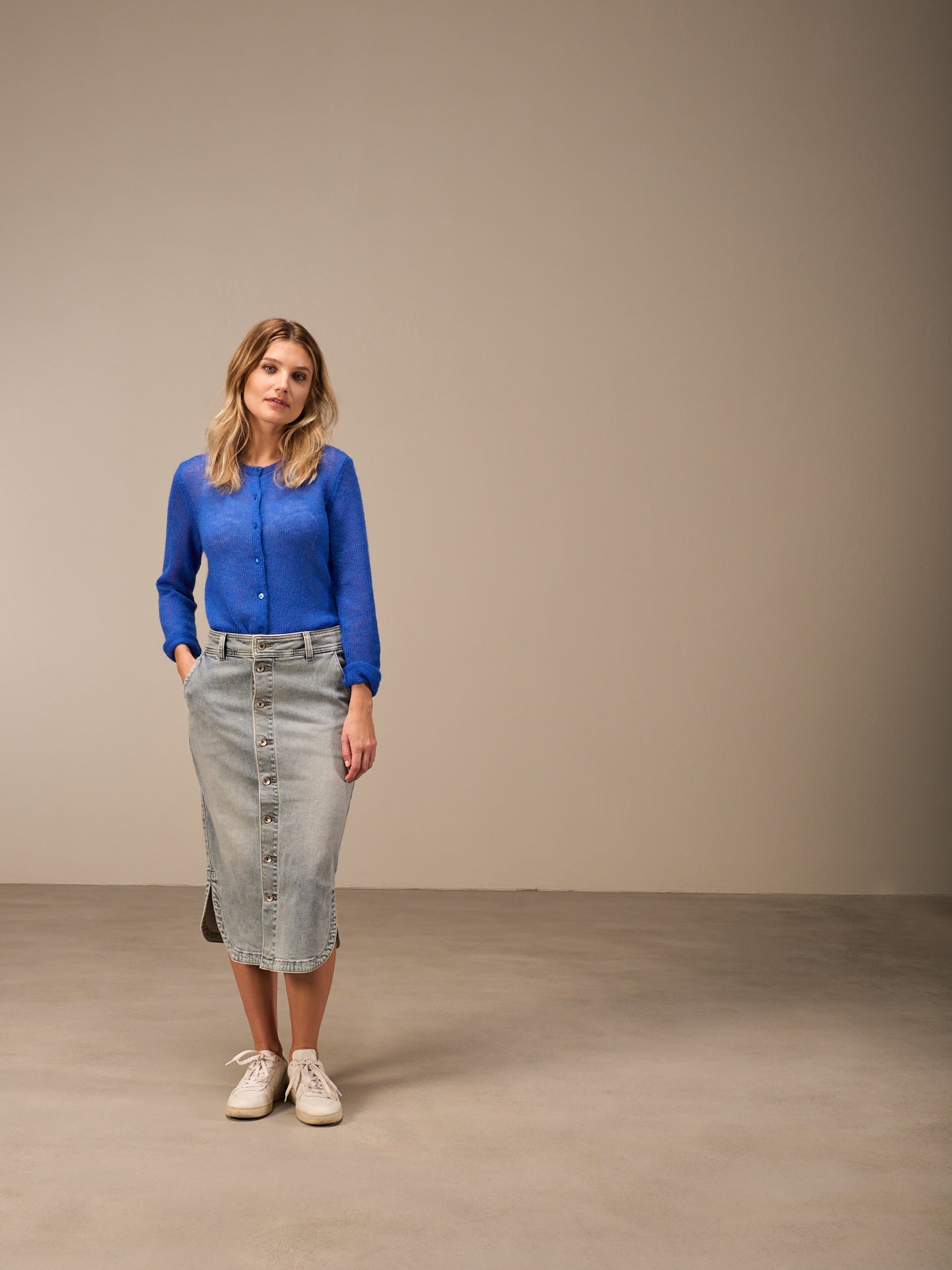 Locker, gerade geschnittene Strickjacke mit Perlmuttknöpfen Ton in Ton. Die kuschelige Optik macht die Jacke zu einen neuen Lieblinsbegleiter.