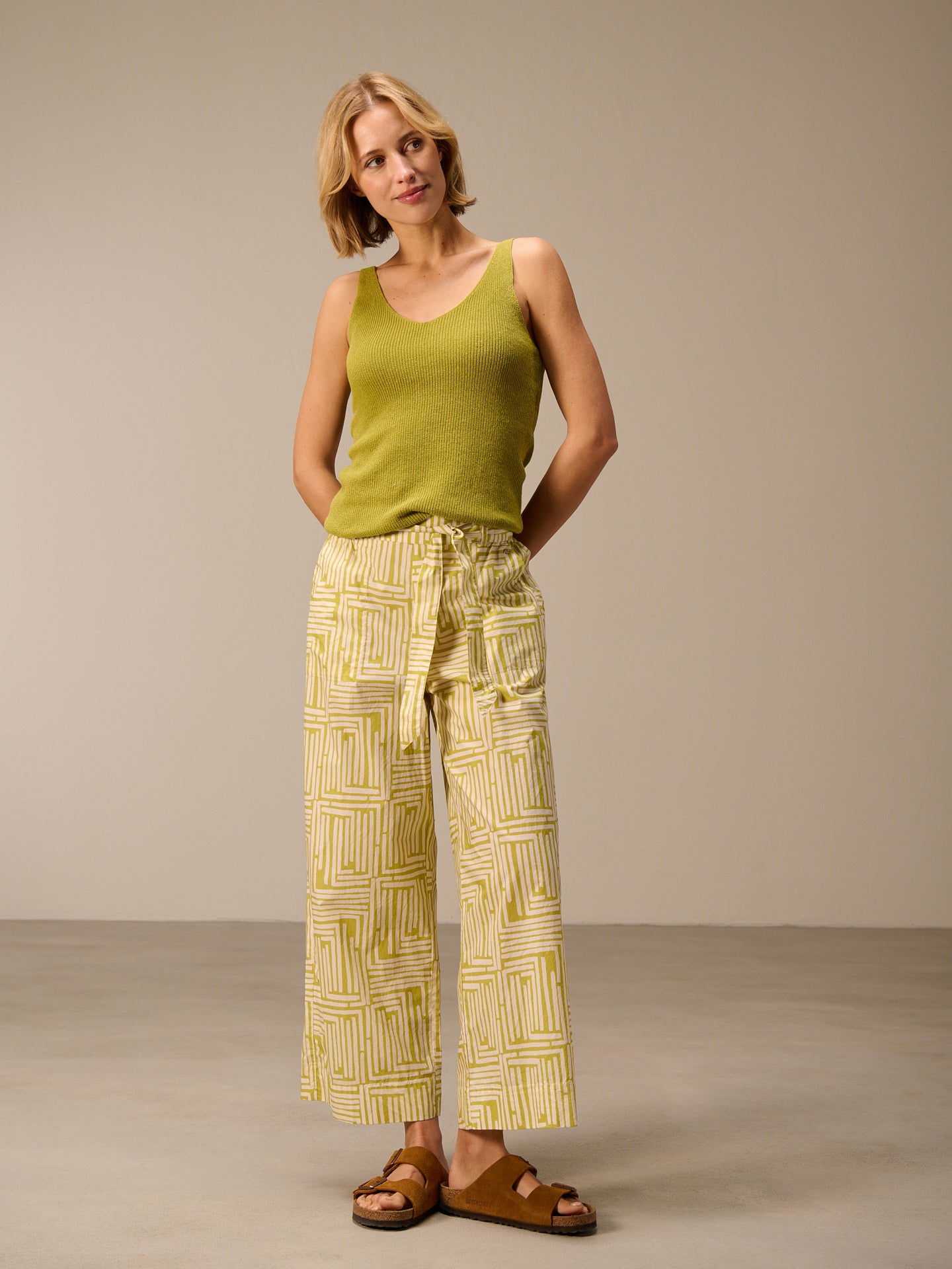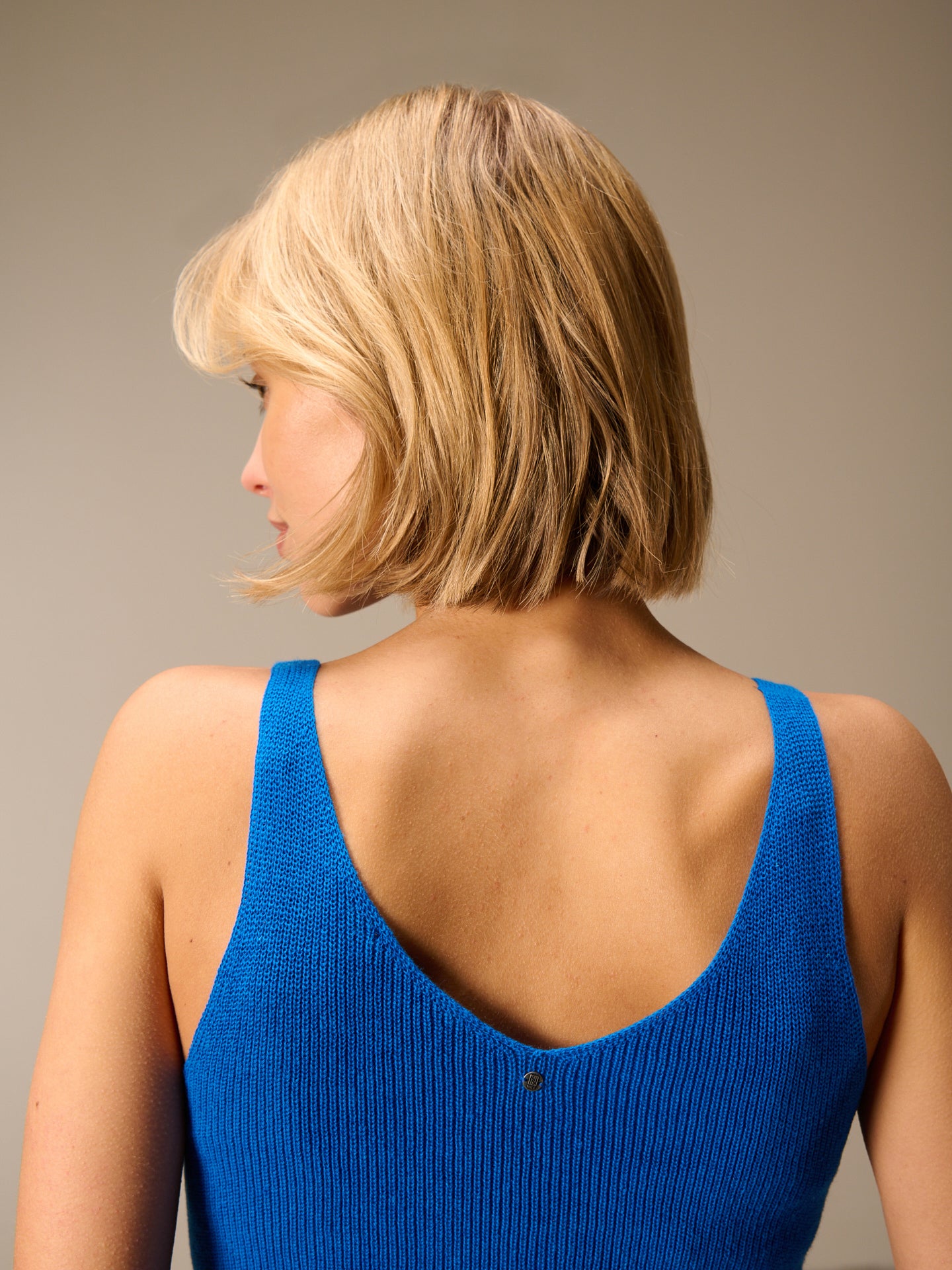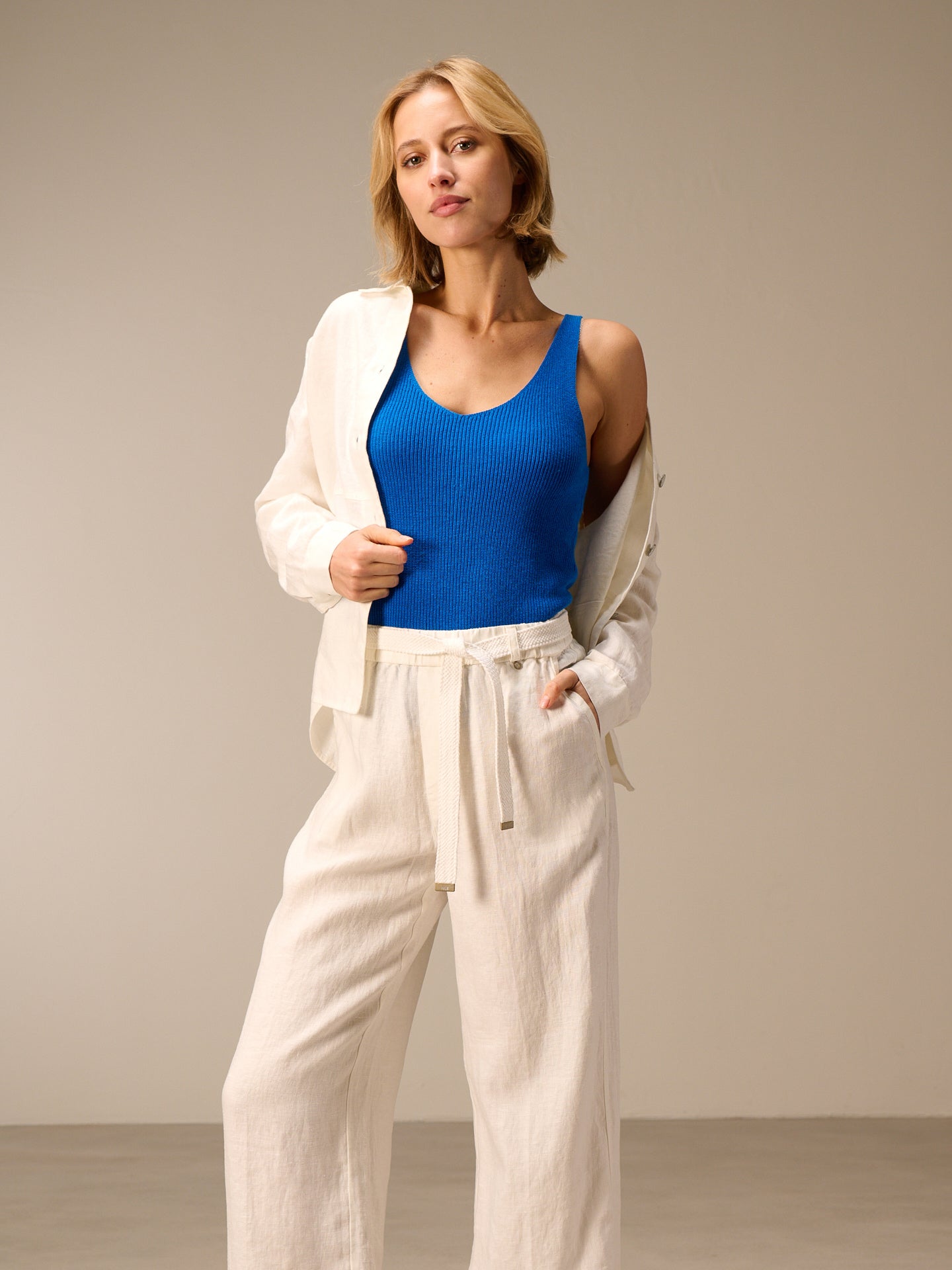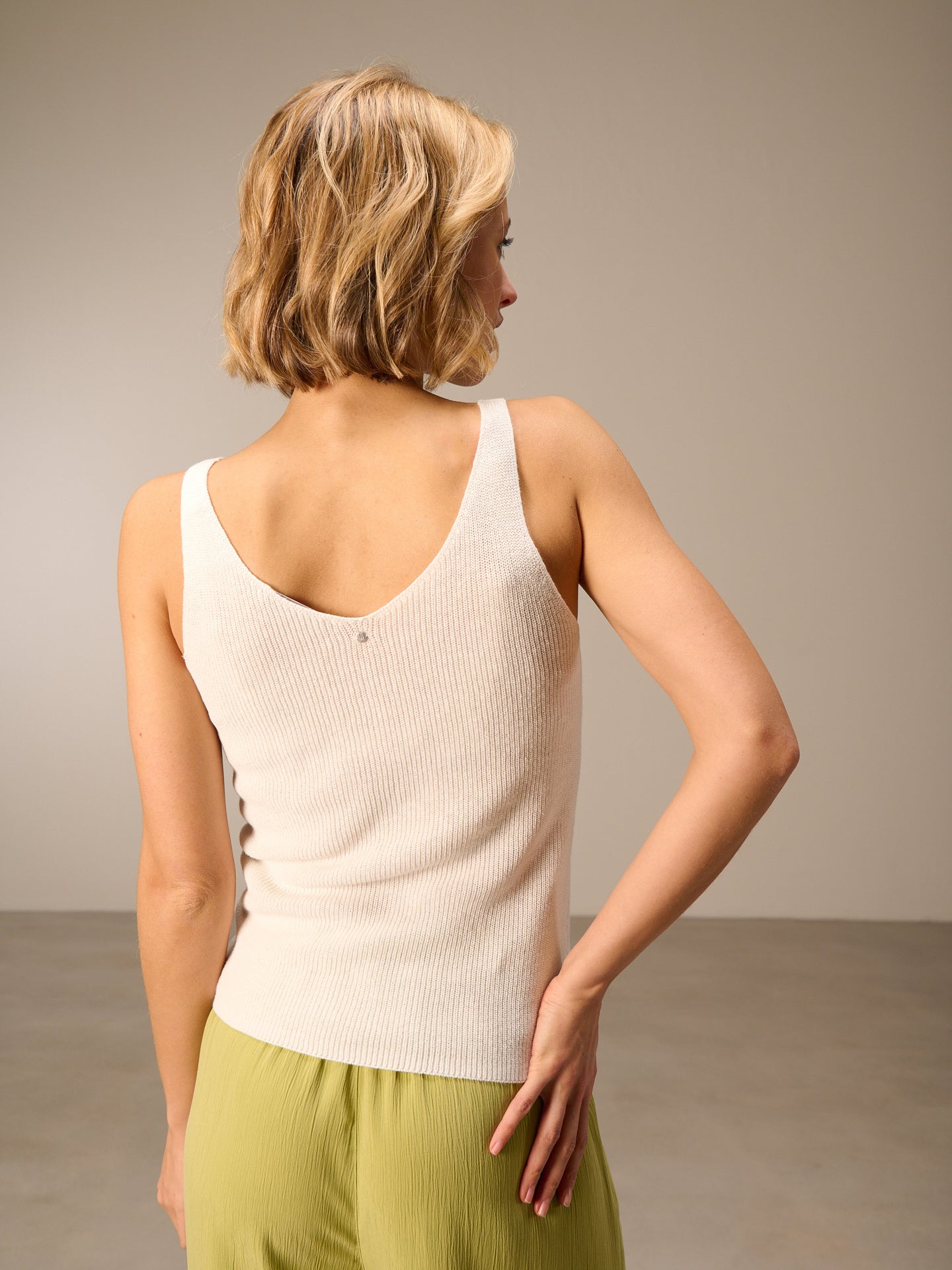 Körperbetontes Top im Patentmuster mit V-Ausschnitt vorne und hinten und schmalen Trägern. Für einen hohen Tragekomfort sorgt die hochwertige Leinen- und Baumwollemischung.
