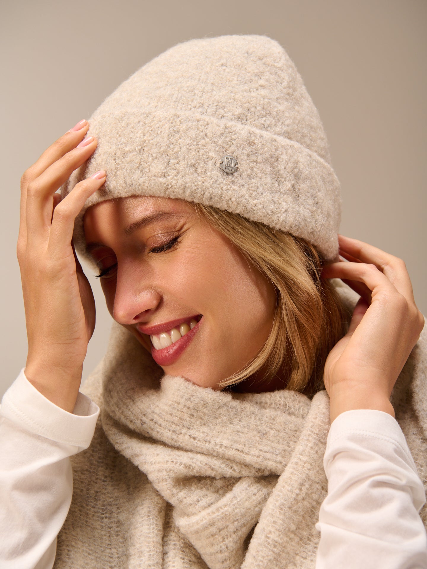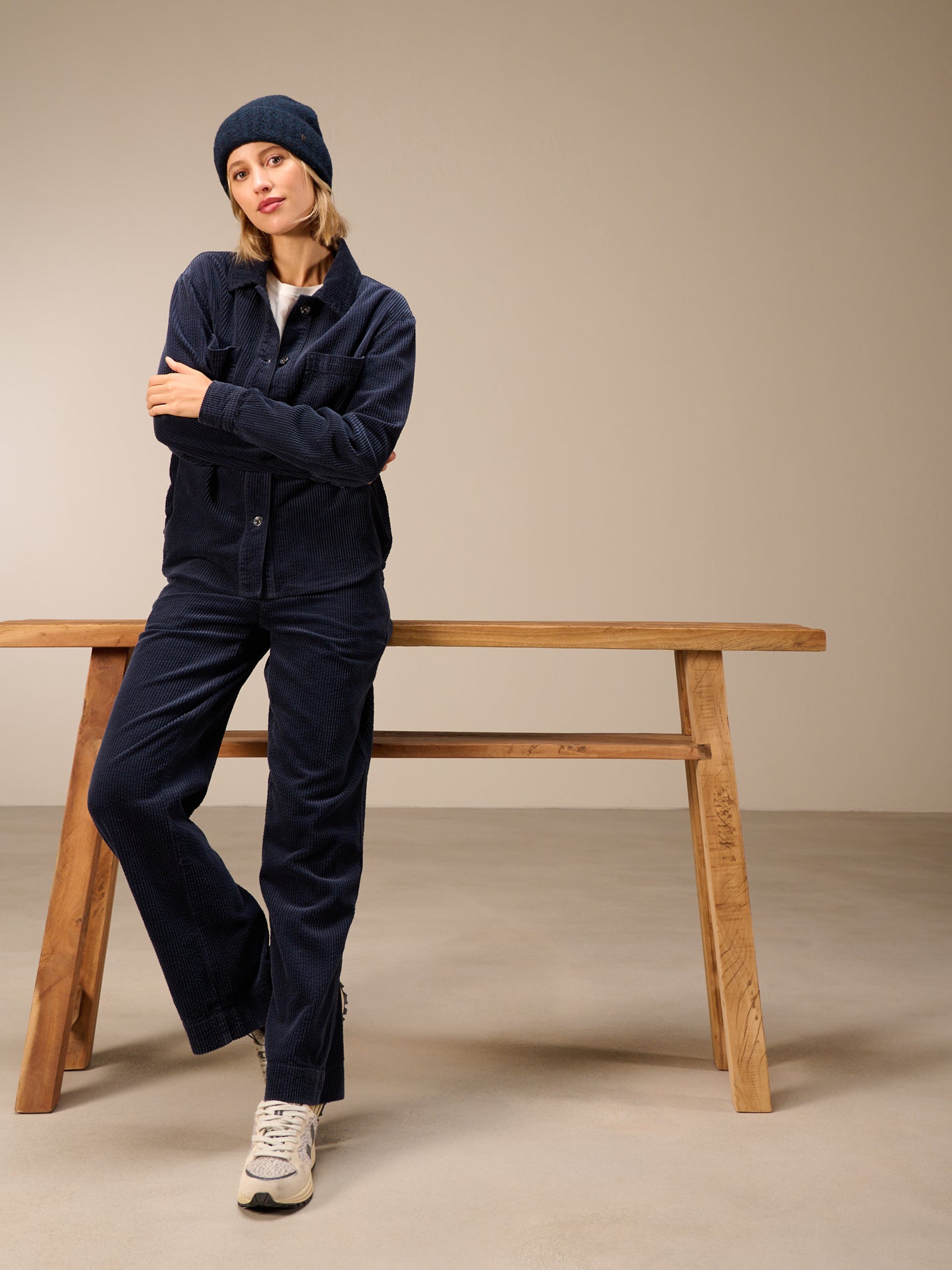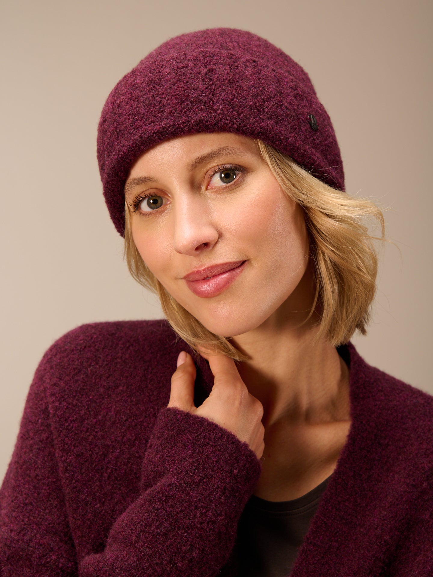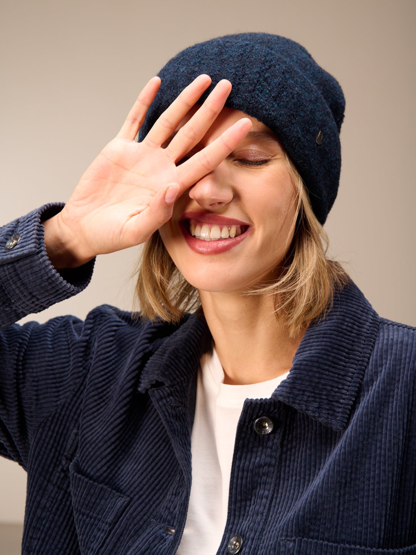 Strickmütze mit breitem Umschlag in Rippen Optik.